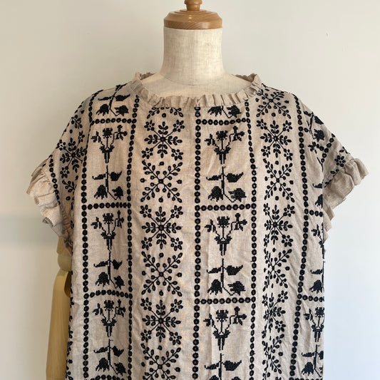 qiri//grow’ embroidery ギャザースリーブブラウス 6301BL005261