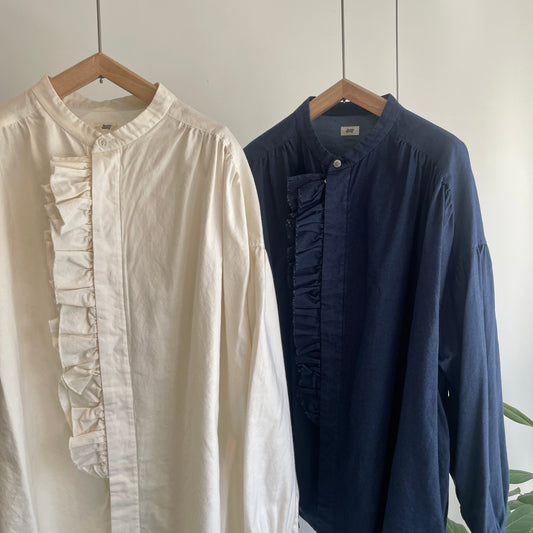 buoy buoy//綿サテンピグメント染 FRILL シャツ 2701BL010261