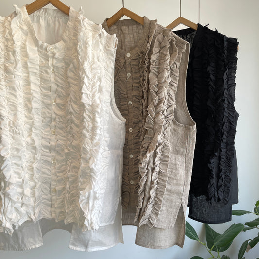universaltissu//フレンチリネンスリーブレスフリルBL UT261BL005
