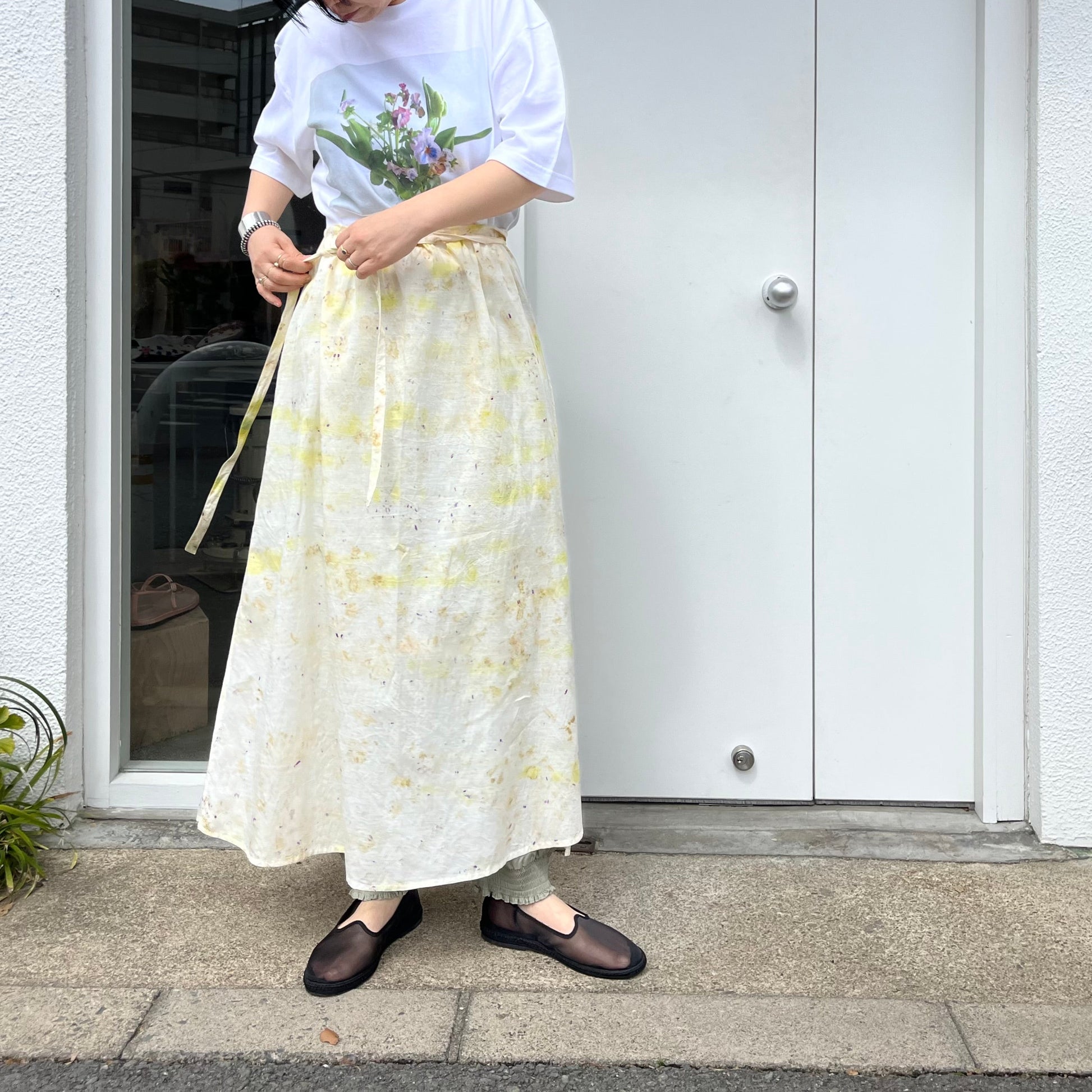 Oo //お花染めエプロンスカート