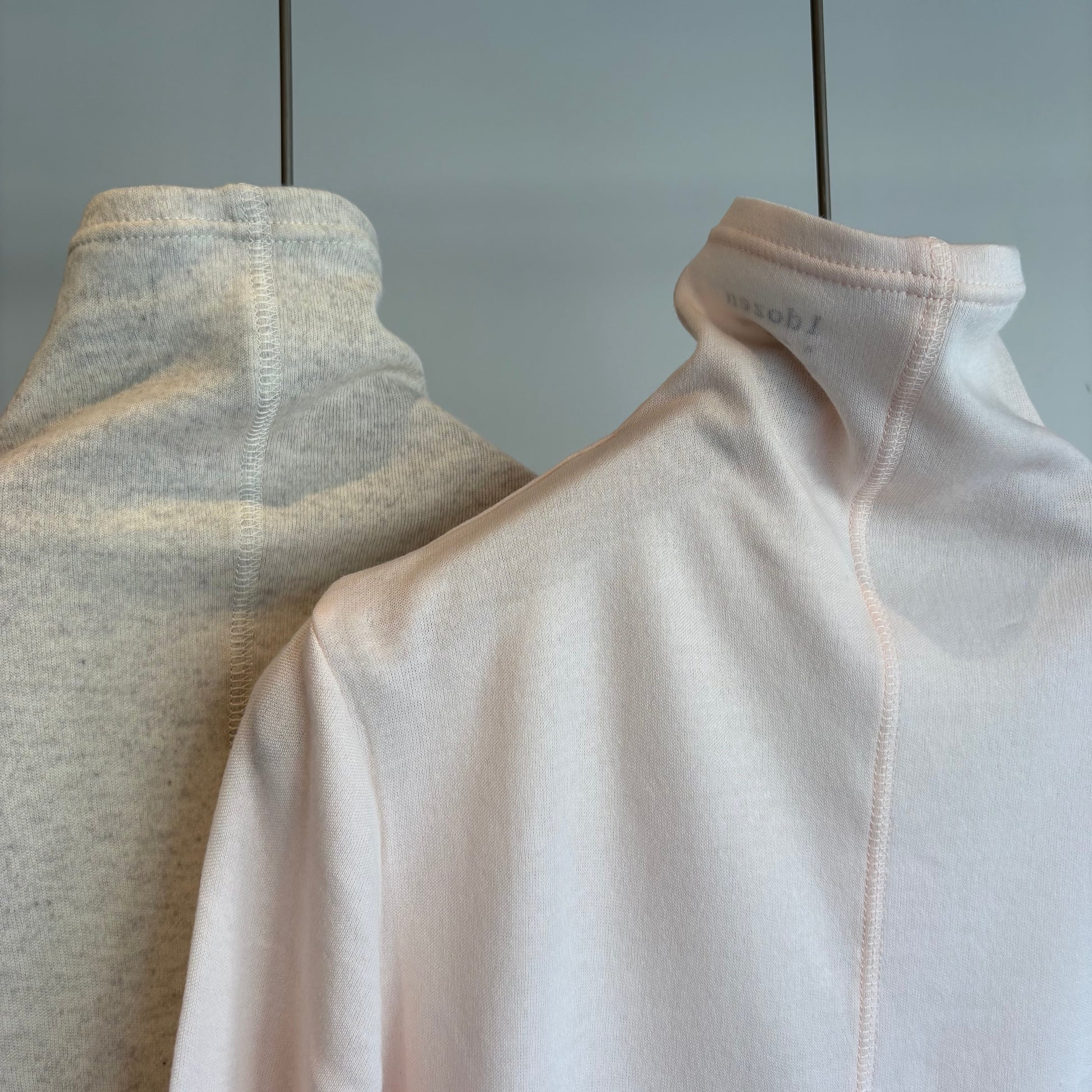 1dozenのロングセラーである'スポンディッシュコットン'を使用したハイネックプルオーバー。