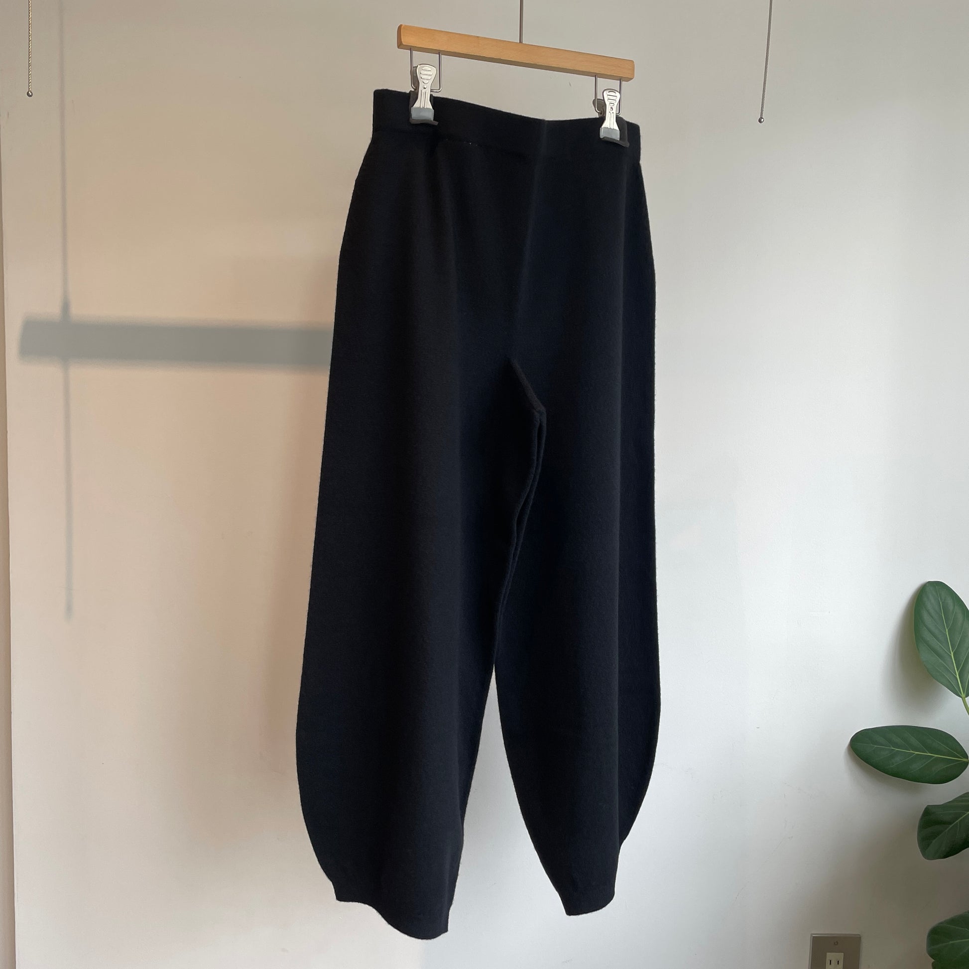 裾のテーパードで丸いシルエットが可愛いニットパンツです。