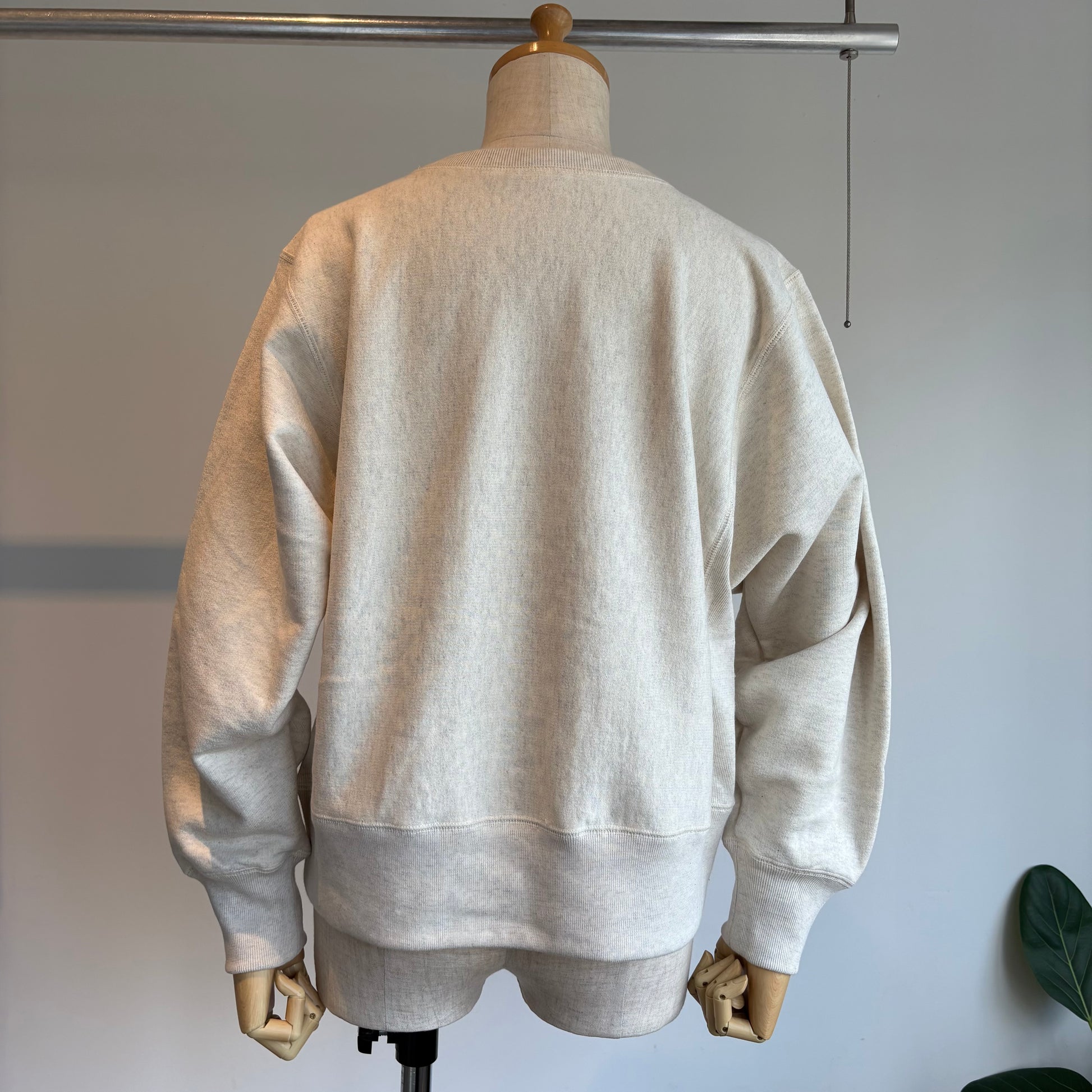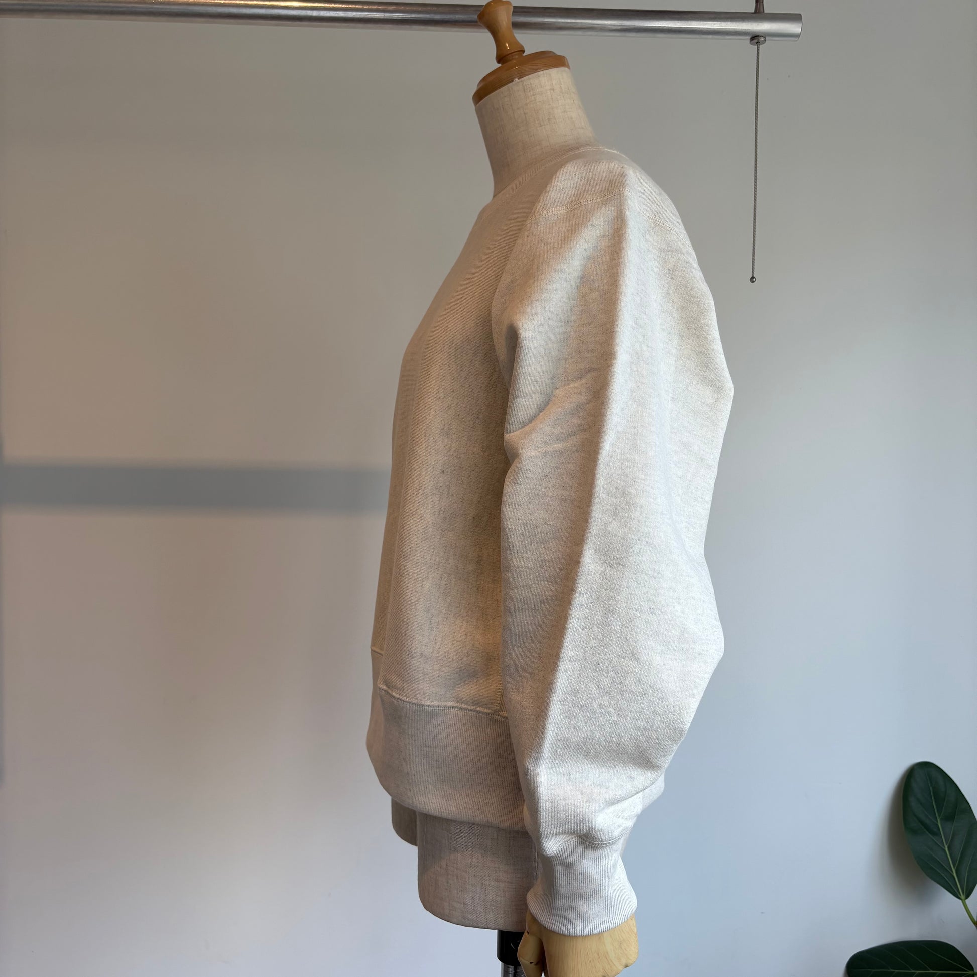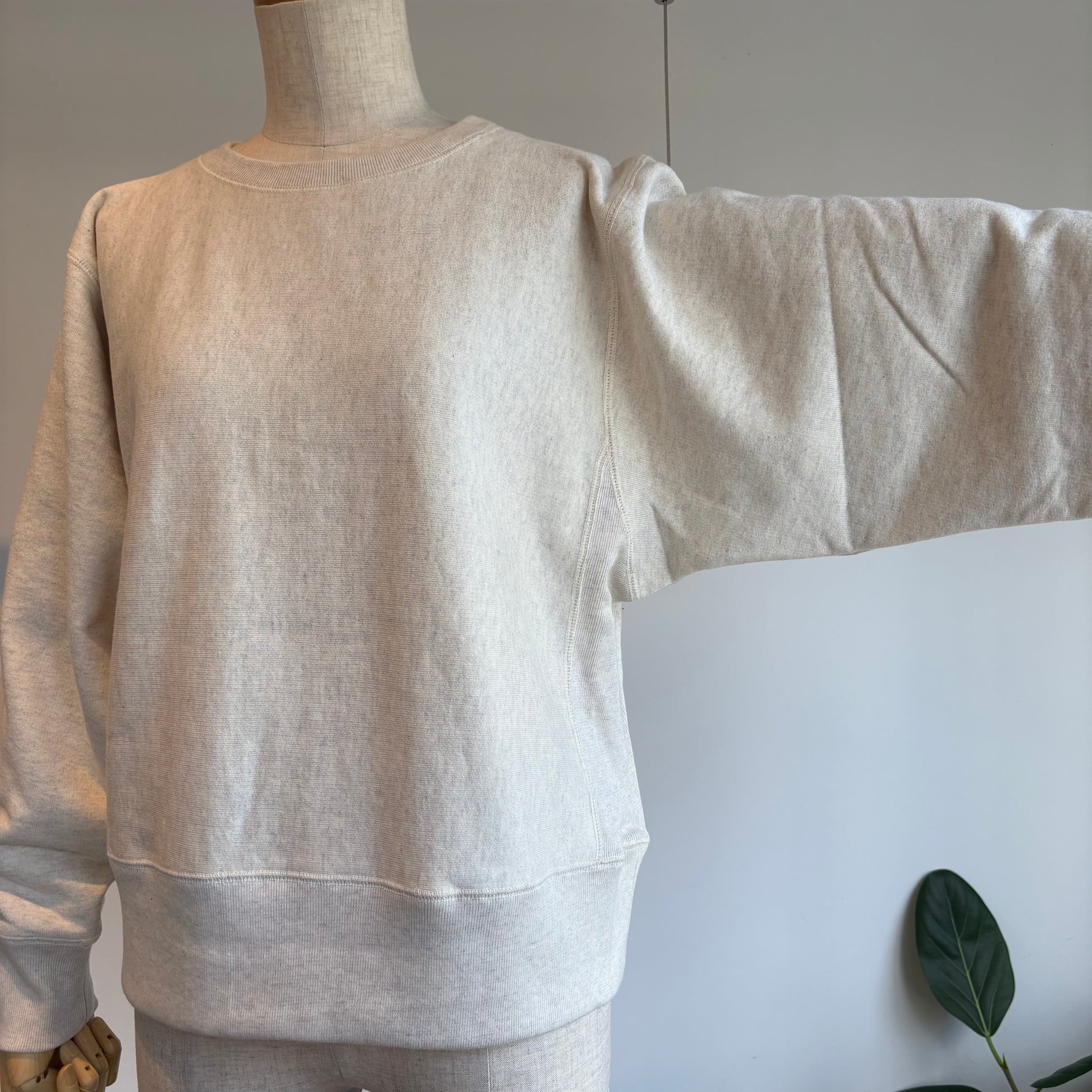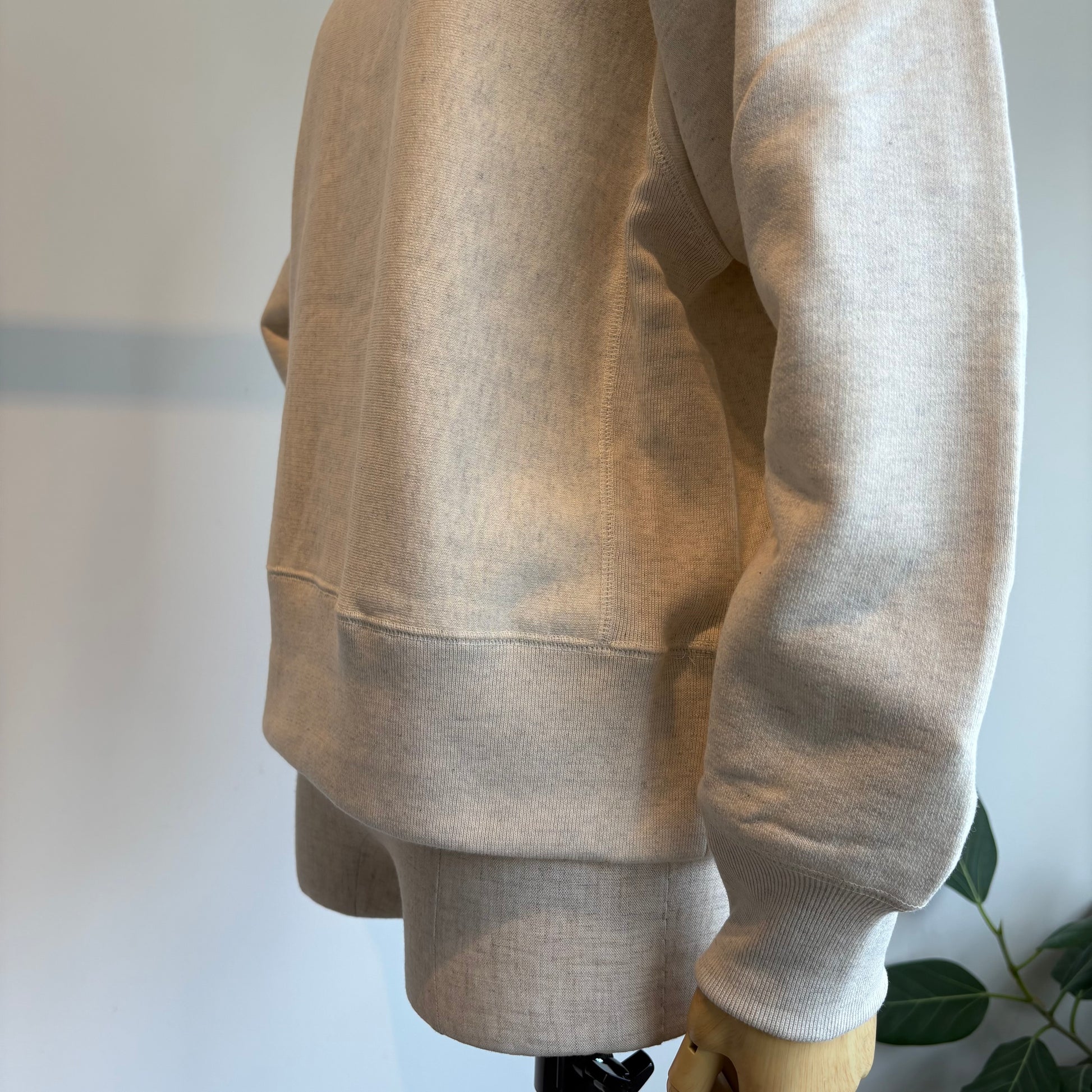 そんな吊り編スエットの素材は、19世紀初頭、スイスで開発された吊り編みという手法でじっくりゆっくり編み上げられた生地を使用されています。