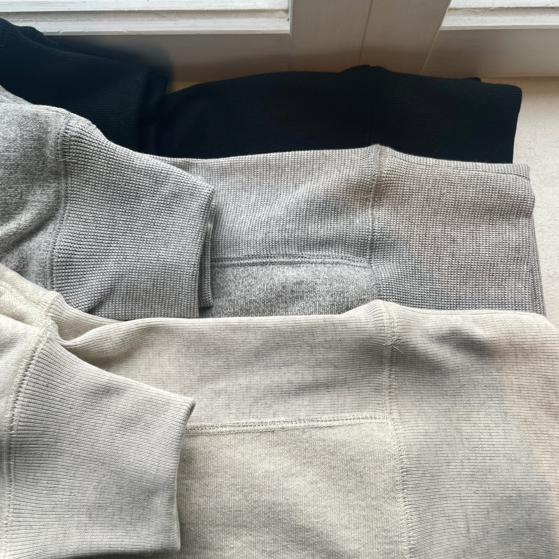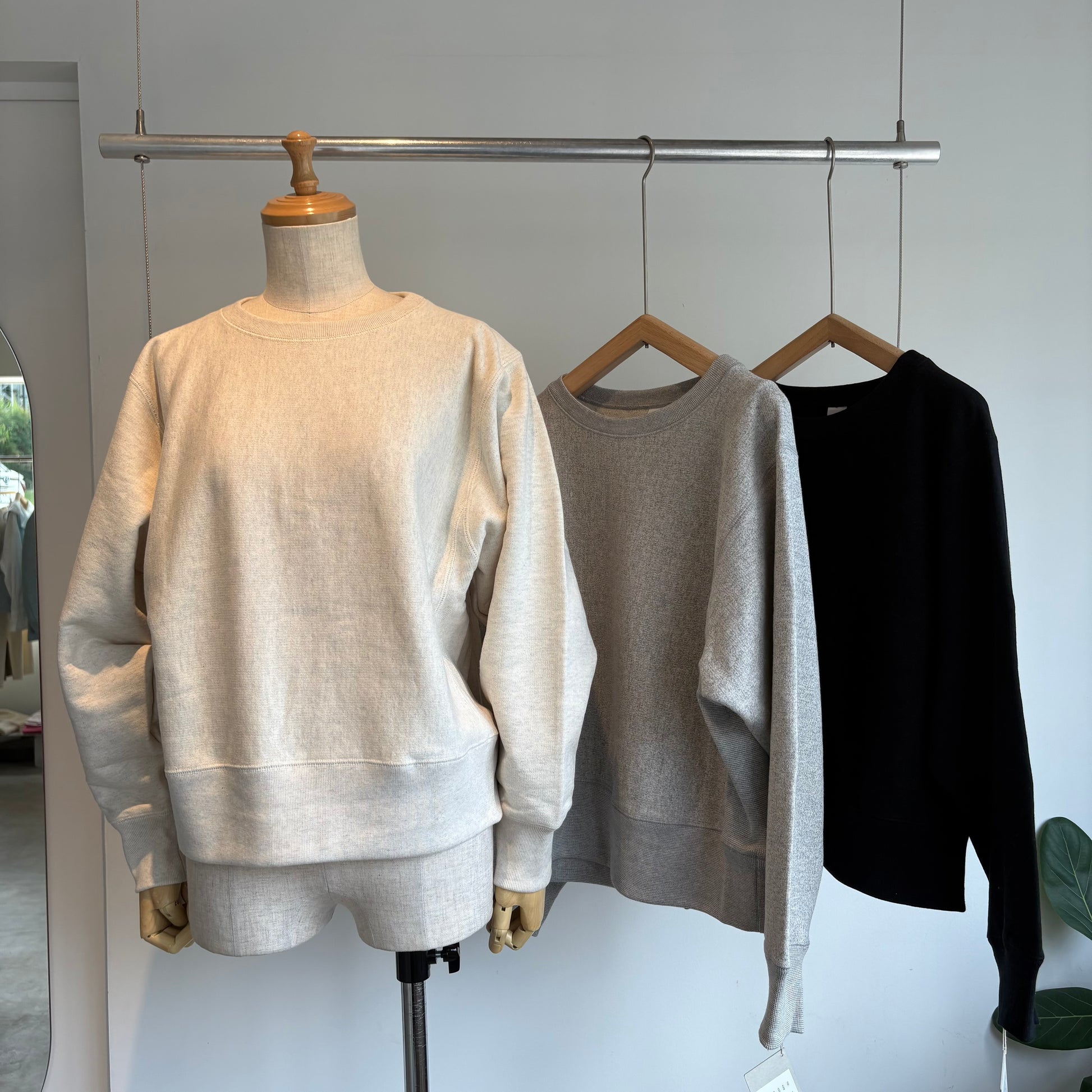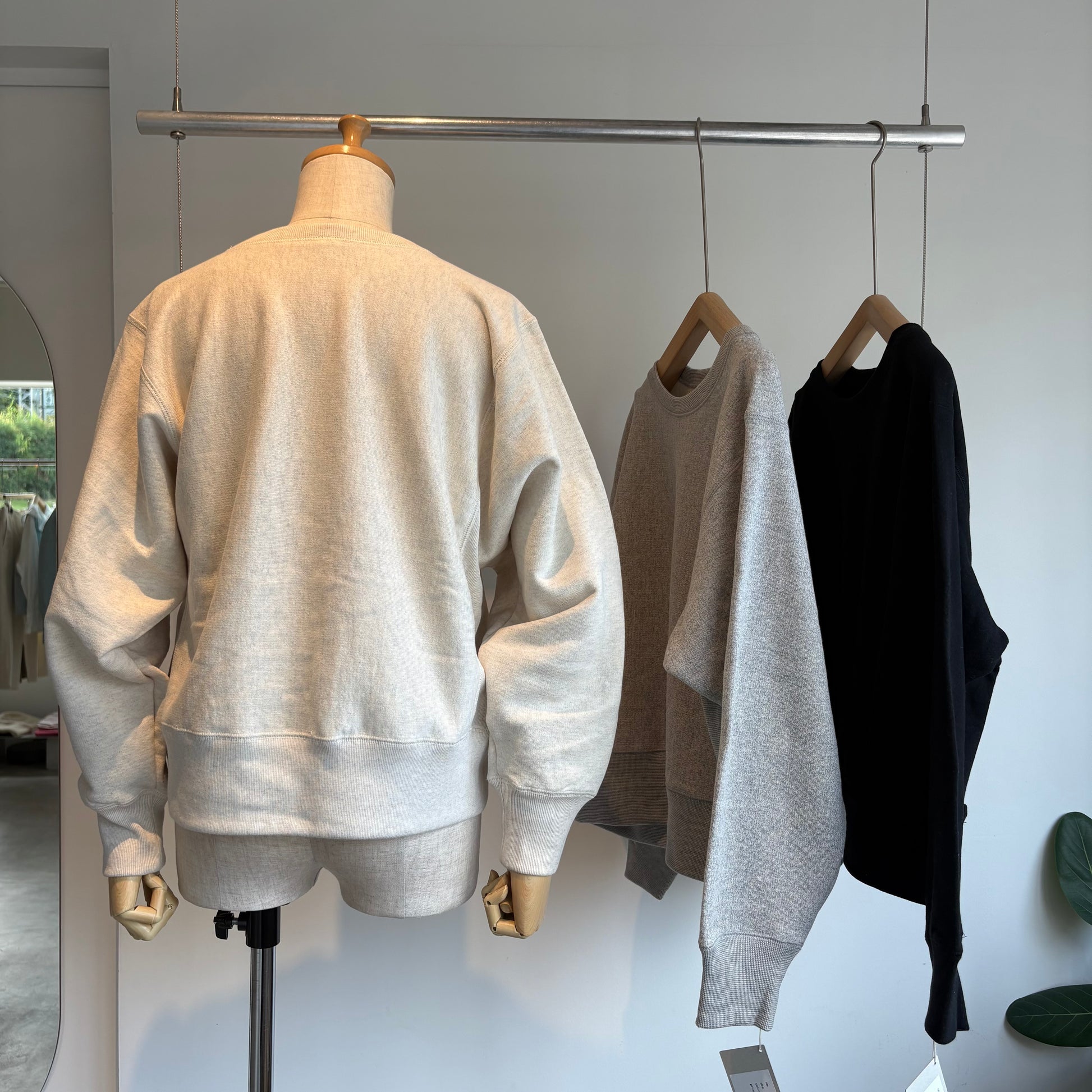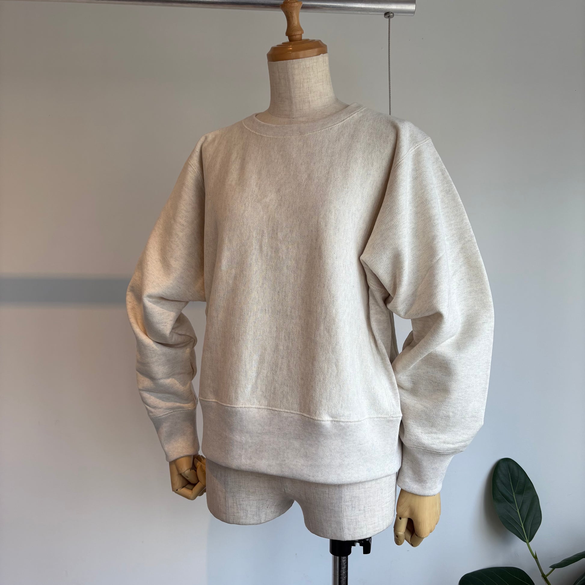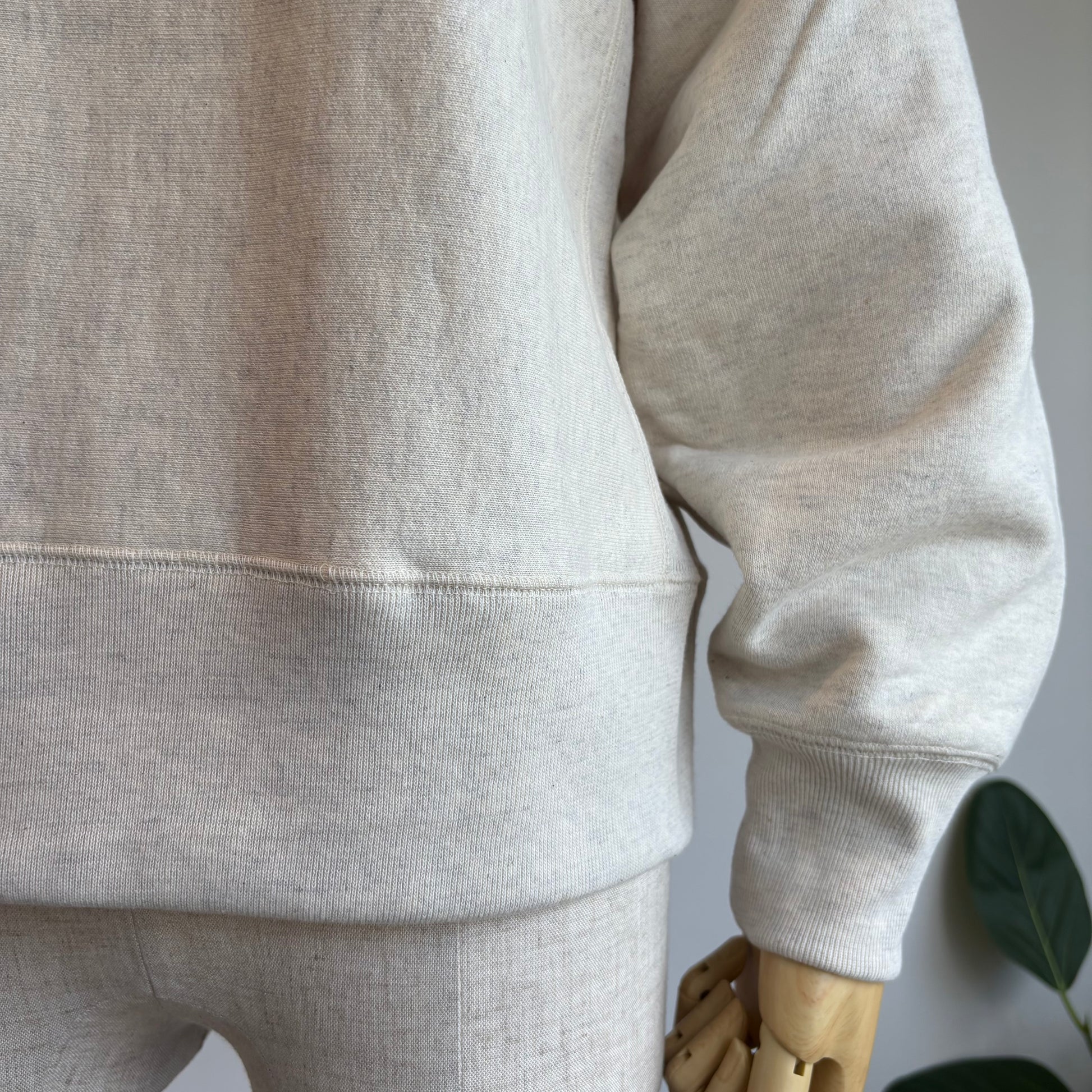 そんな吊り編スエットの素材は、19世紀初頭、スイスで開発された吊り編みという手法でじっくりゆっくり編み上げられた生地を使用されています。