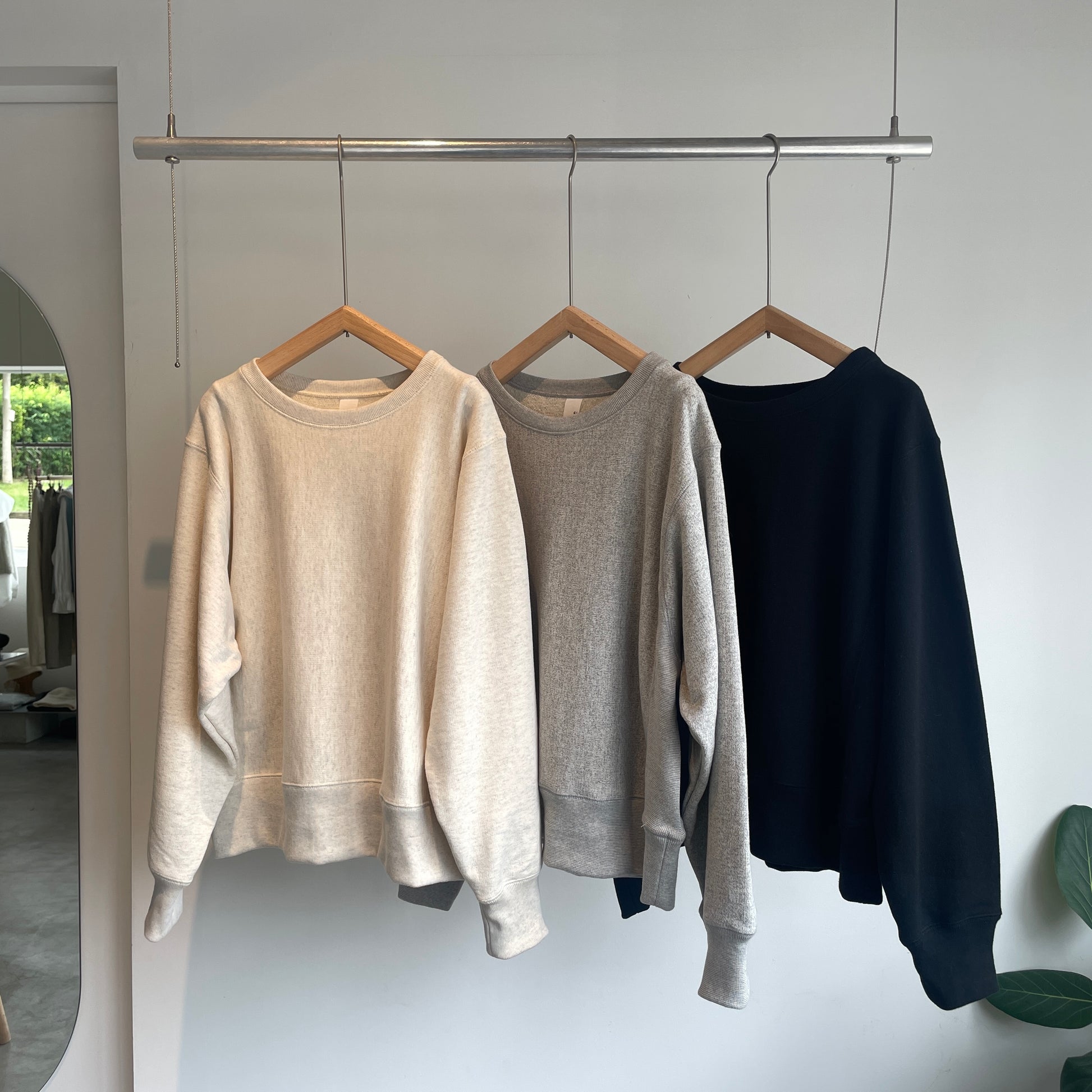 スウェットは、昔は編み地自体が貴重だった為無駄の少ないボックス型のシルエットで生産されることが多かったそうです。