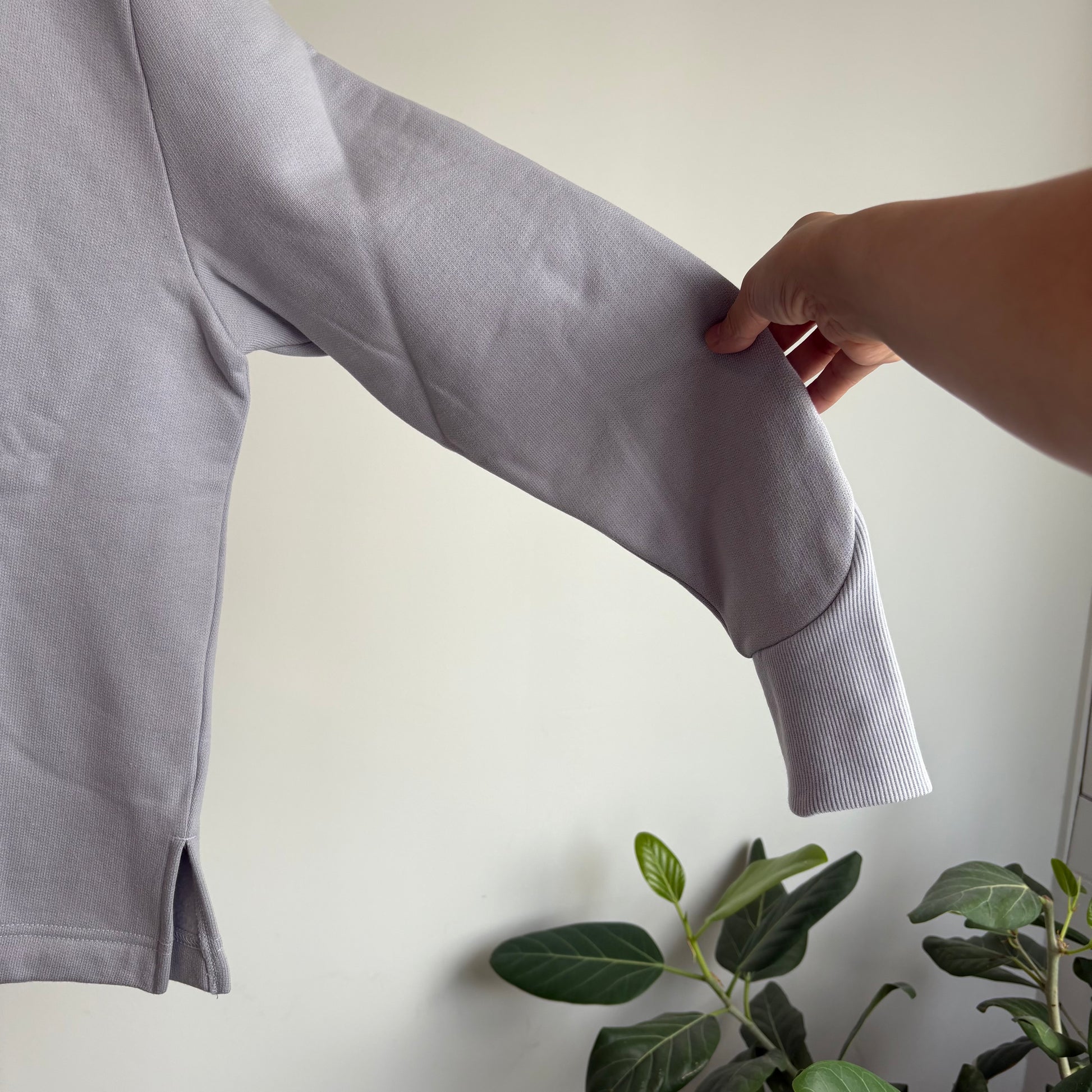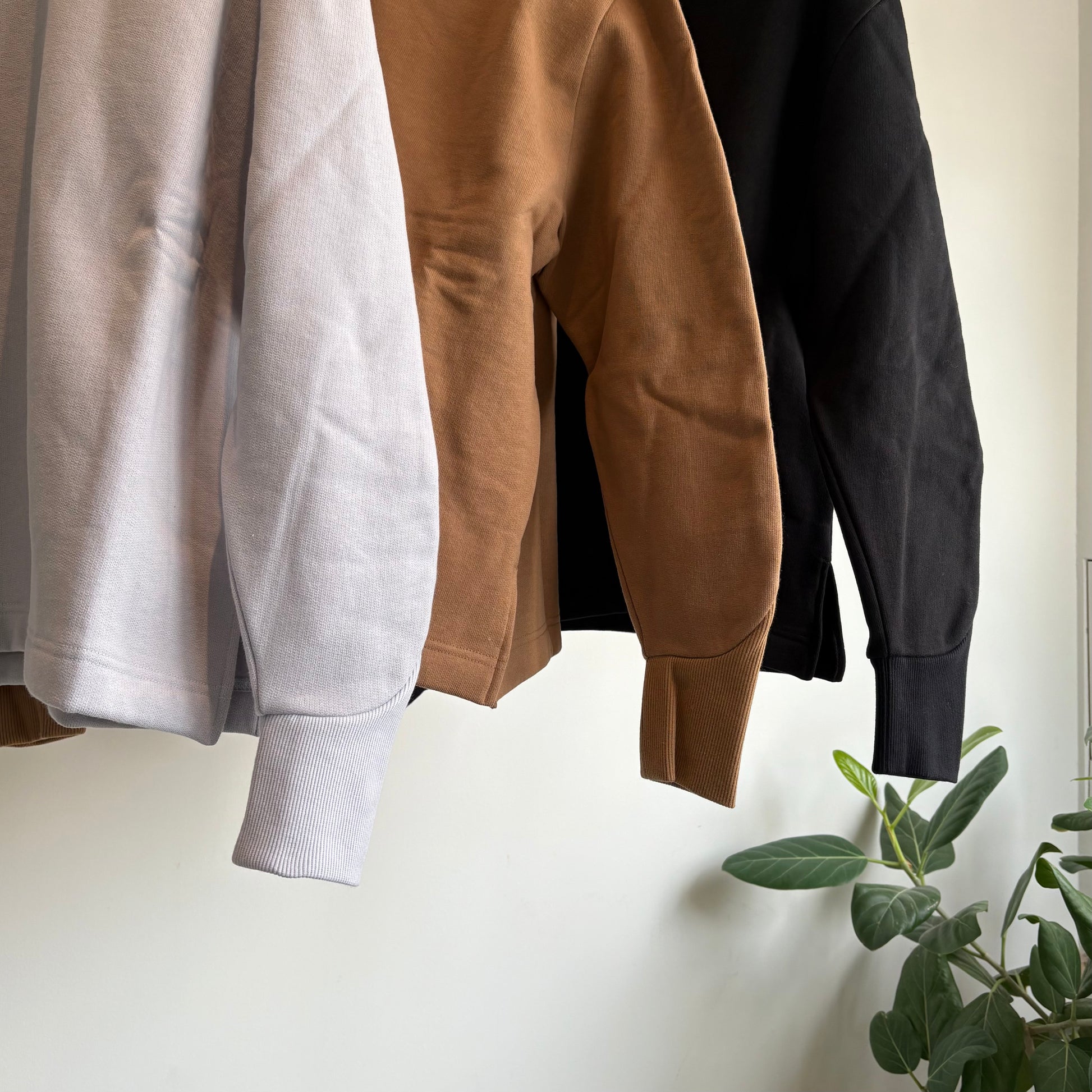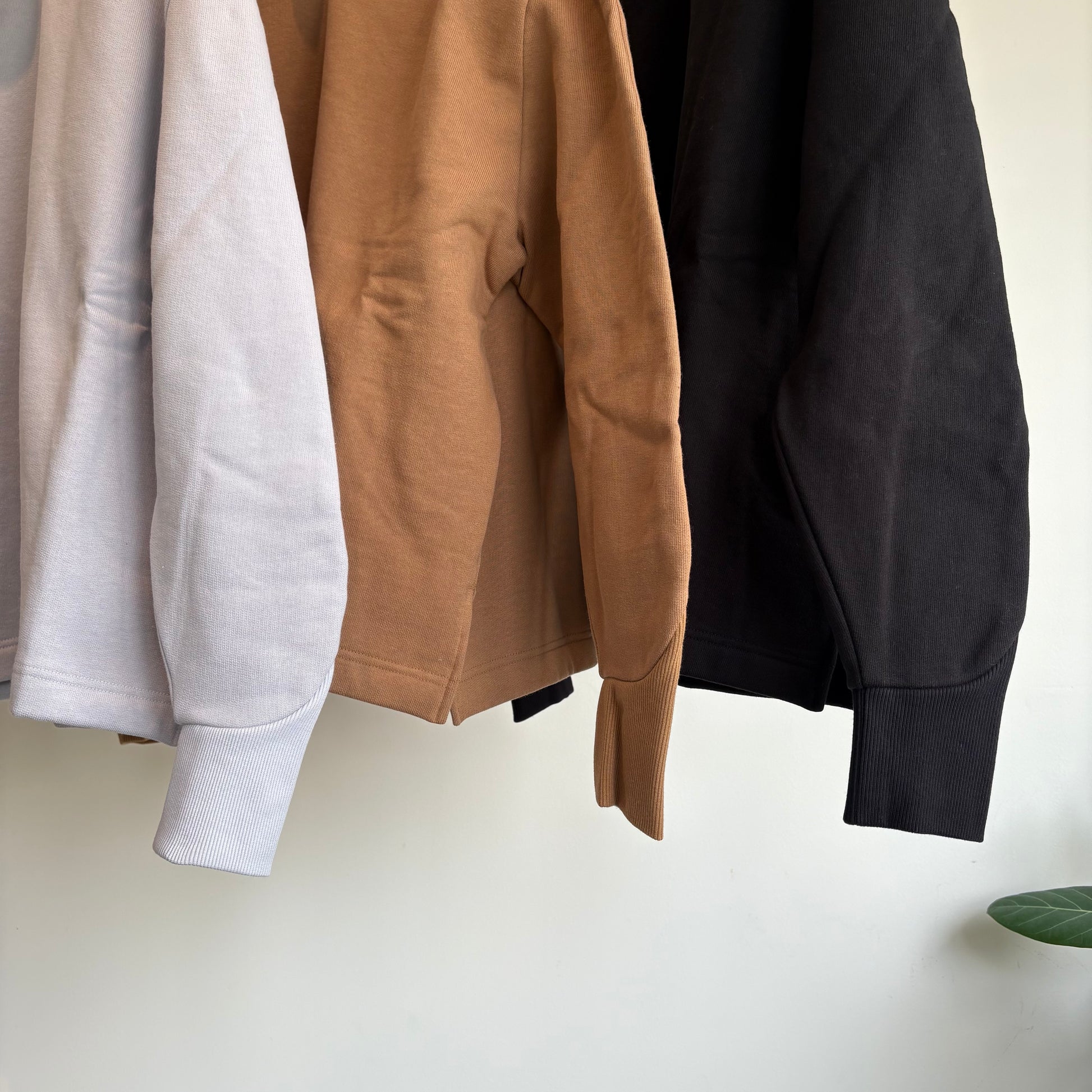 トレーナーには珍しいスプリットラグランになっているので一枚で着ても様になります。