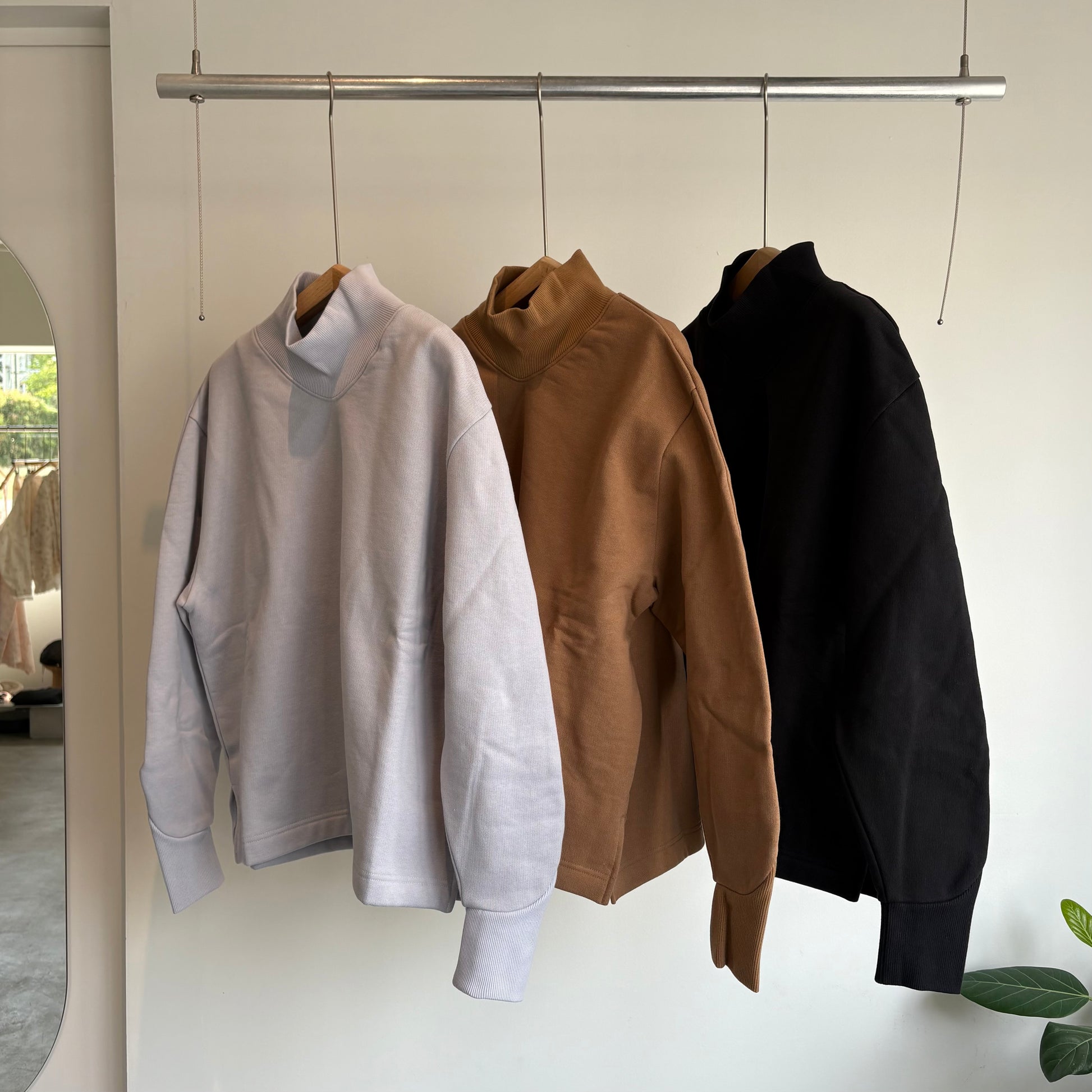 秋口のアウターにも冬のインナーにも使用しやすいタートルネックのトレーナーになります。