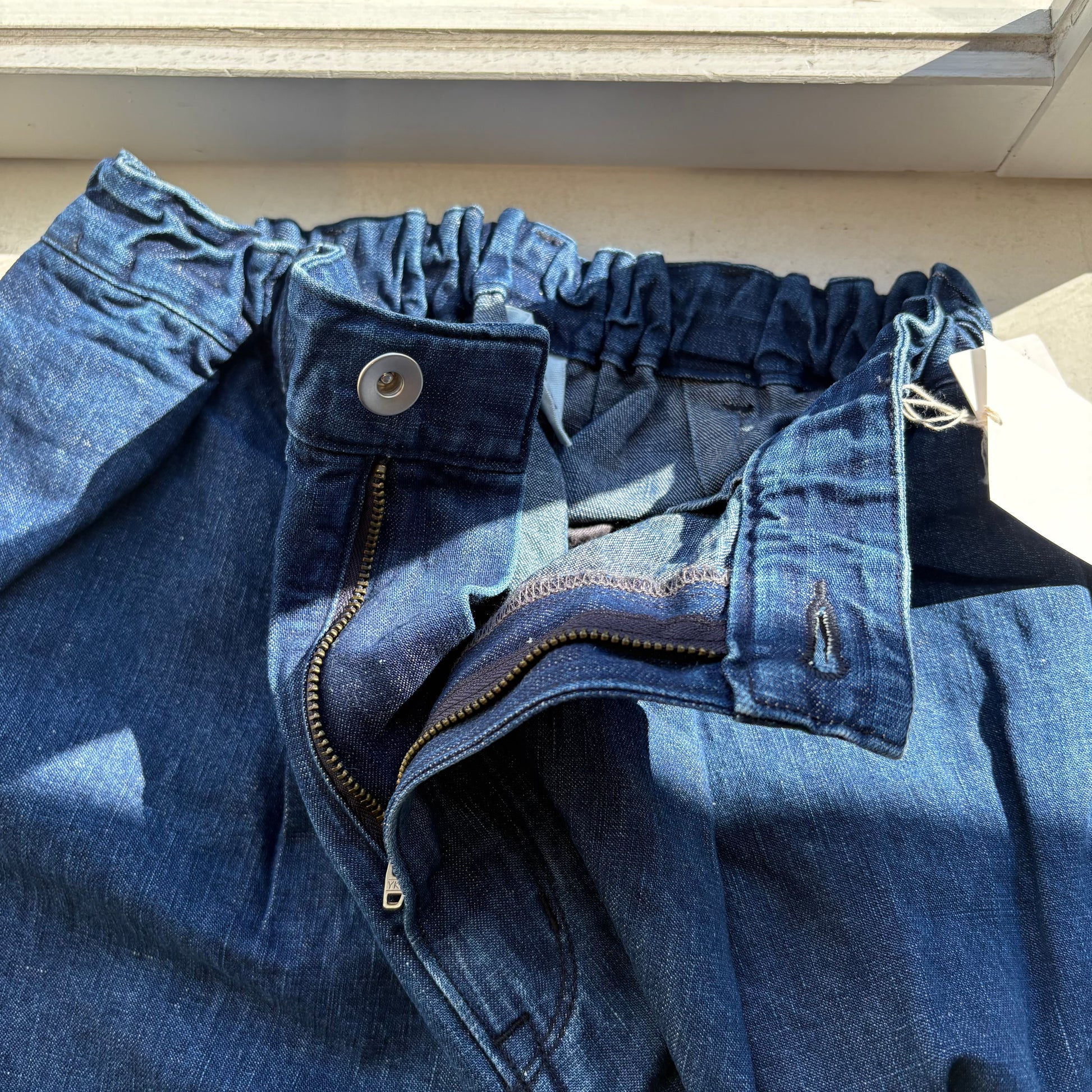 リネンのカラッとした風合いと自然な光沢感が活きた奥行きのあるデニム生地です。
