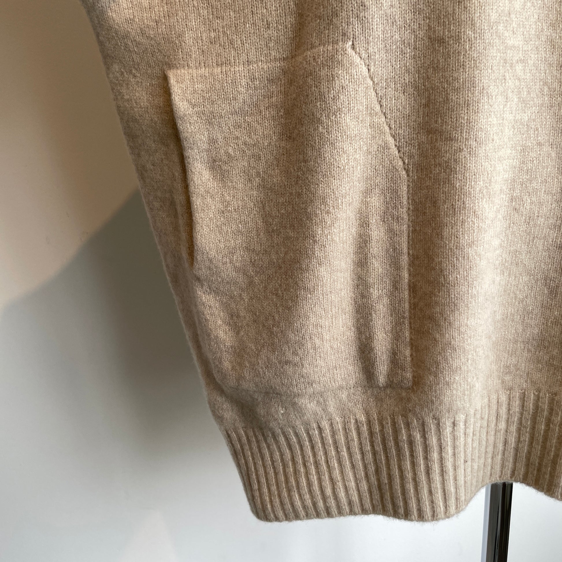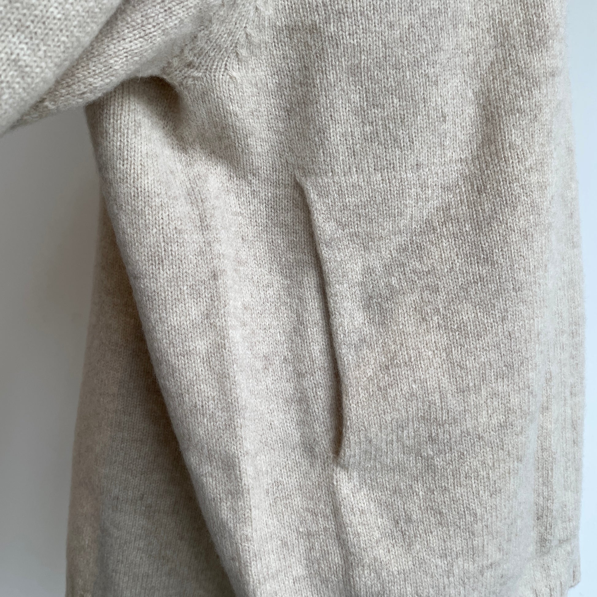 ポケット付き、カジュアルに楽しめるウールカシミアのニットです。