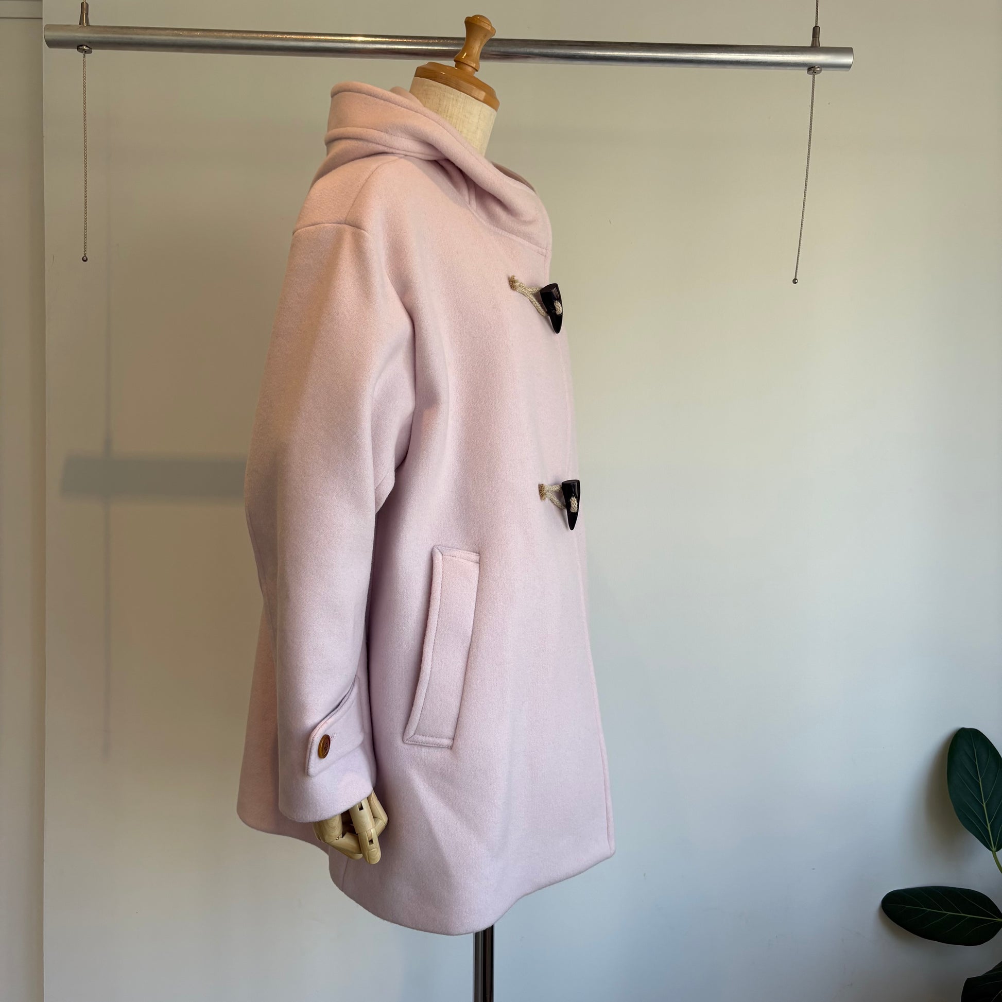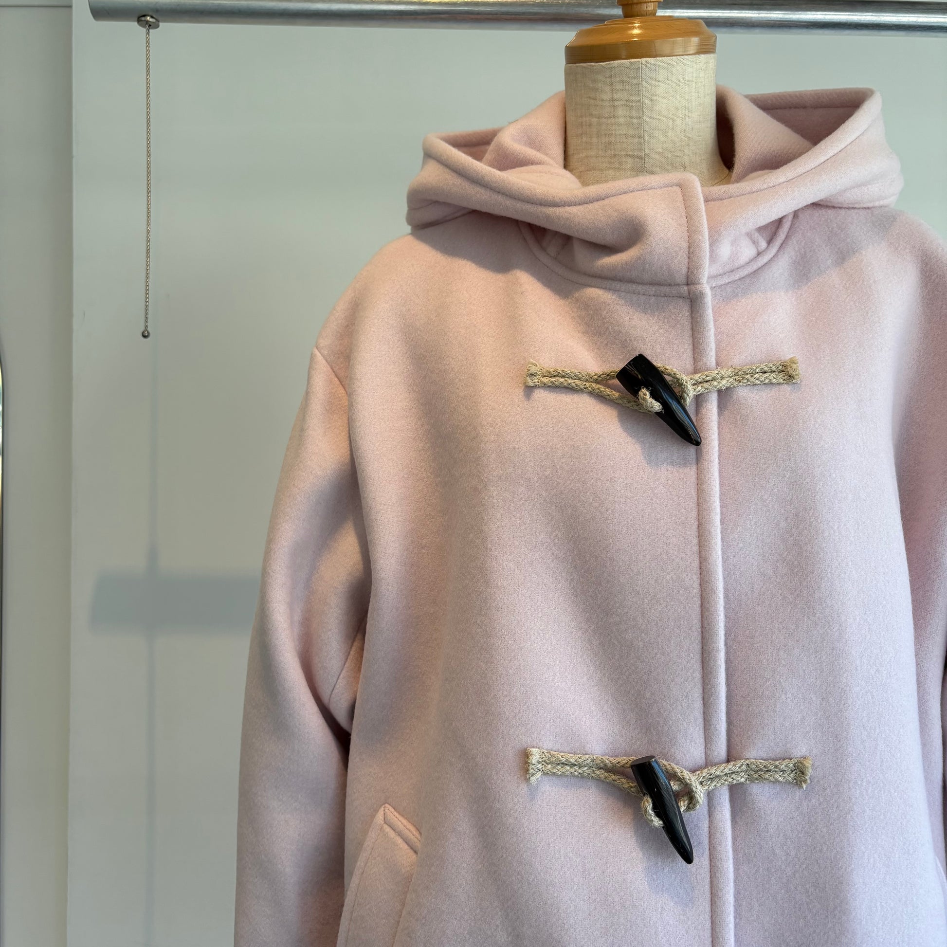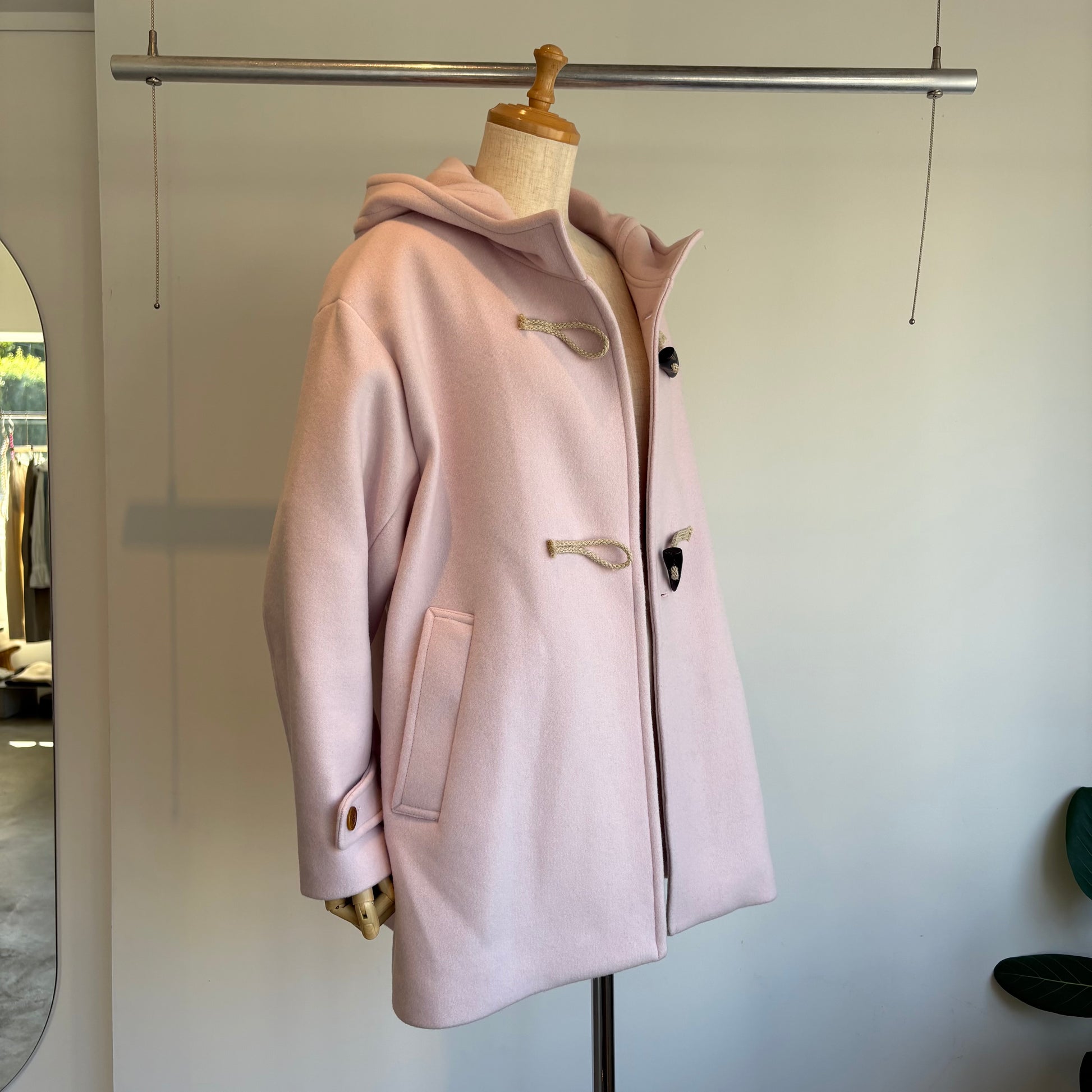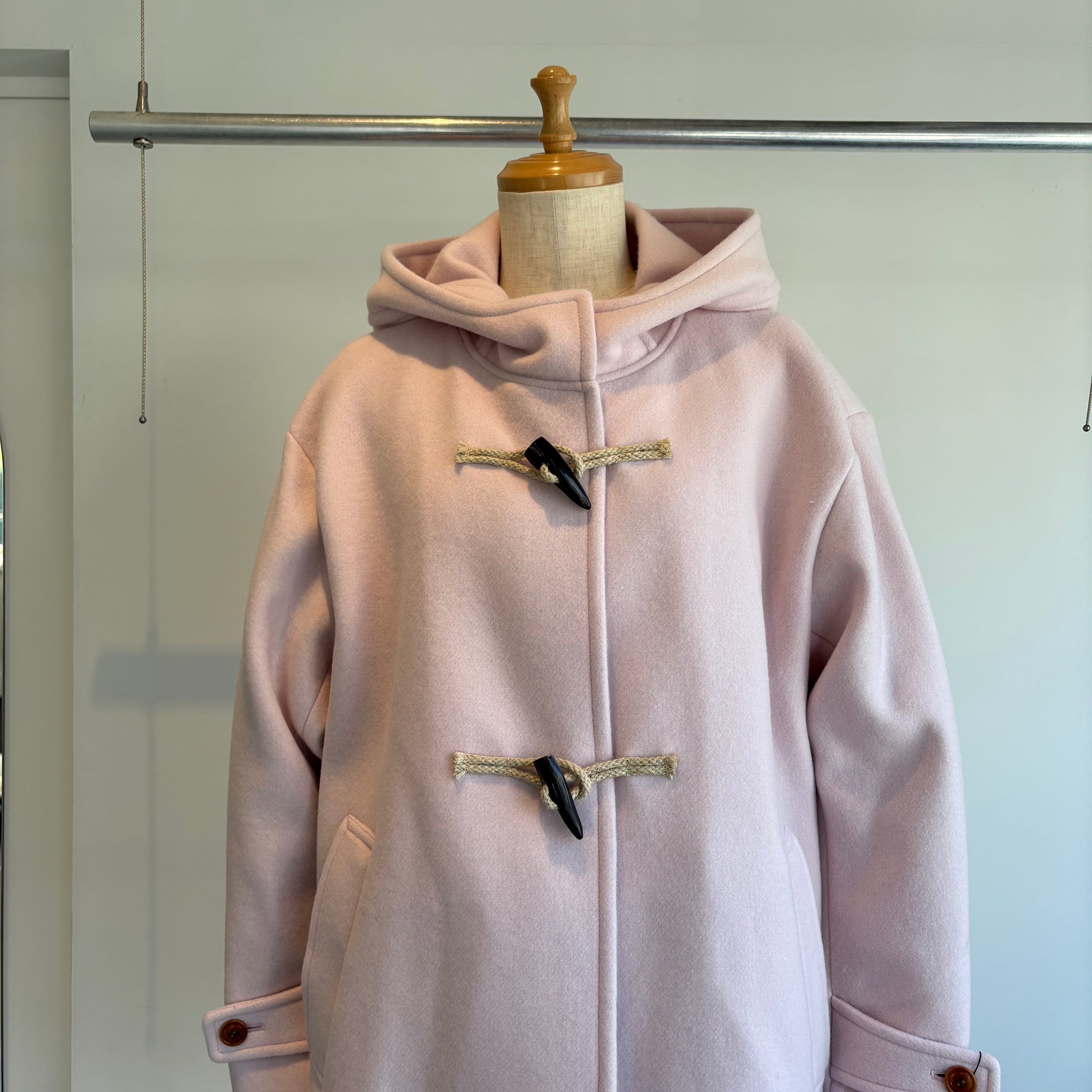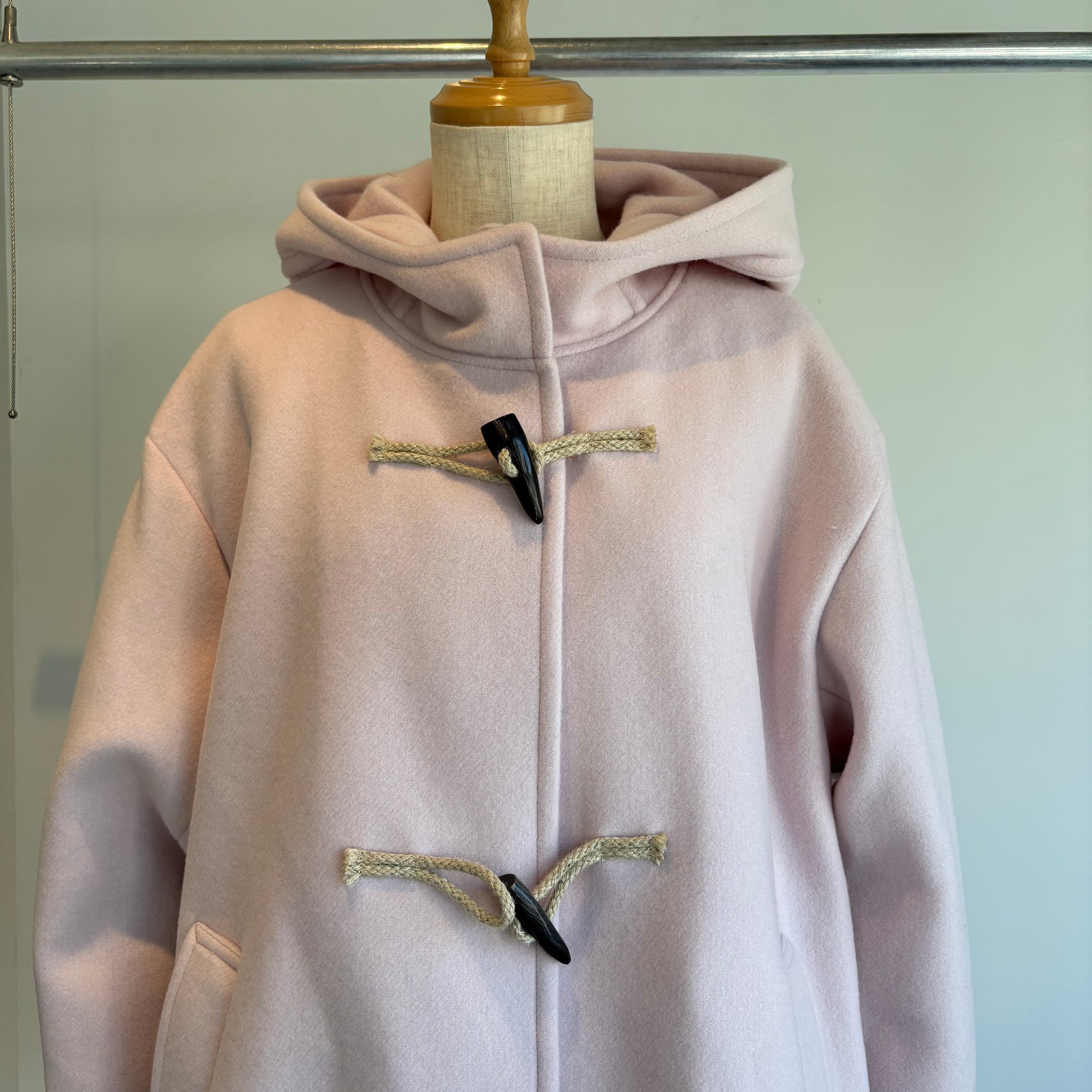 高級ウール糸のsuper110を使用したライトピンクがかわいいコートです。