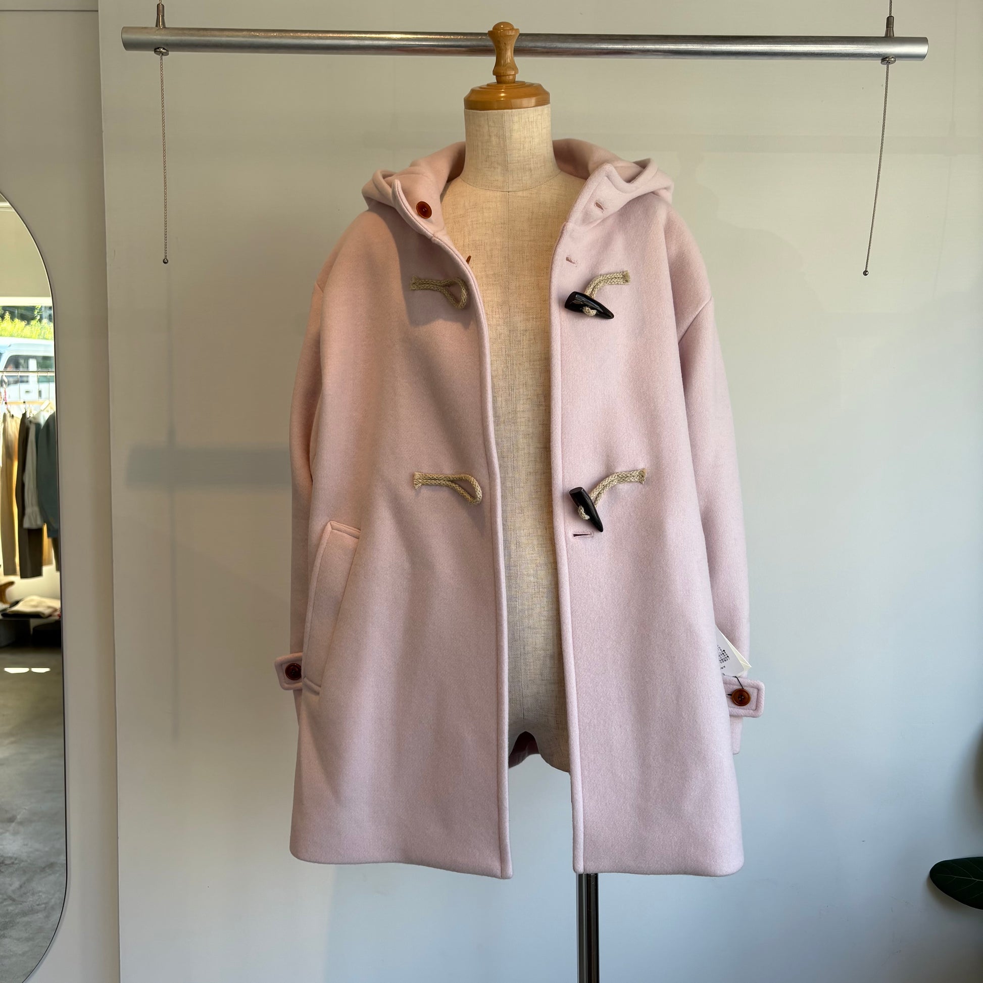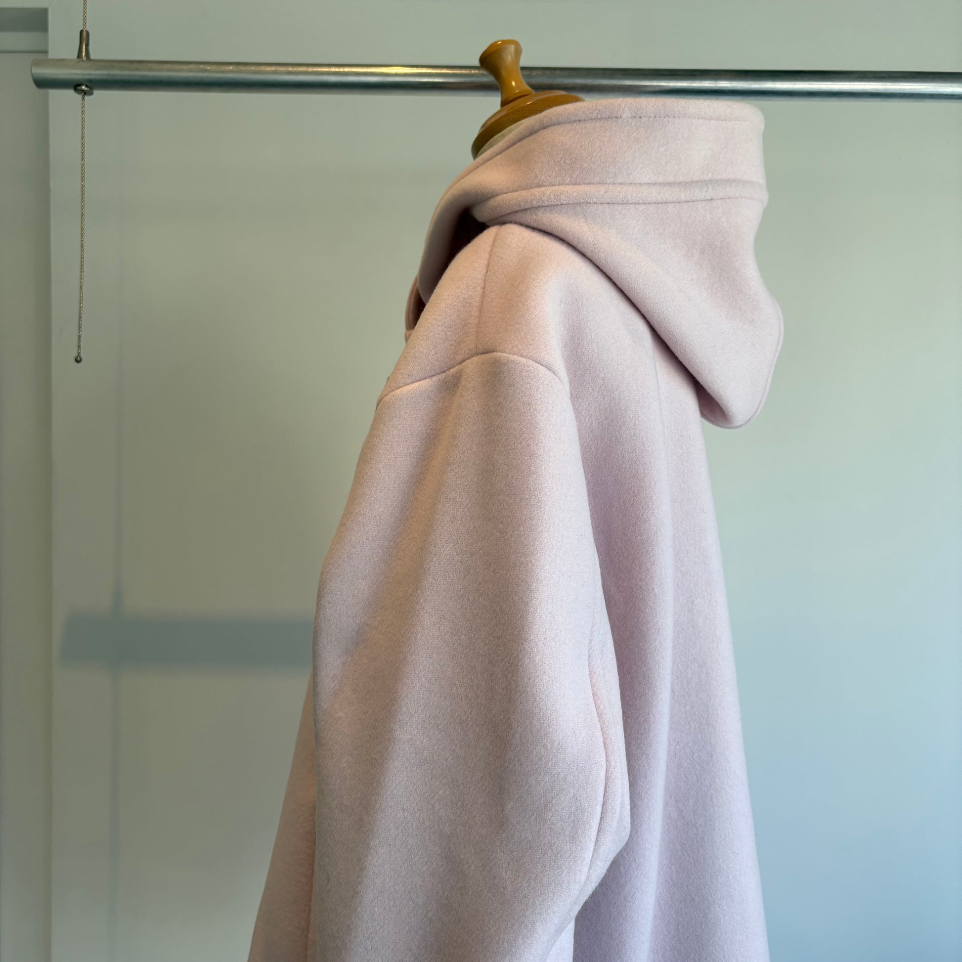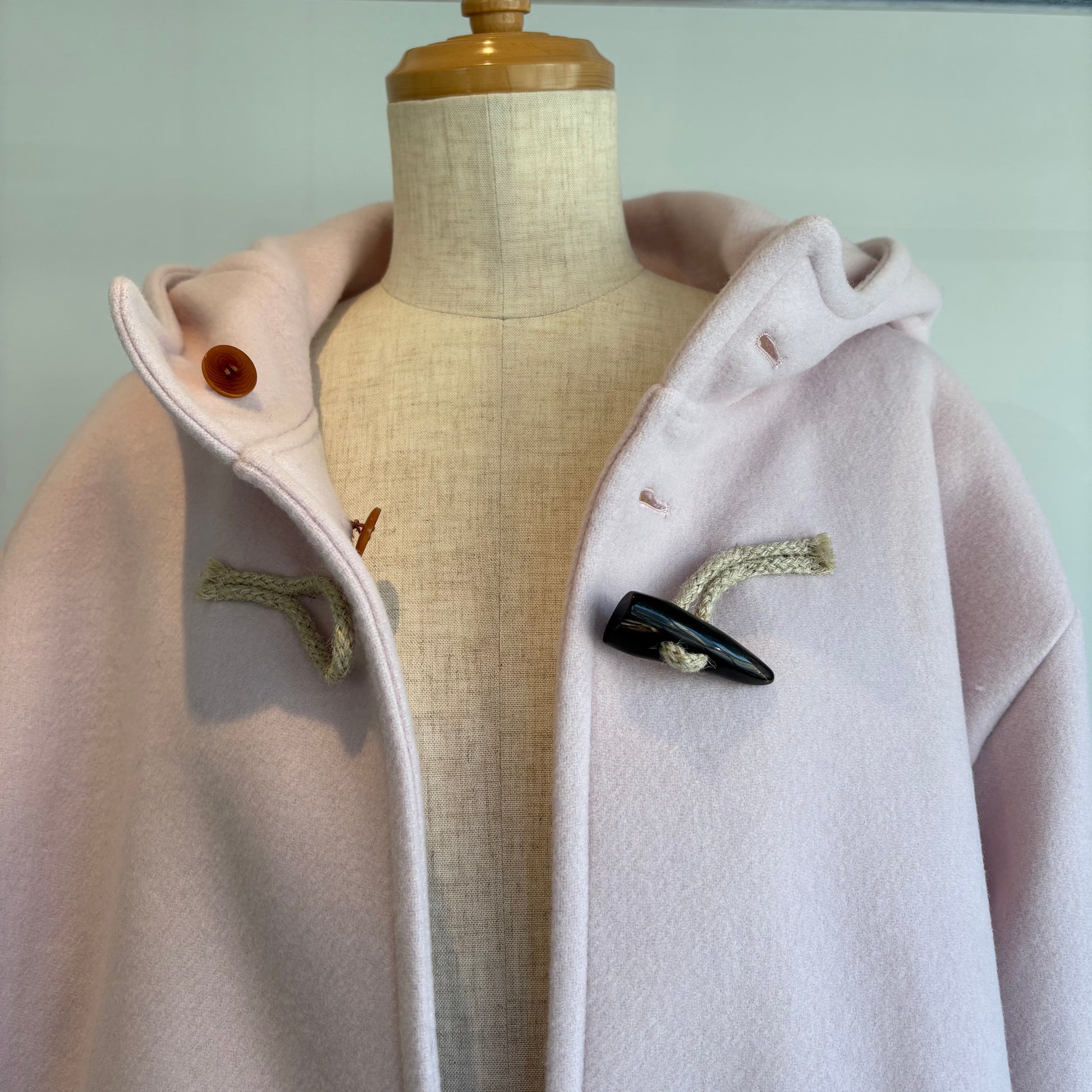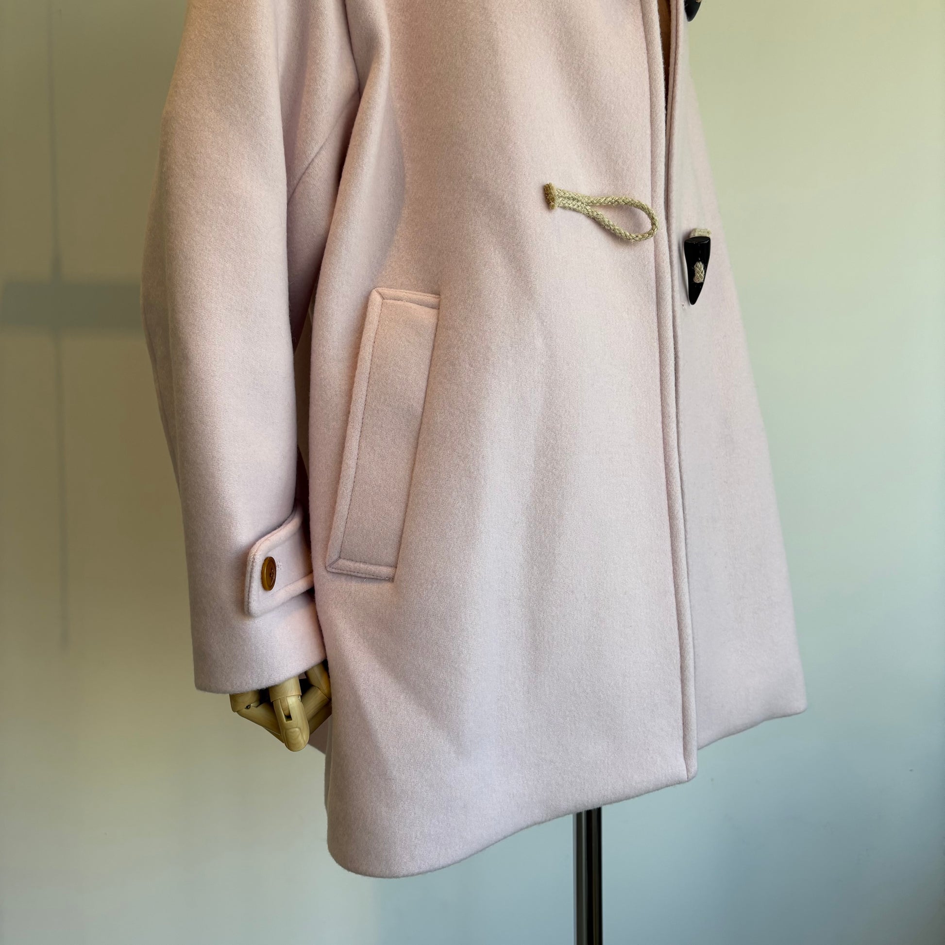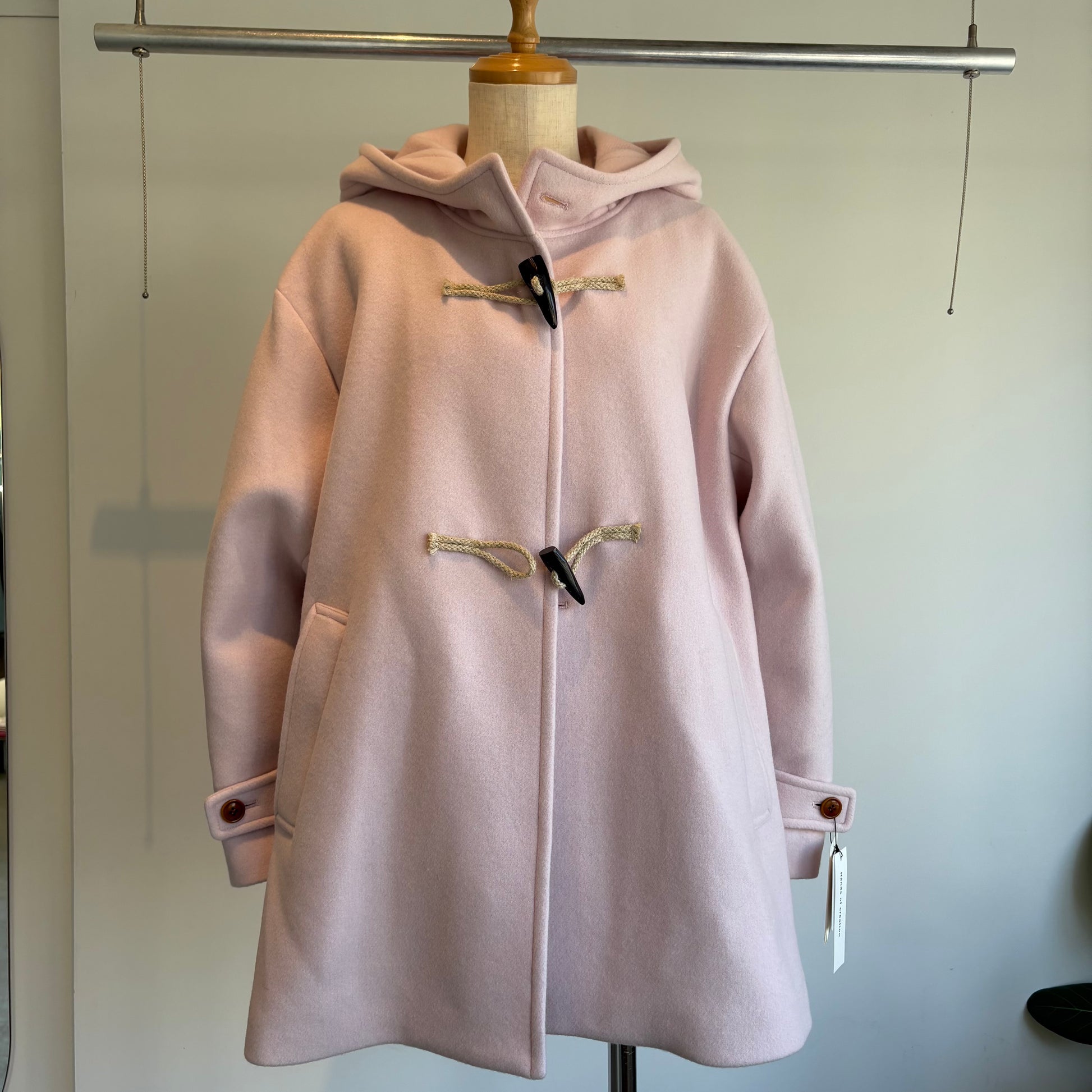 高級ウール糸のsuper110を使用したライトピンクがかわいいコートです。