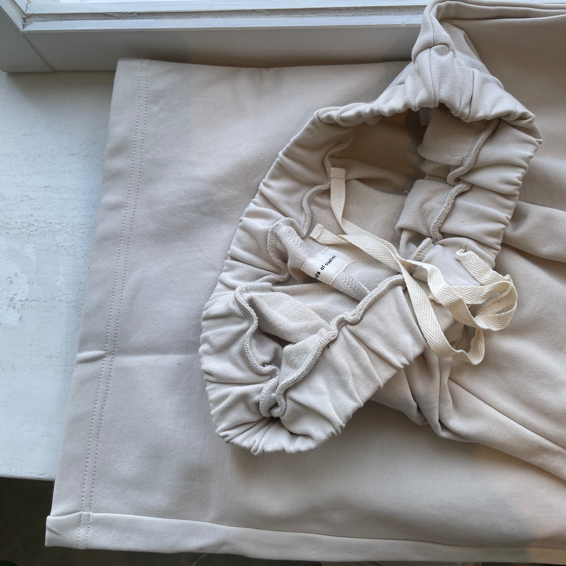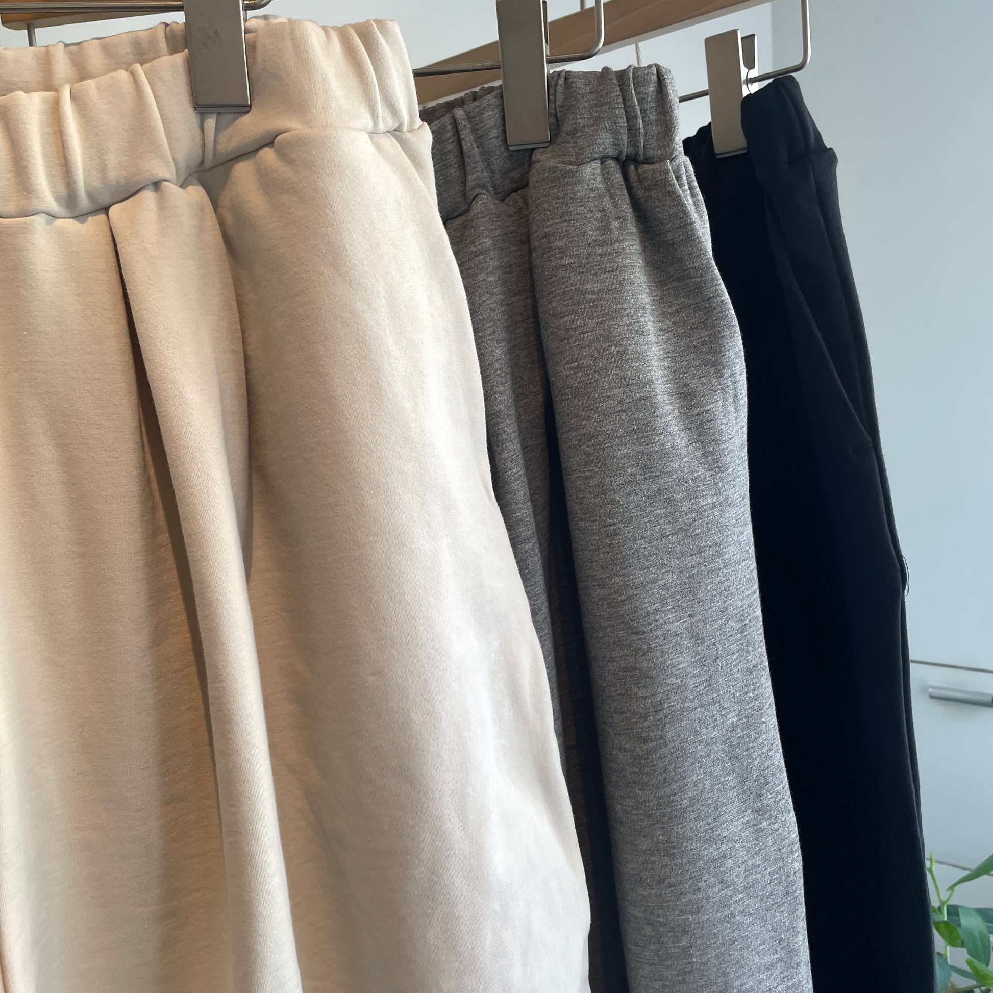 裏毛素材ですが、表面感がきれいな素材でラフになり過ぎず、大人の方に使い勝手の良いパンツです。