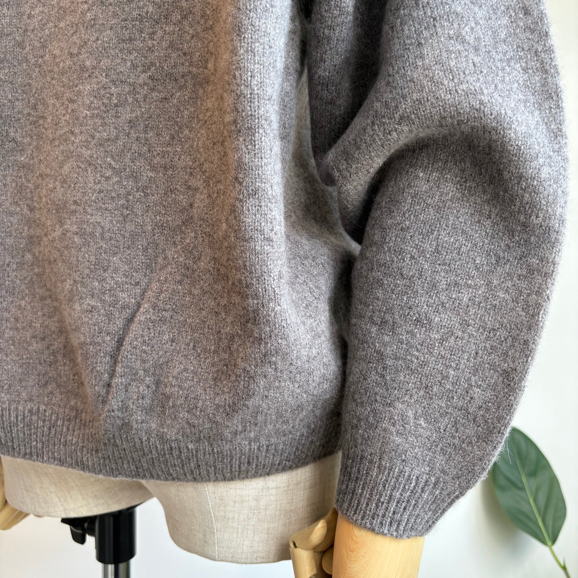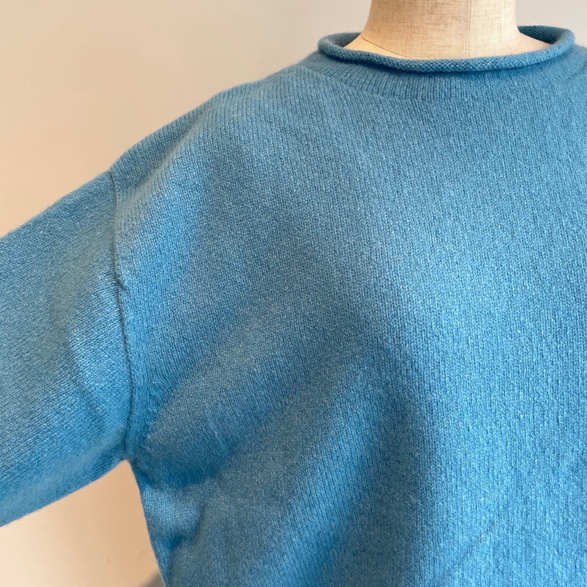 シェットランドタイプのウールでスポンディッシュな風合い、カシミヤがブレンドしているので、ふっくらとしていてソフトタッチな仕上りになっています。