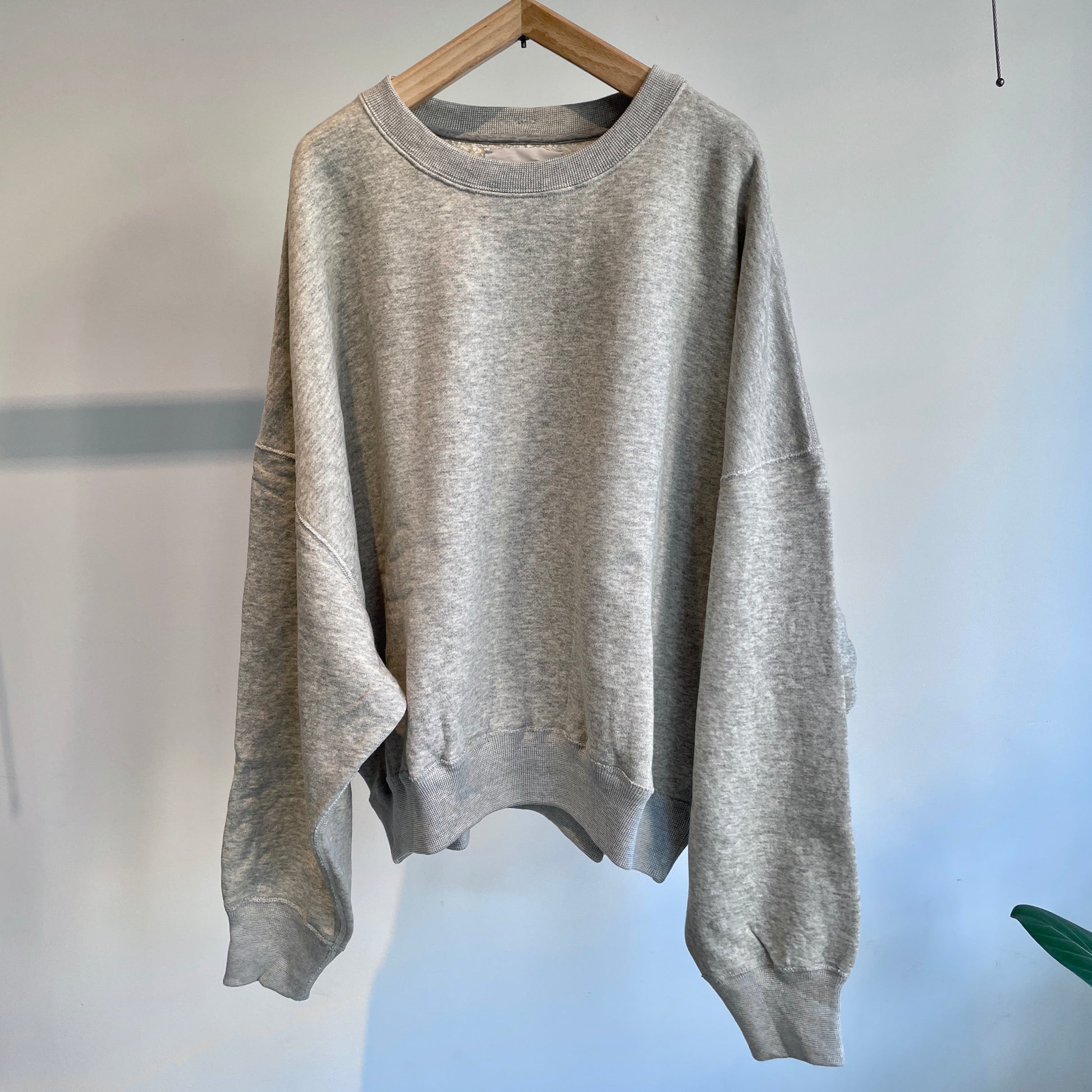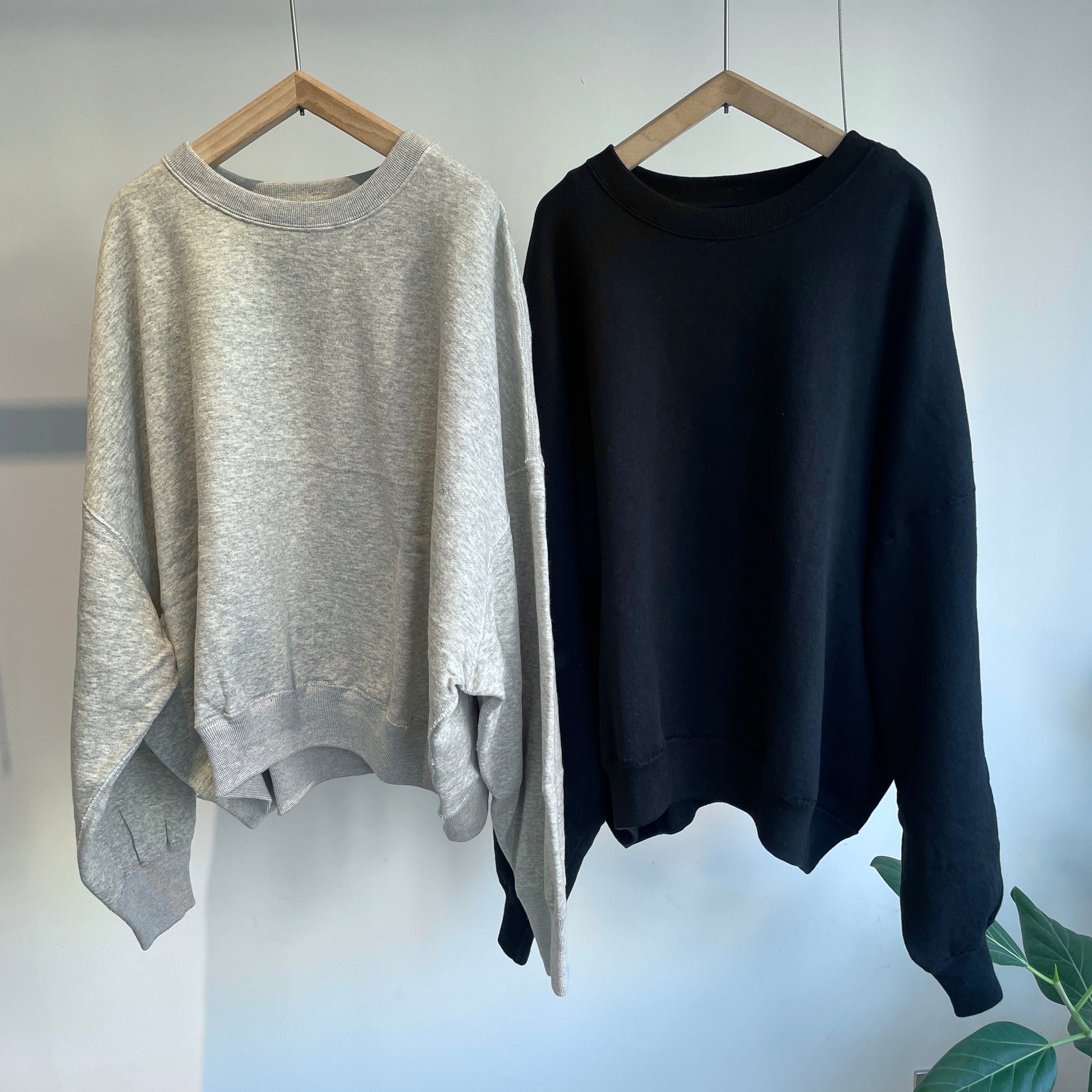 オーバーサイズのプルオーバー、リブで立体感が出せて