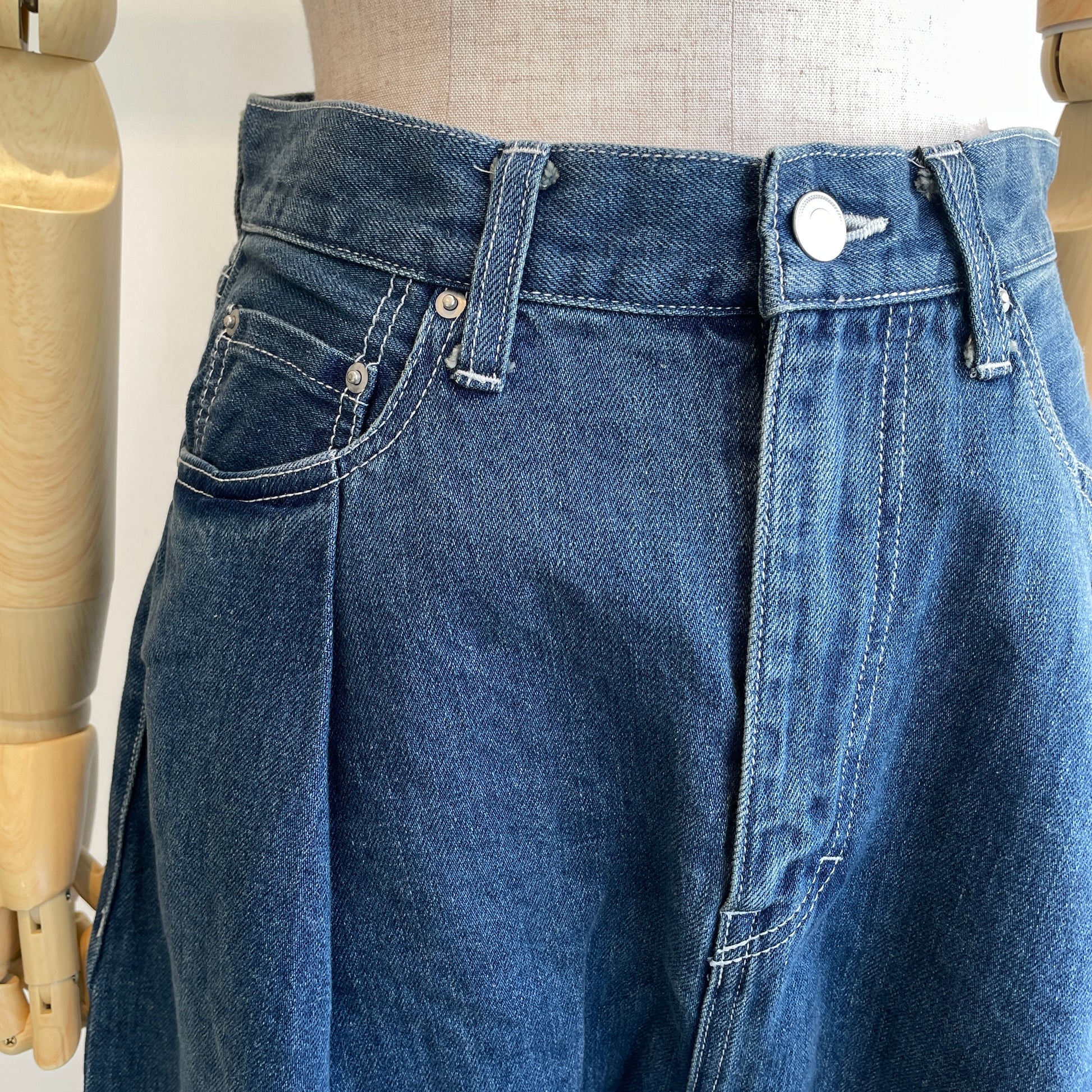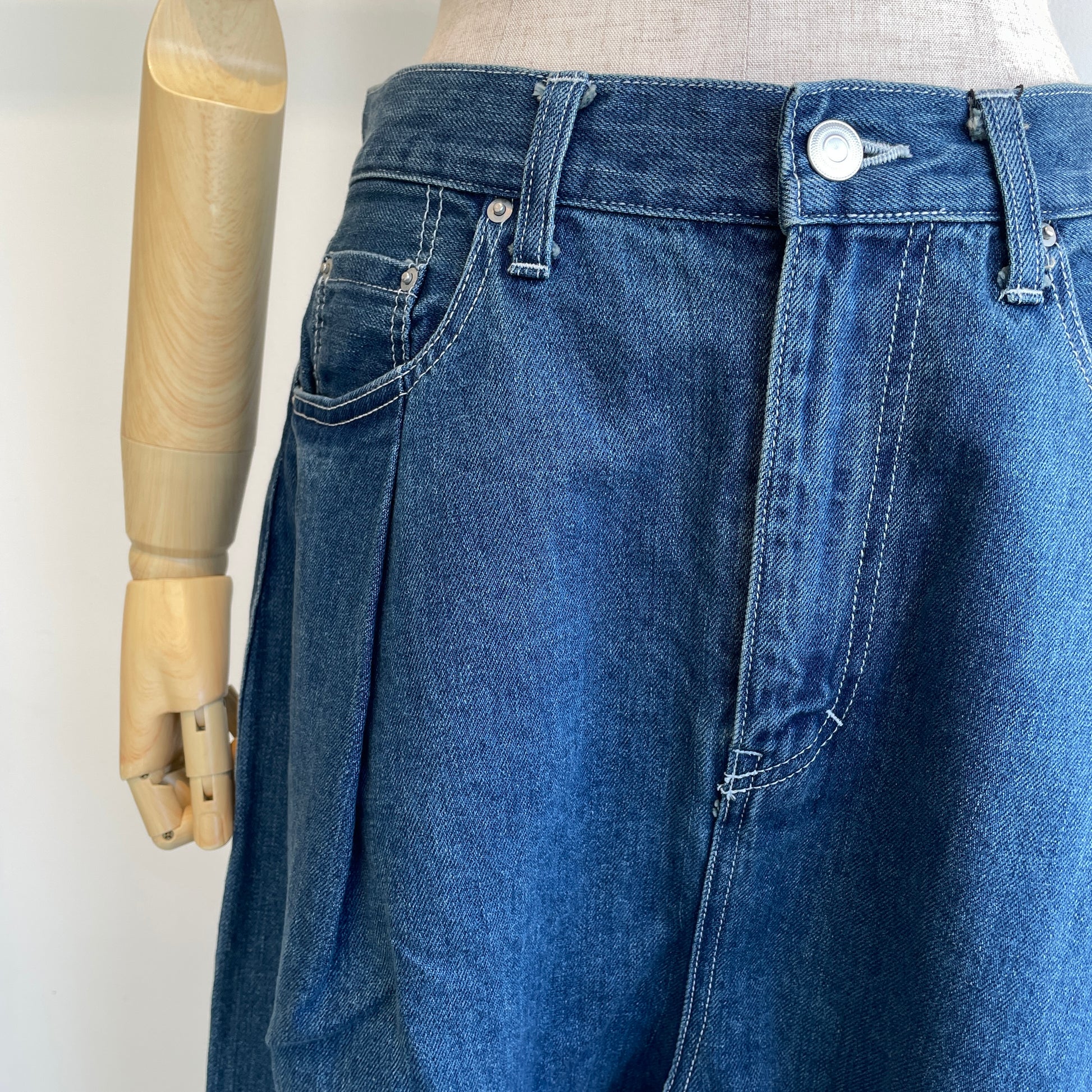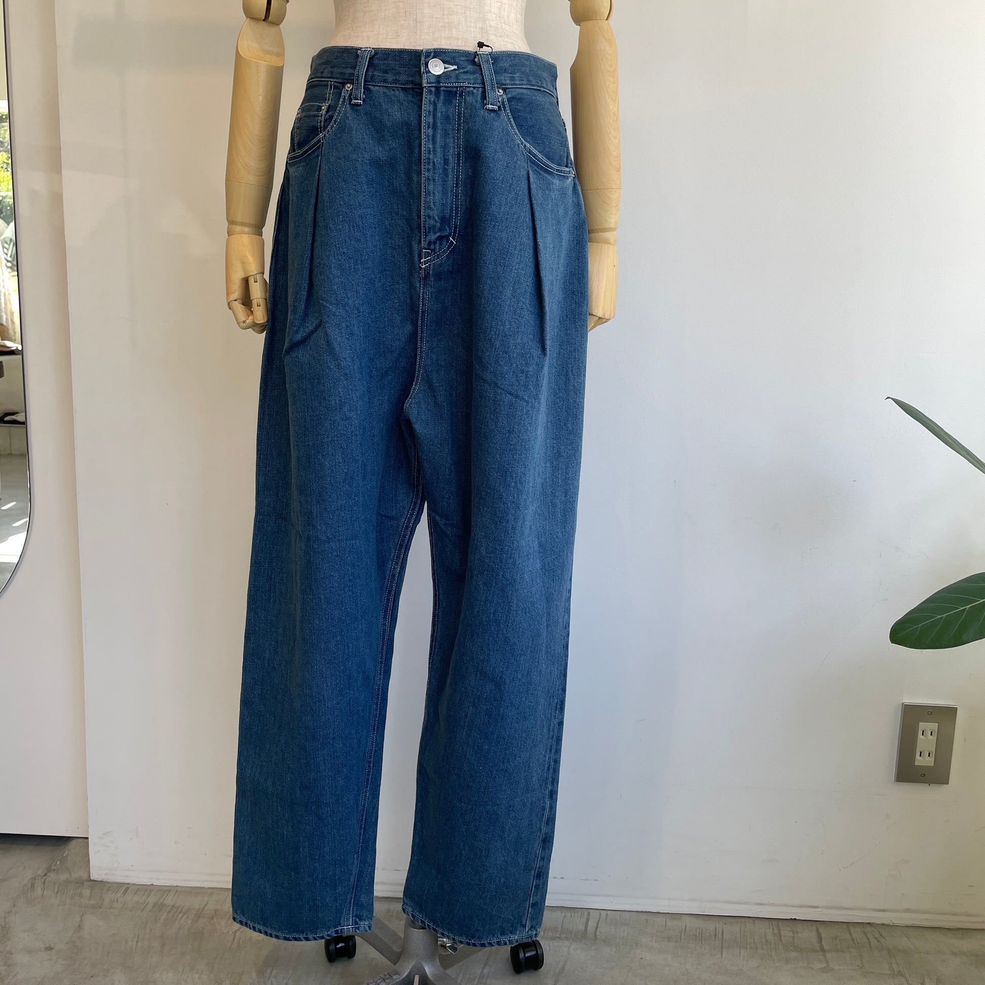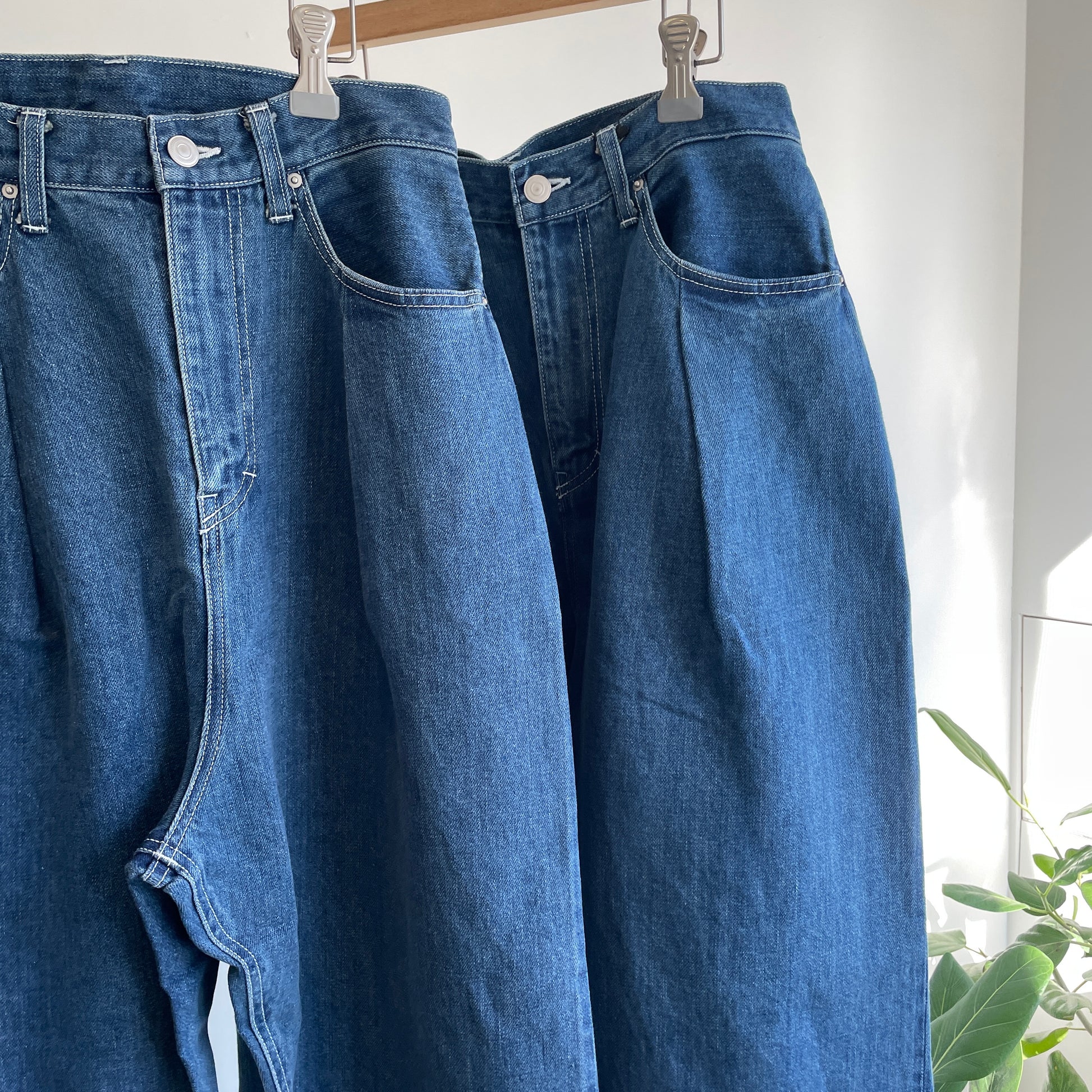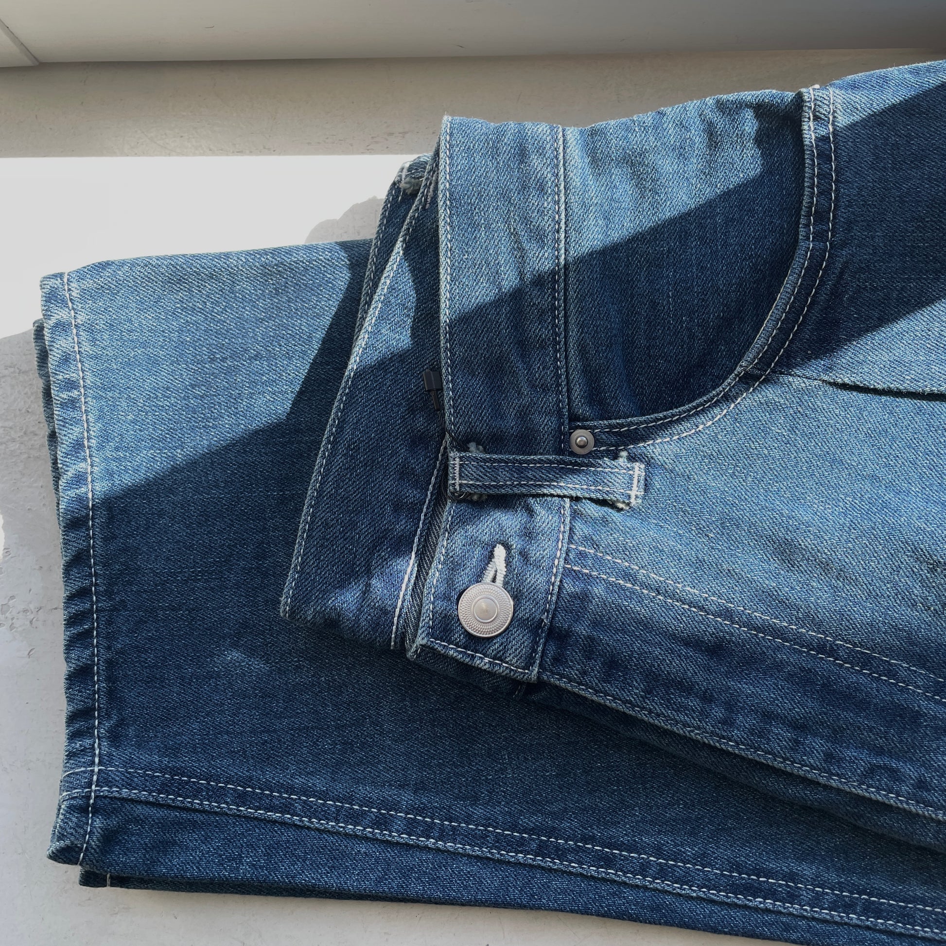 旧式の織機(シャトル織機)で織られ生地端にほつれ止めが施されているセルビッチデニムを使用したヴィンテージカラーのデニムパンツ