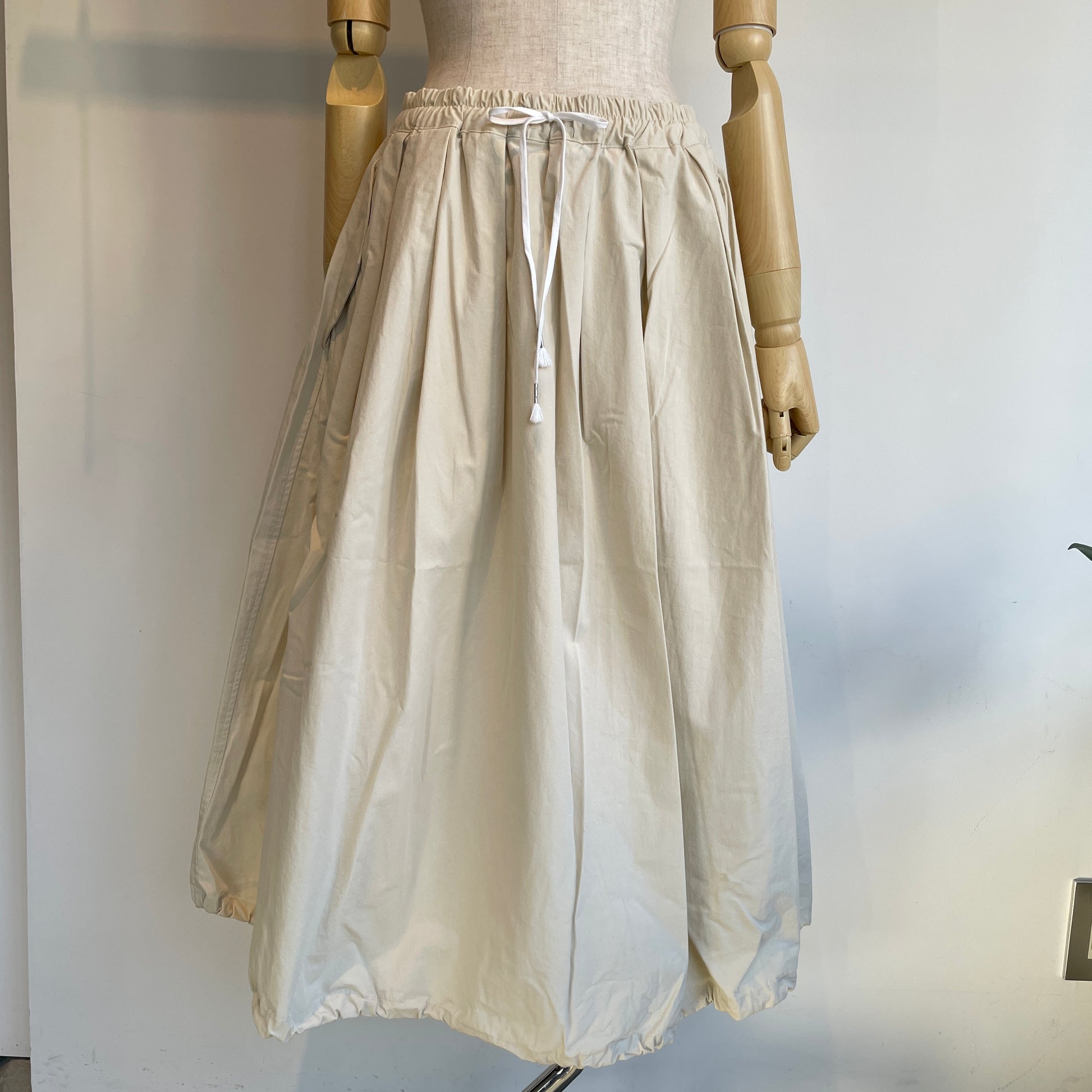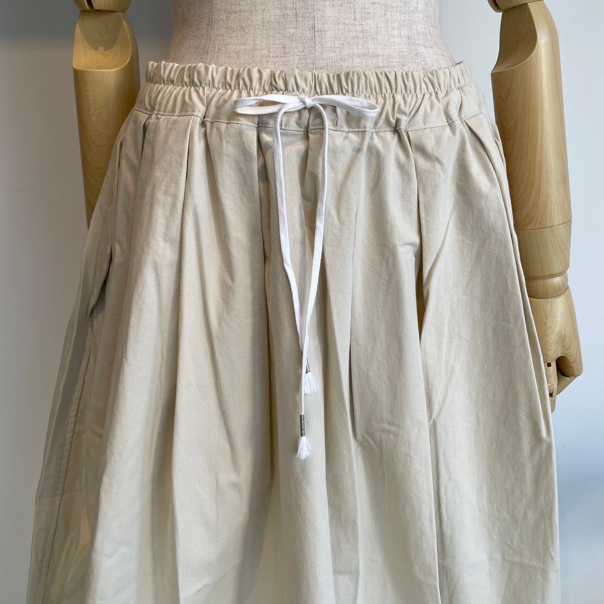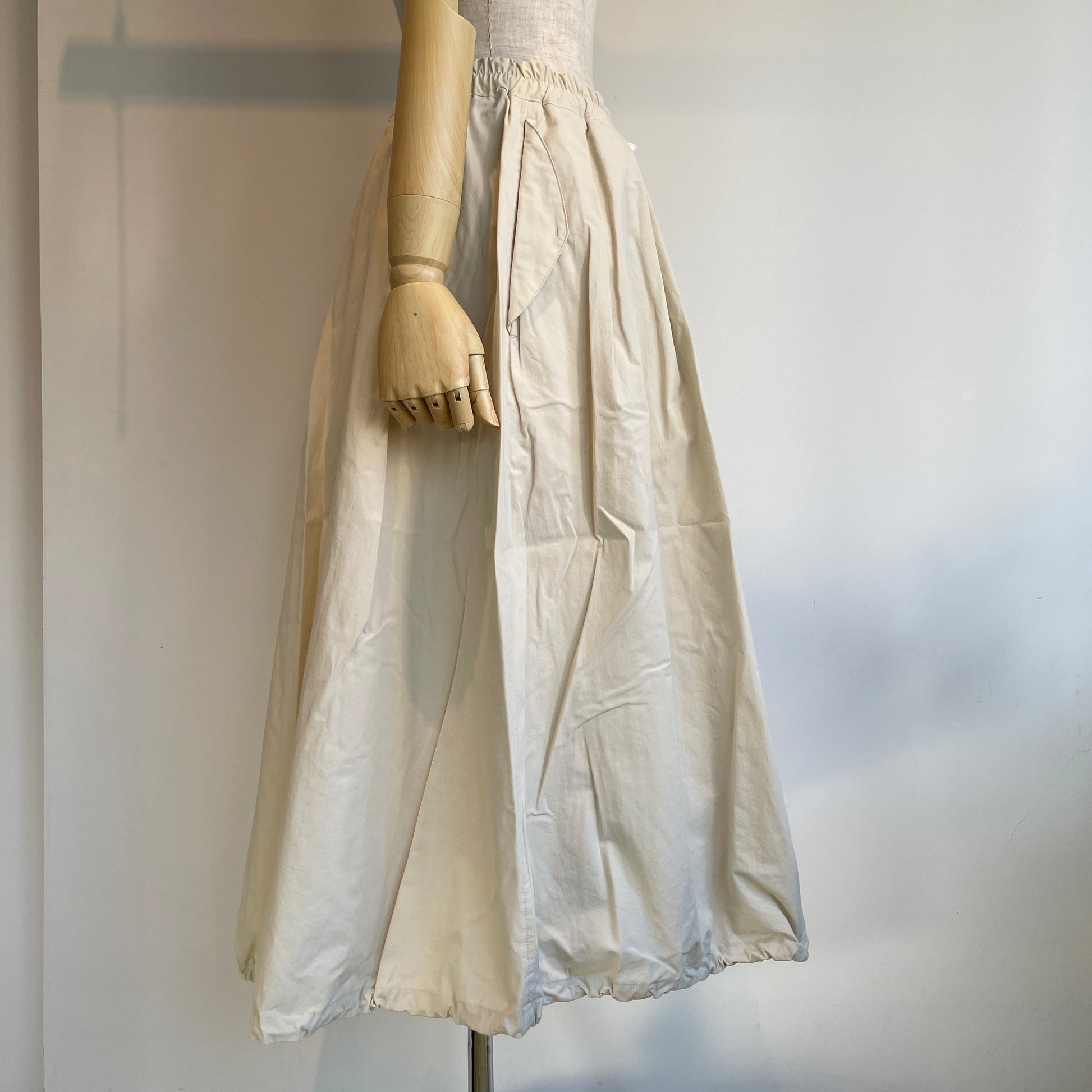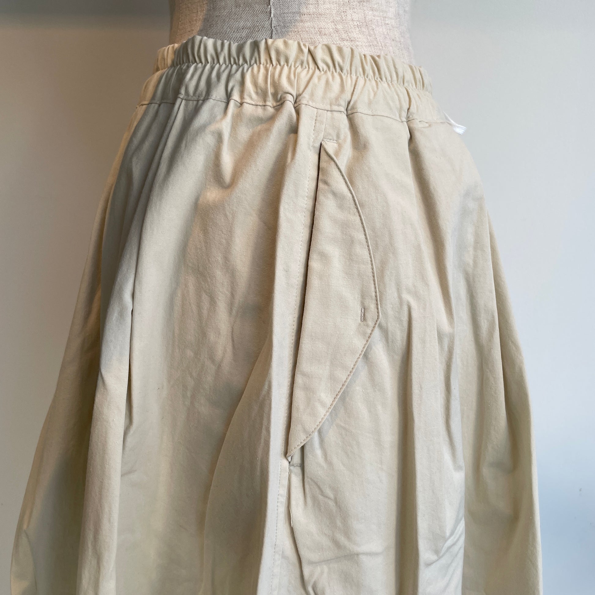 裾のドローコードで絞り調整をしながら、丸みを出して履いていただけます。