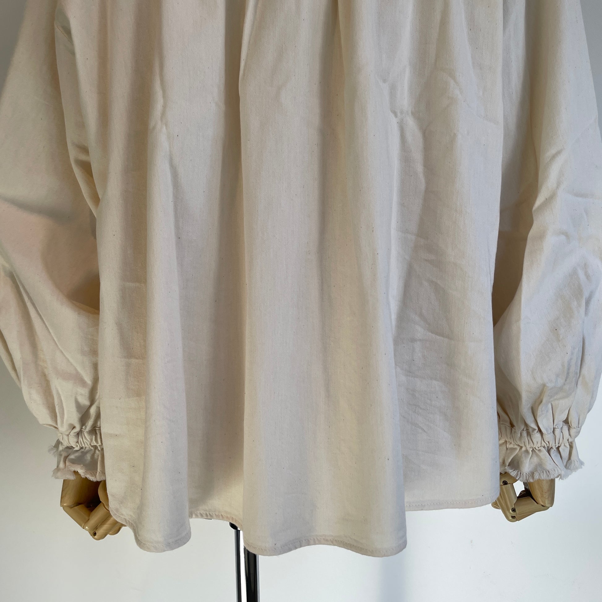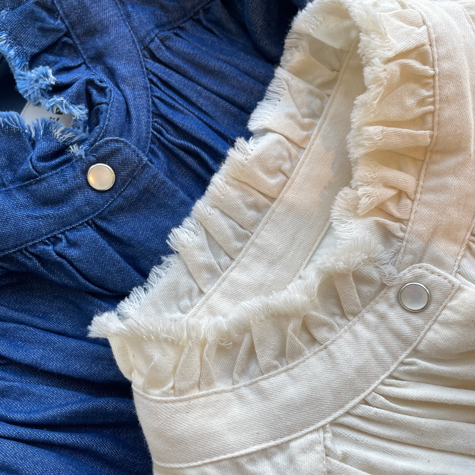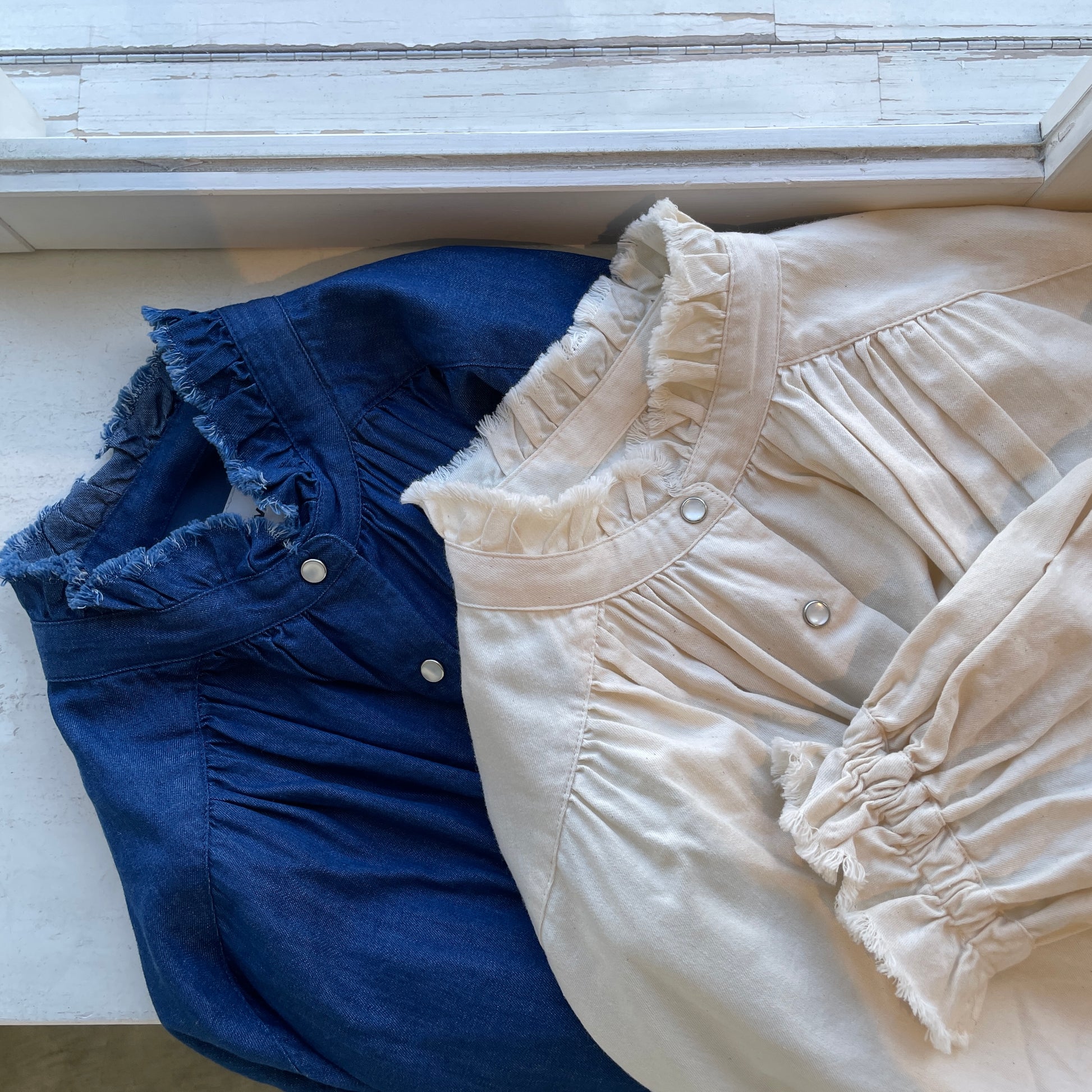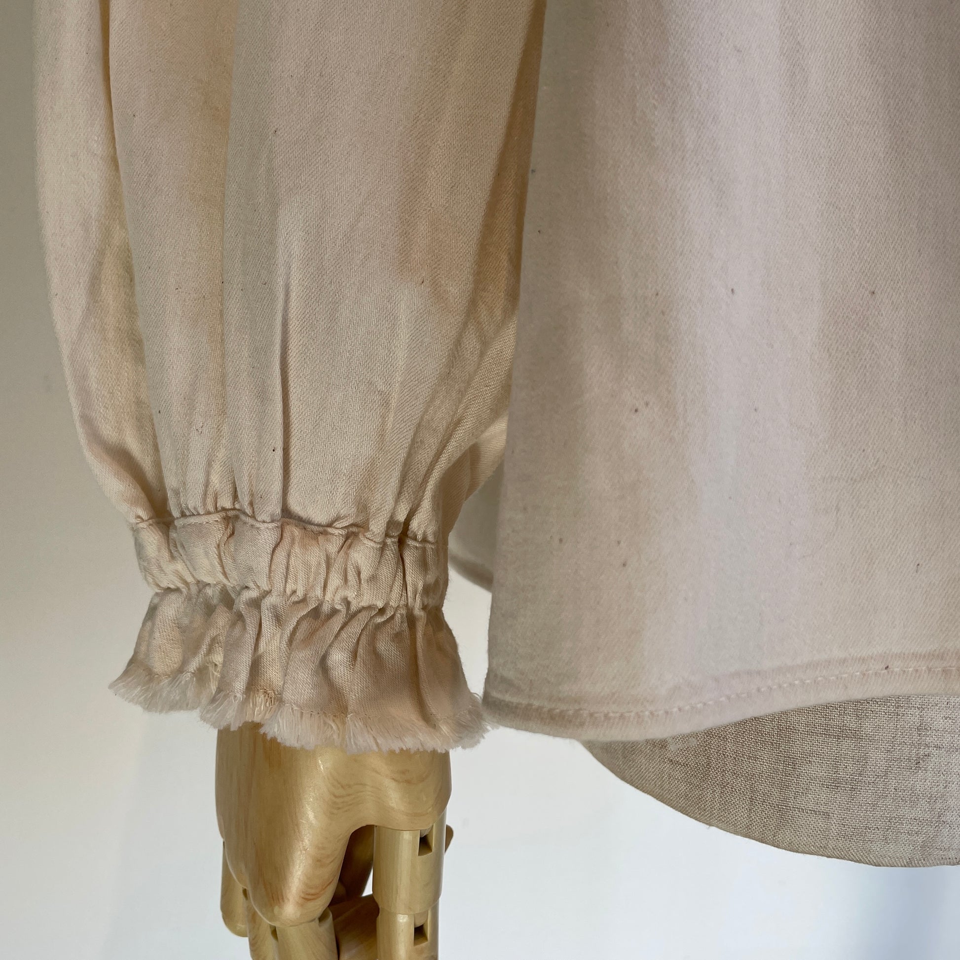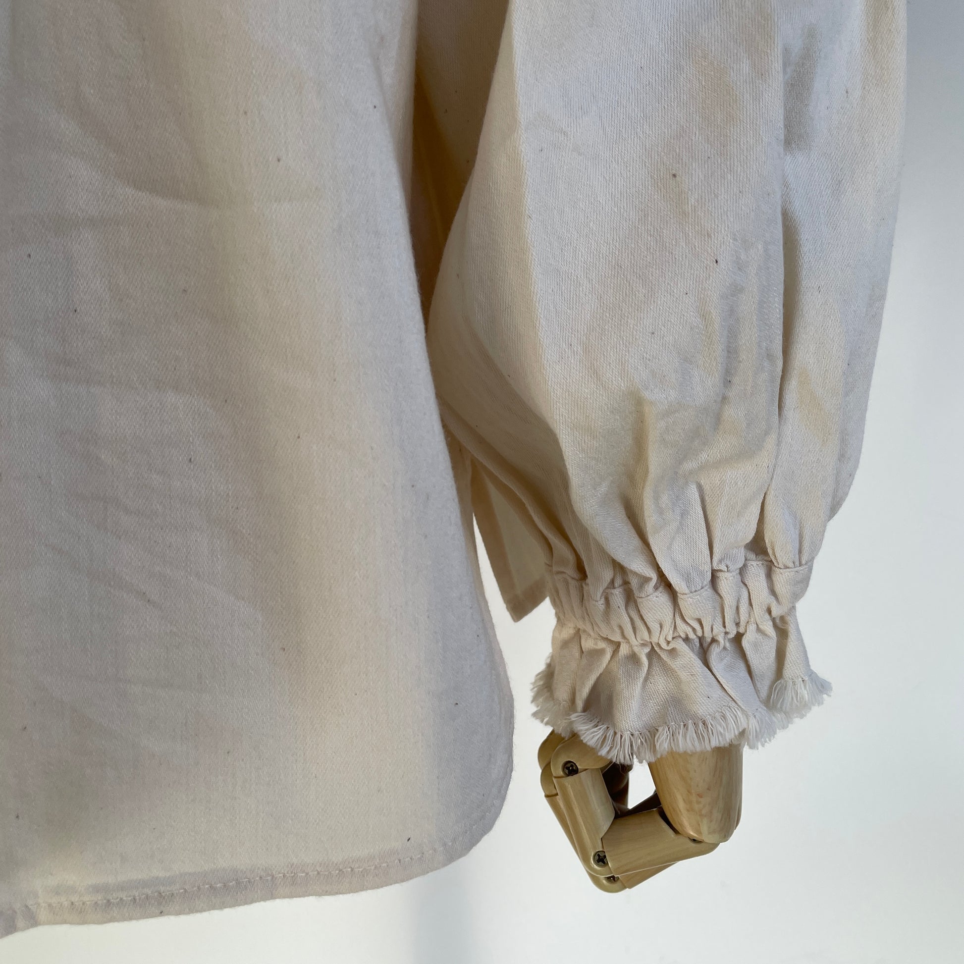 切りっぱなしのフリルが甘すぎず、袖口にはゴムが入っていますので、立体感が出せます。