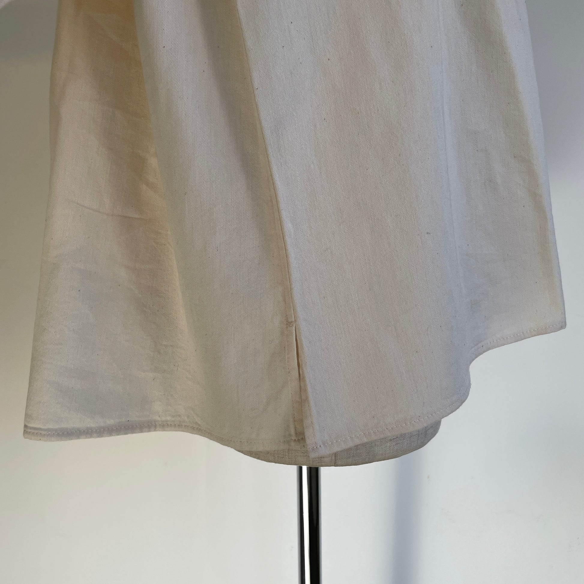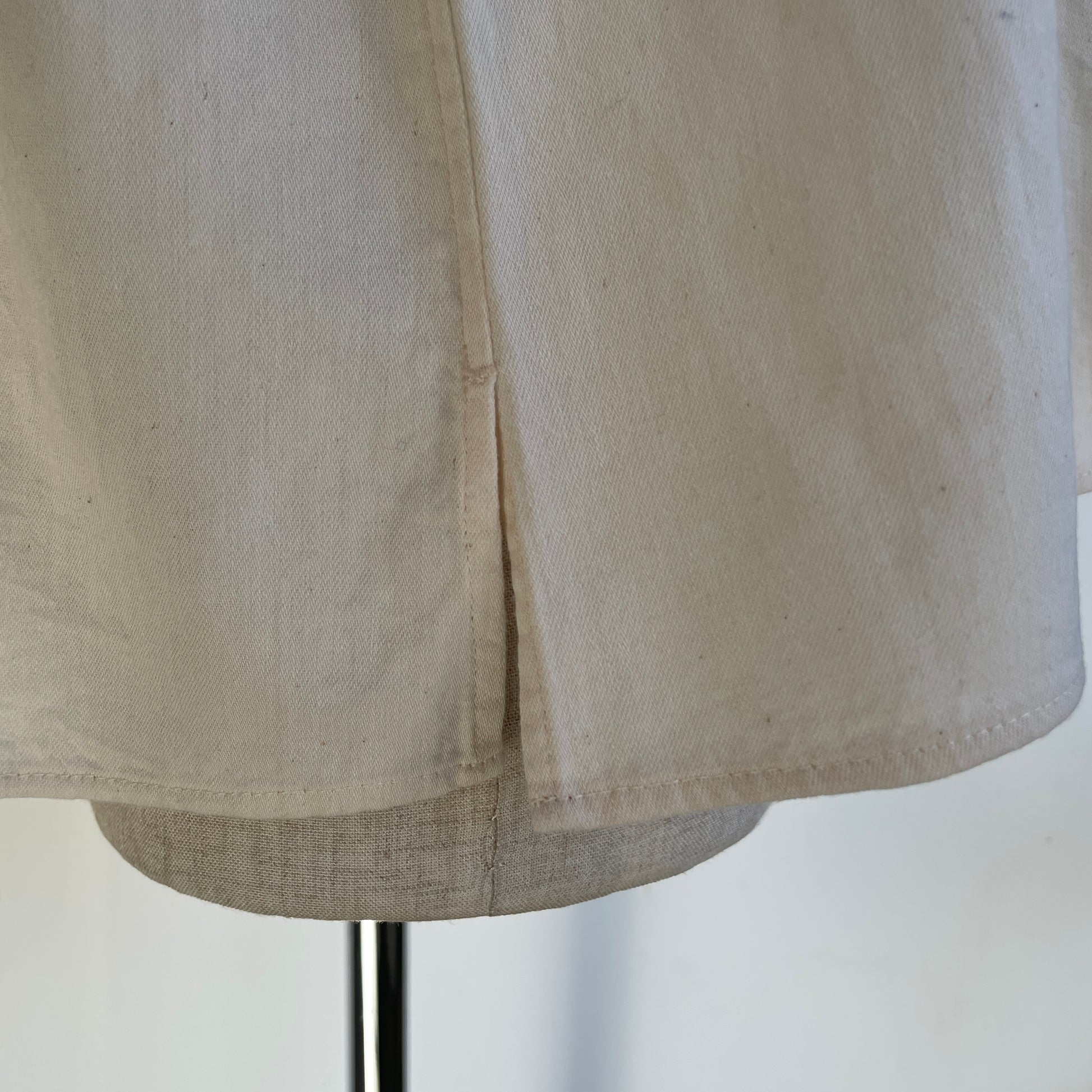 経系にアメリカ・オーストラリア綿のナチュラルなムラ系を使用して、緯糸に30/-ベンベルグと防縮ウールの混紡糸を使用しています。