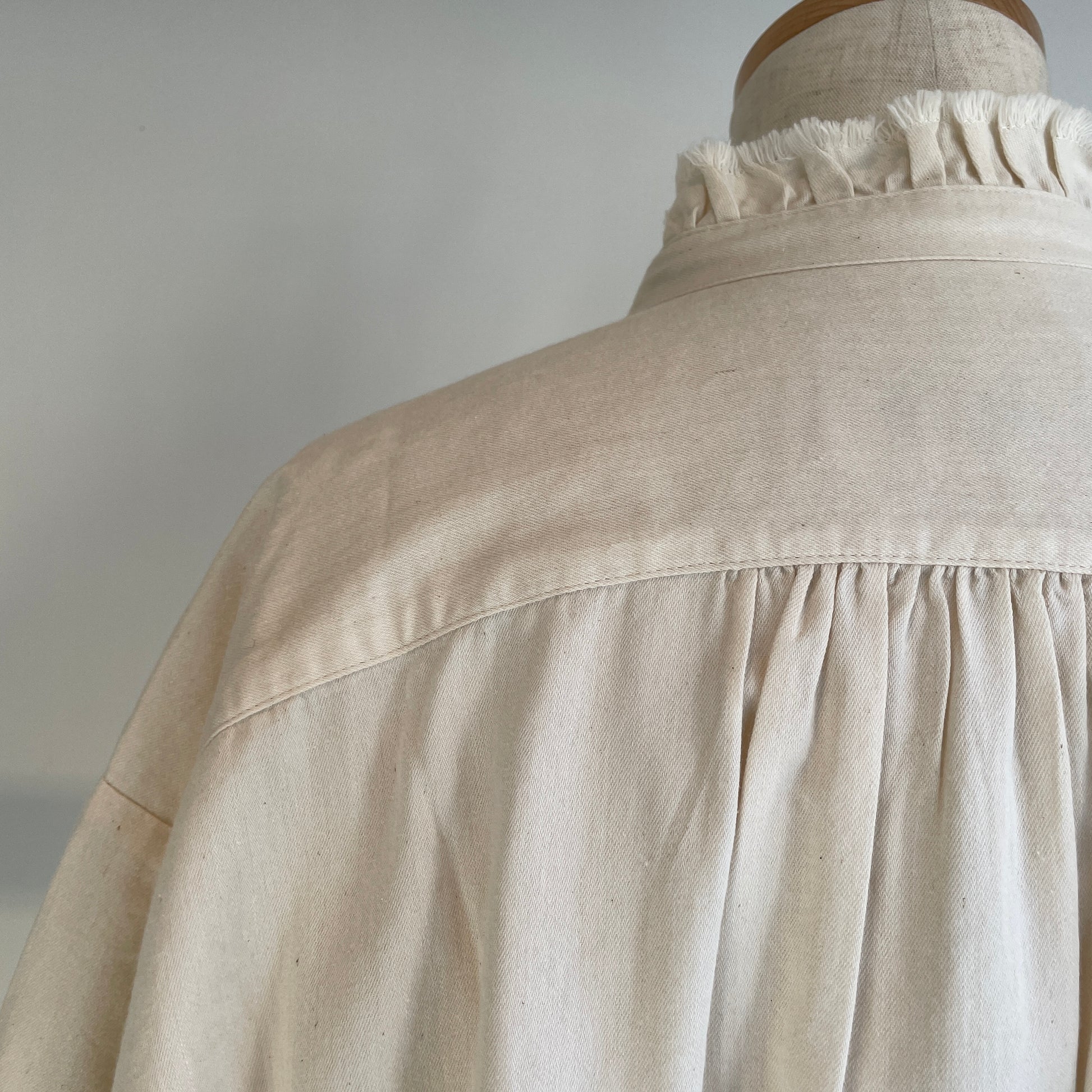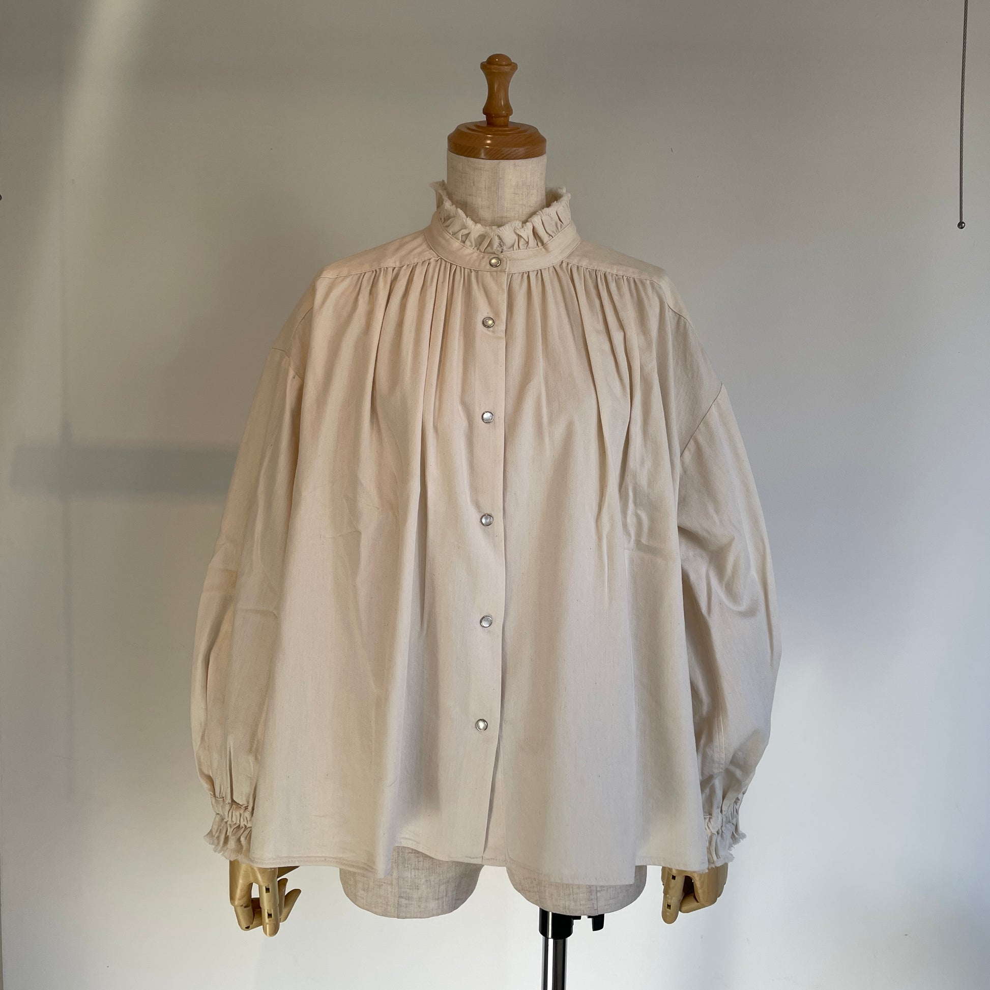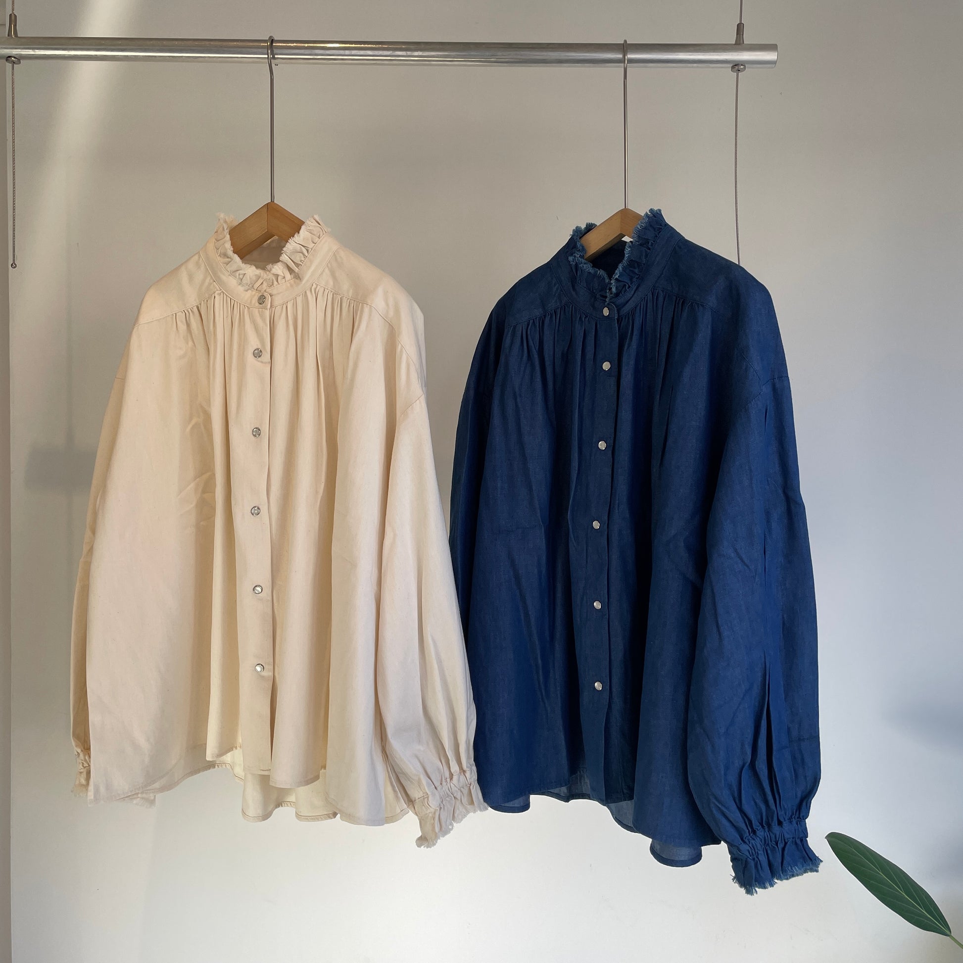 handsofcreation//5.0ZベンベルグウールデニムフリルカラーBL 02610602