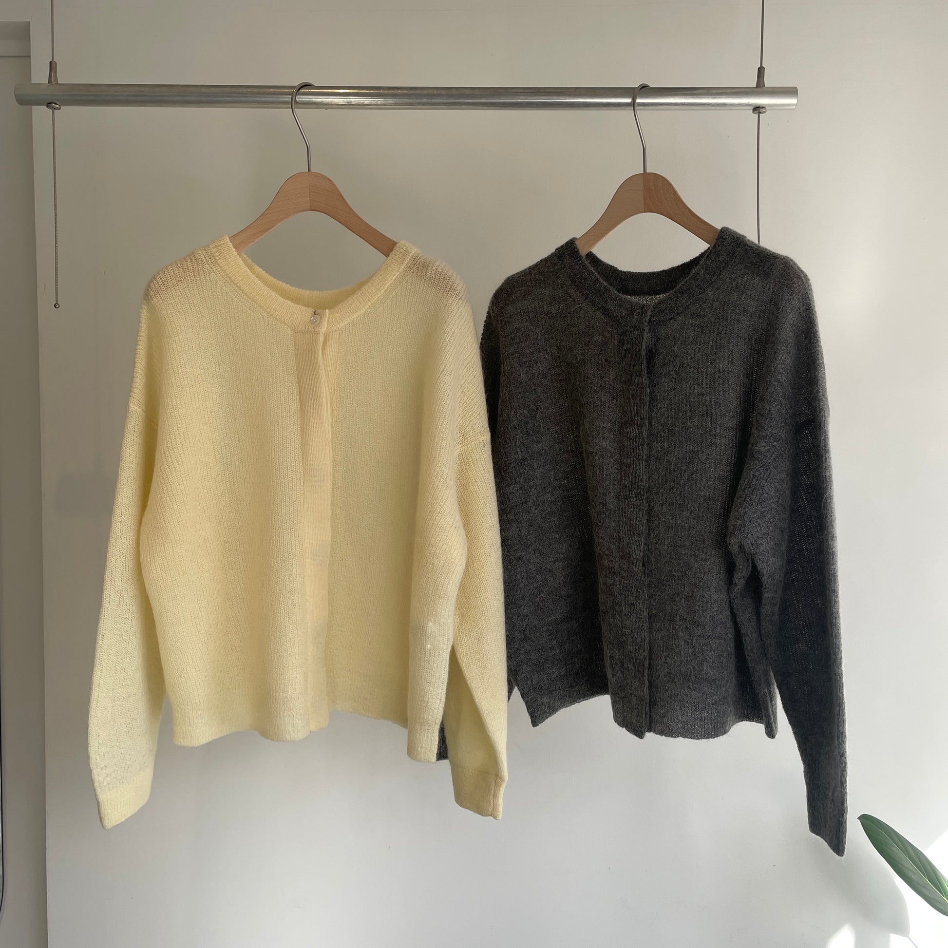handsofcreation//モヘヤウール9G片畦ボリュームスリーブ2wayカーディガン 1540722