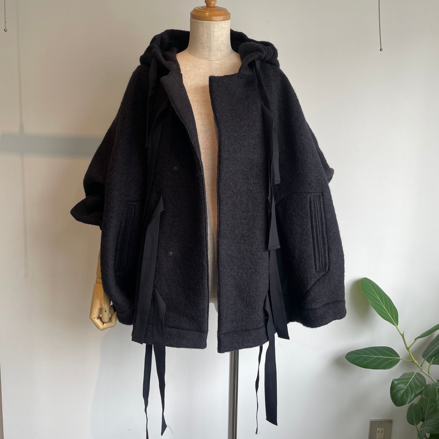 シルエットがとってもチャーミングなアウター。パンツにもスカートにも何にでも合わせやすく万能なアウターです。