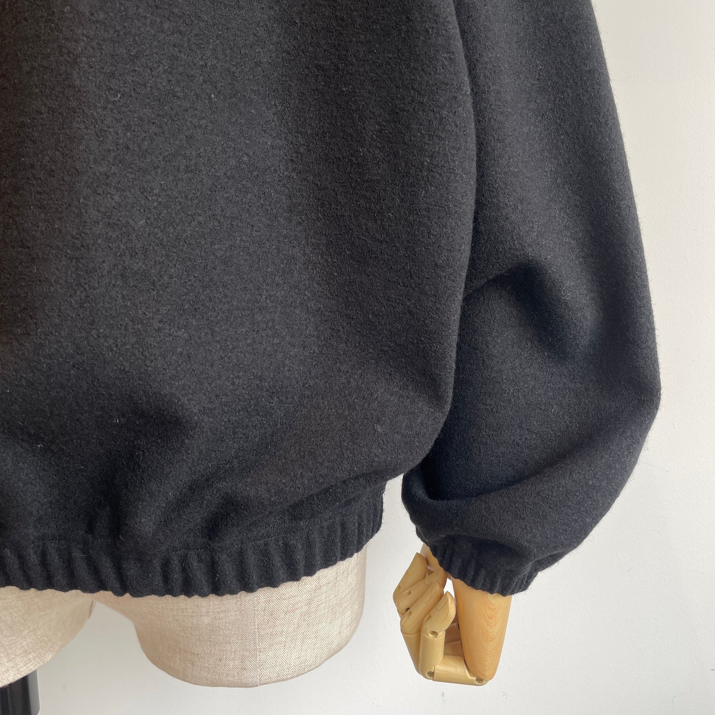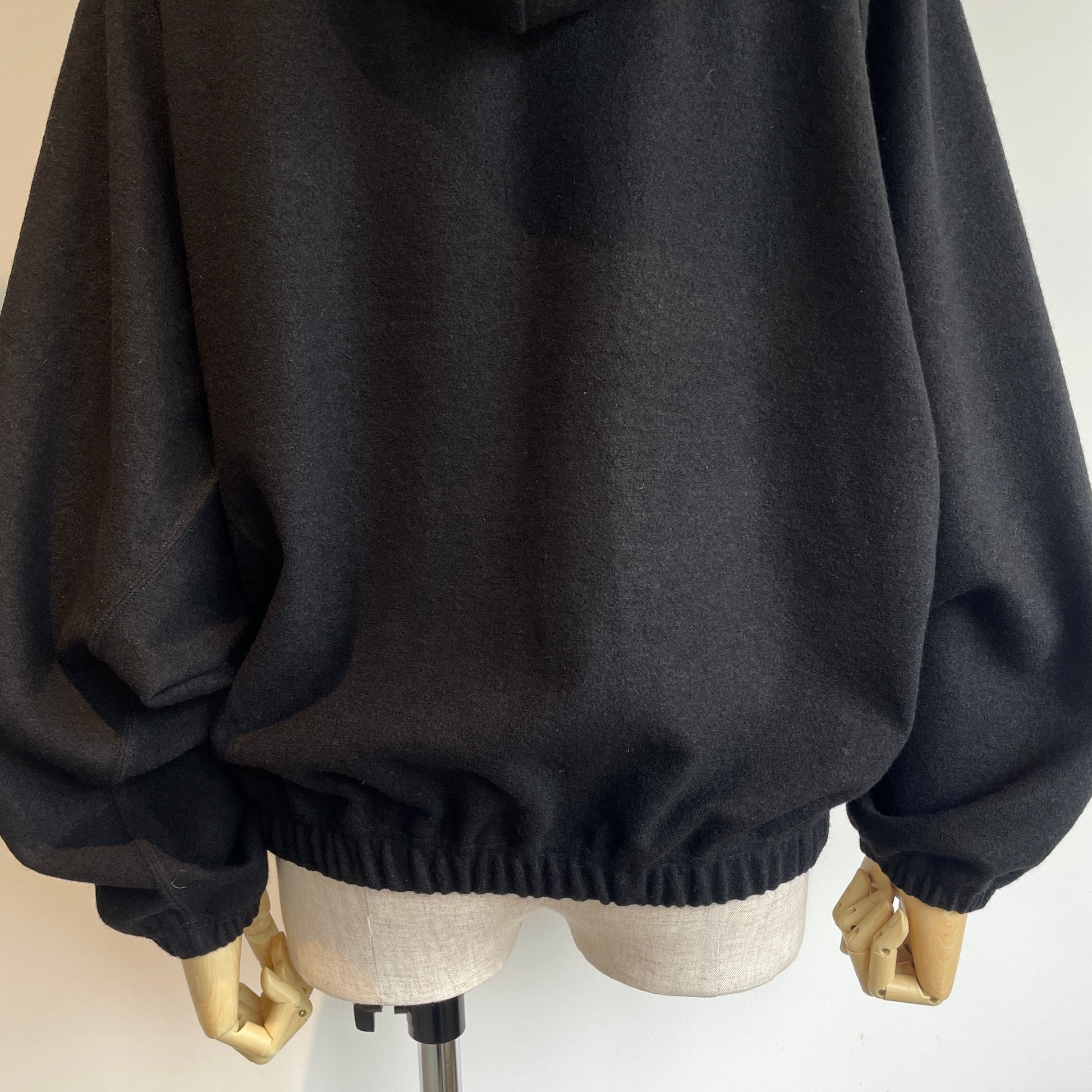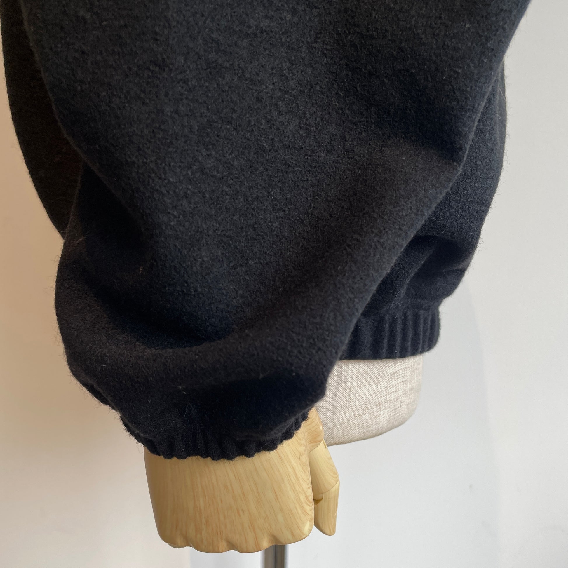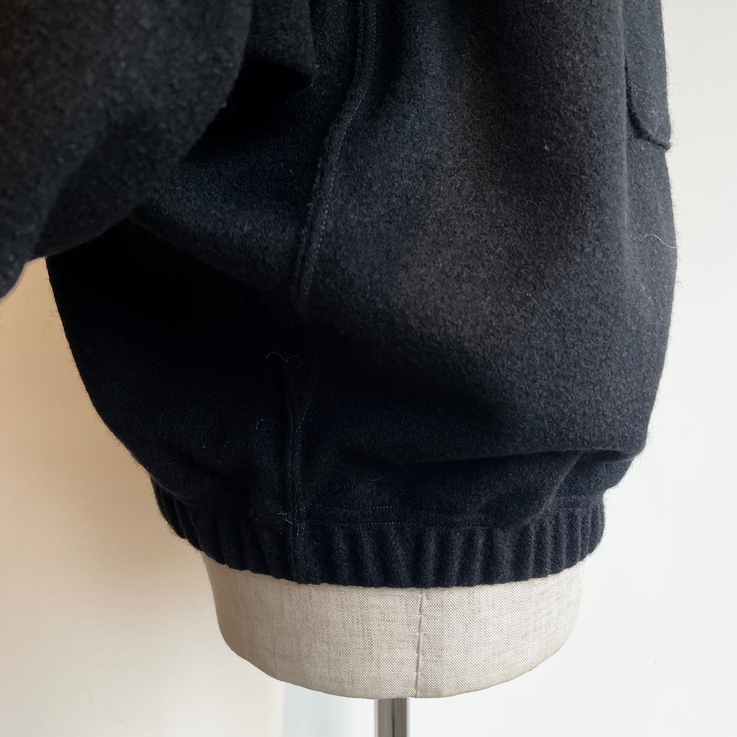 前身の大きなパッチ&フラップポケットと、ルーズフィットの身頃から袖下にかけての大きなマチのついたラグランスリーブが特徴です。