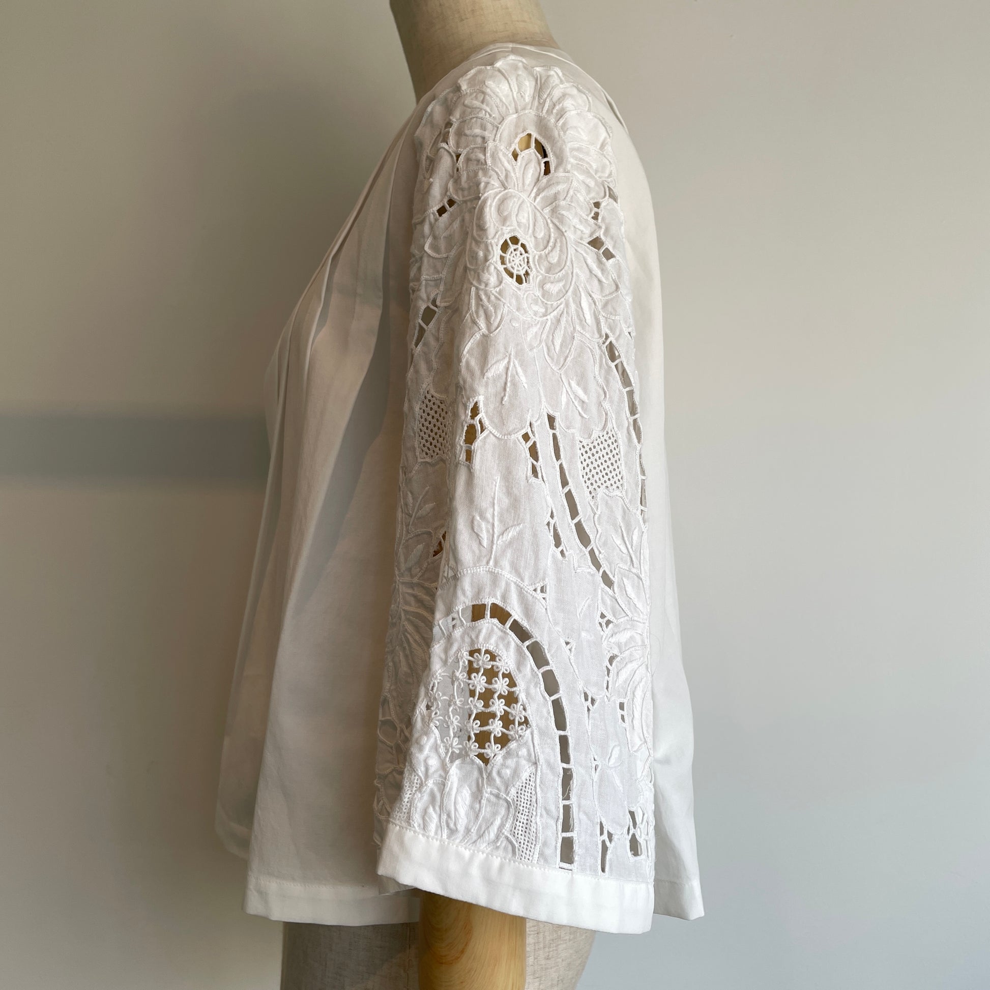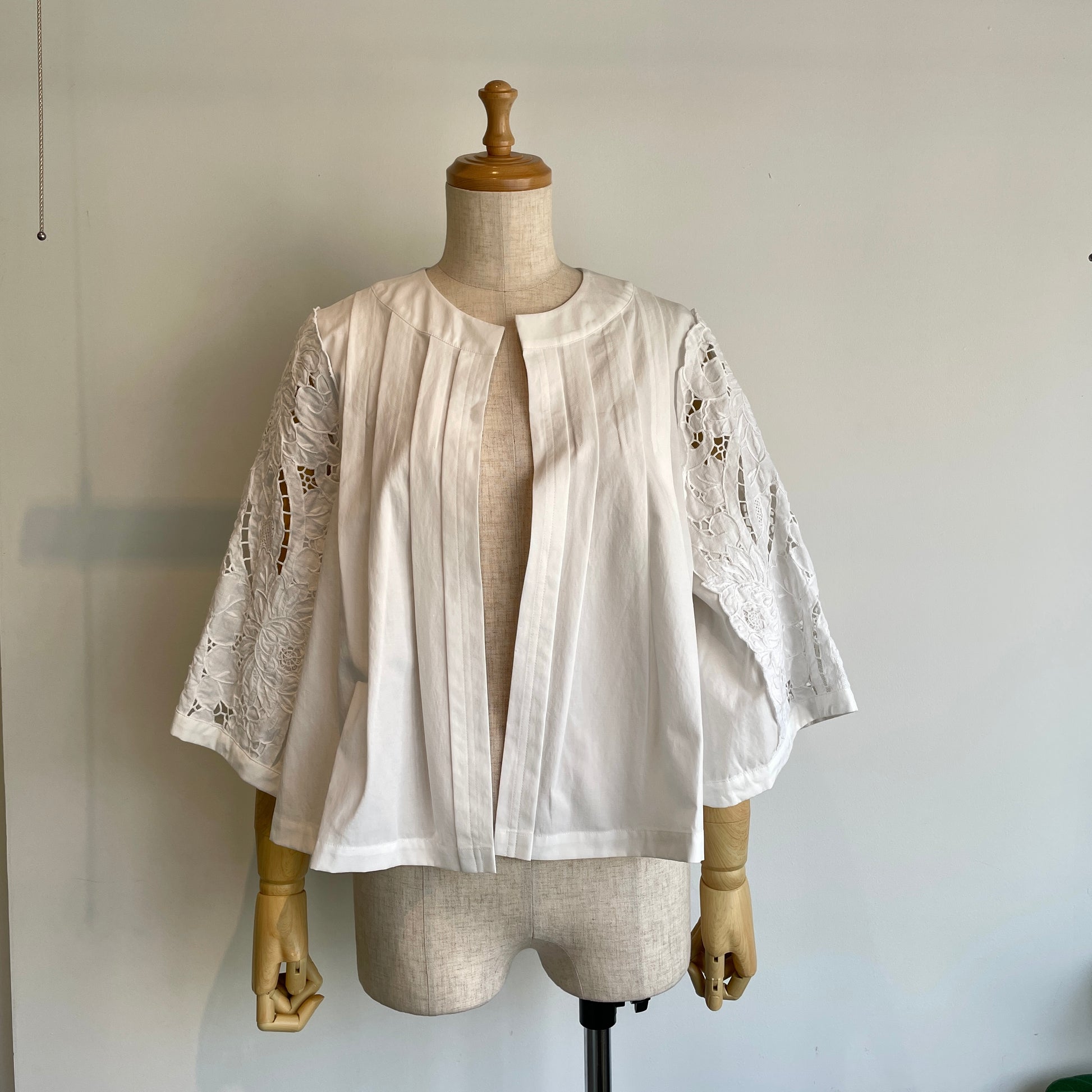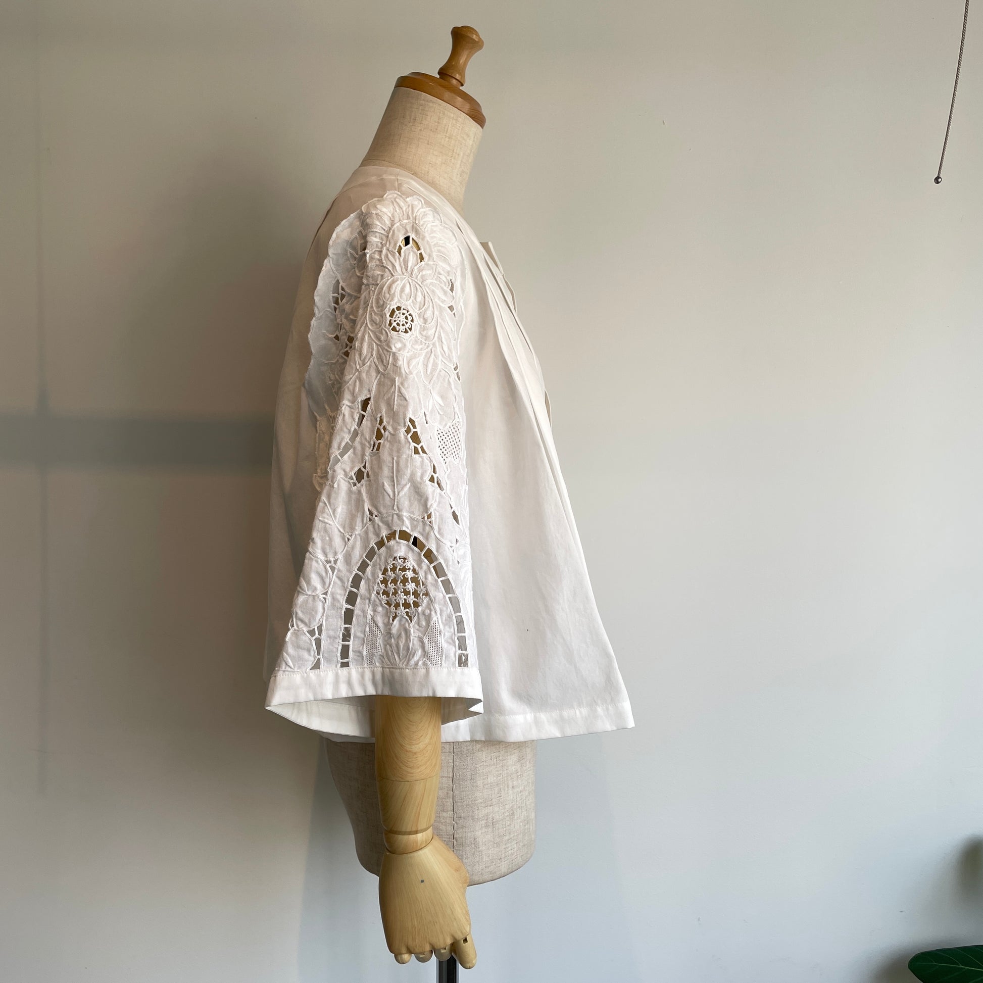 中国汕頭でヨーロッパ向けに作られていた、デットストックのカットワーク刺繍のパーツをリメイクしたショートジャケットです。