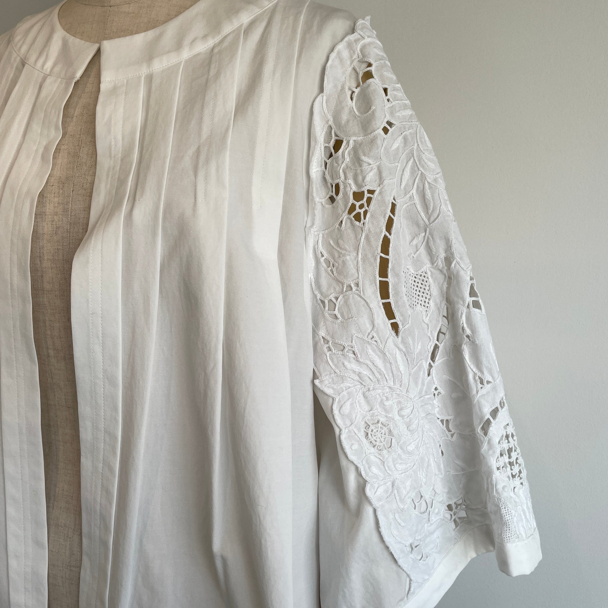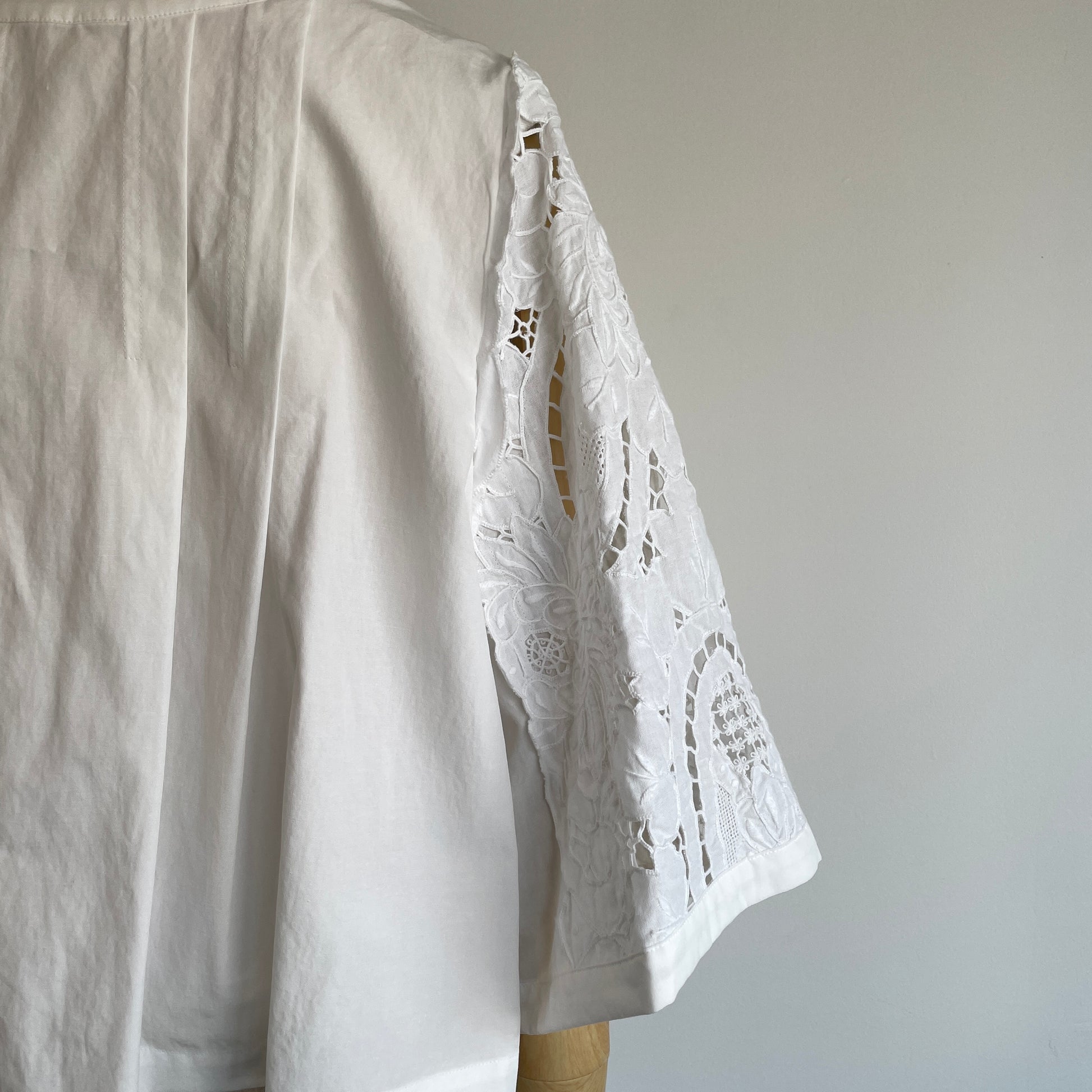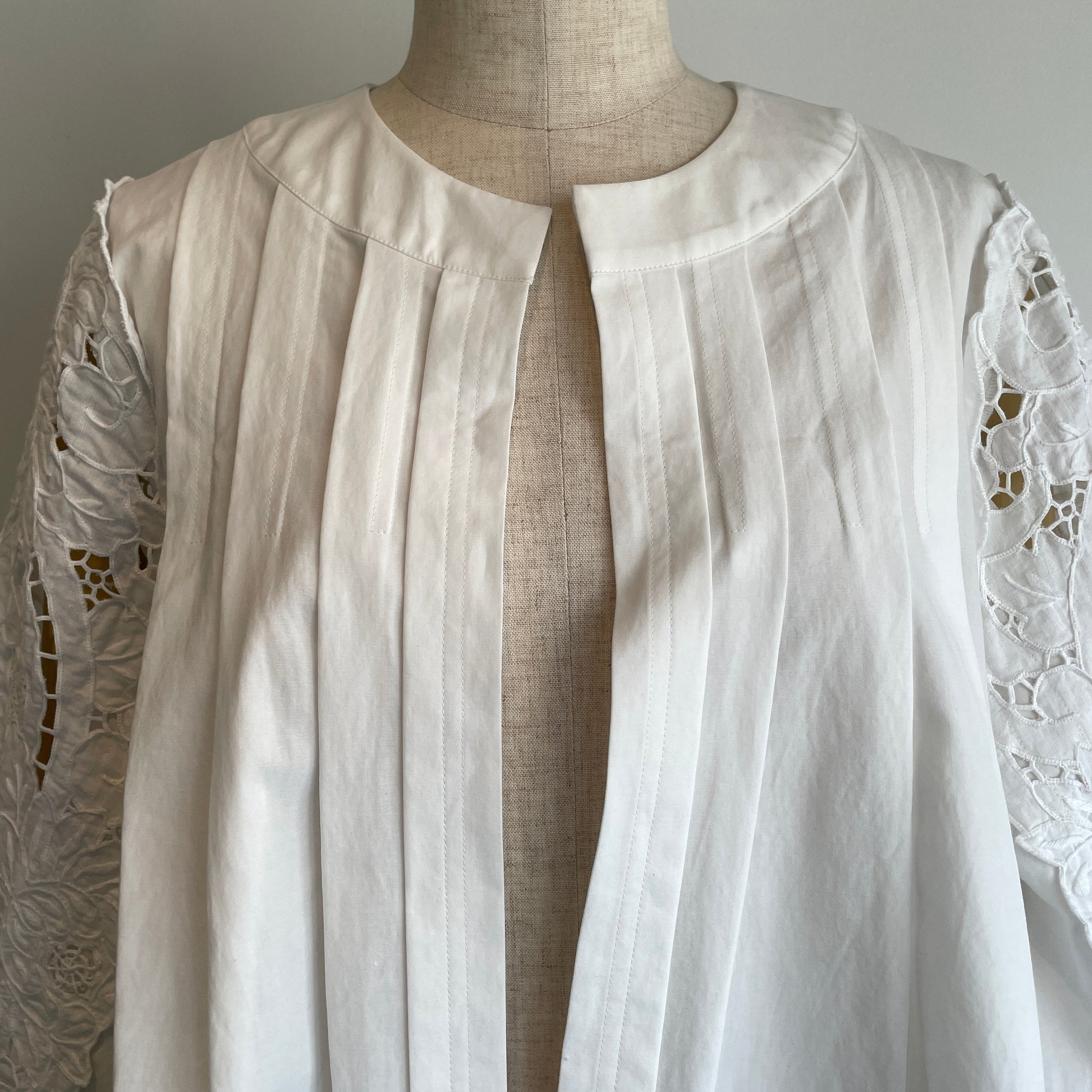 中国汕頭でヨーロッパ向けに作られていた、デットストックのカットワーク刺繍のパーツをリメイクしたショートジャケットです。