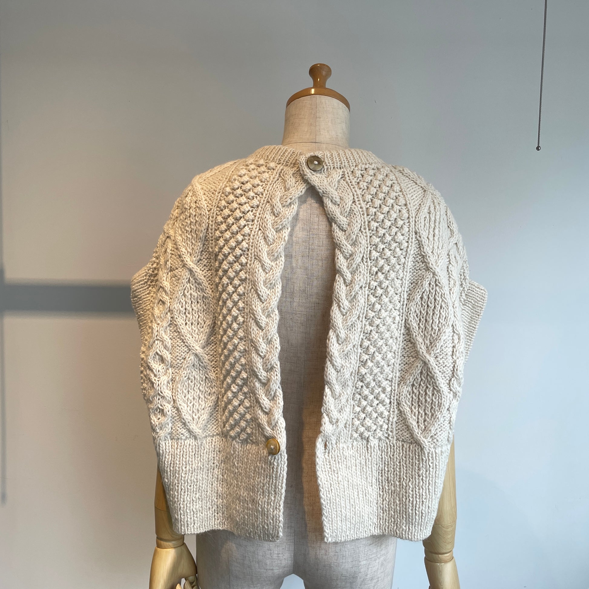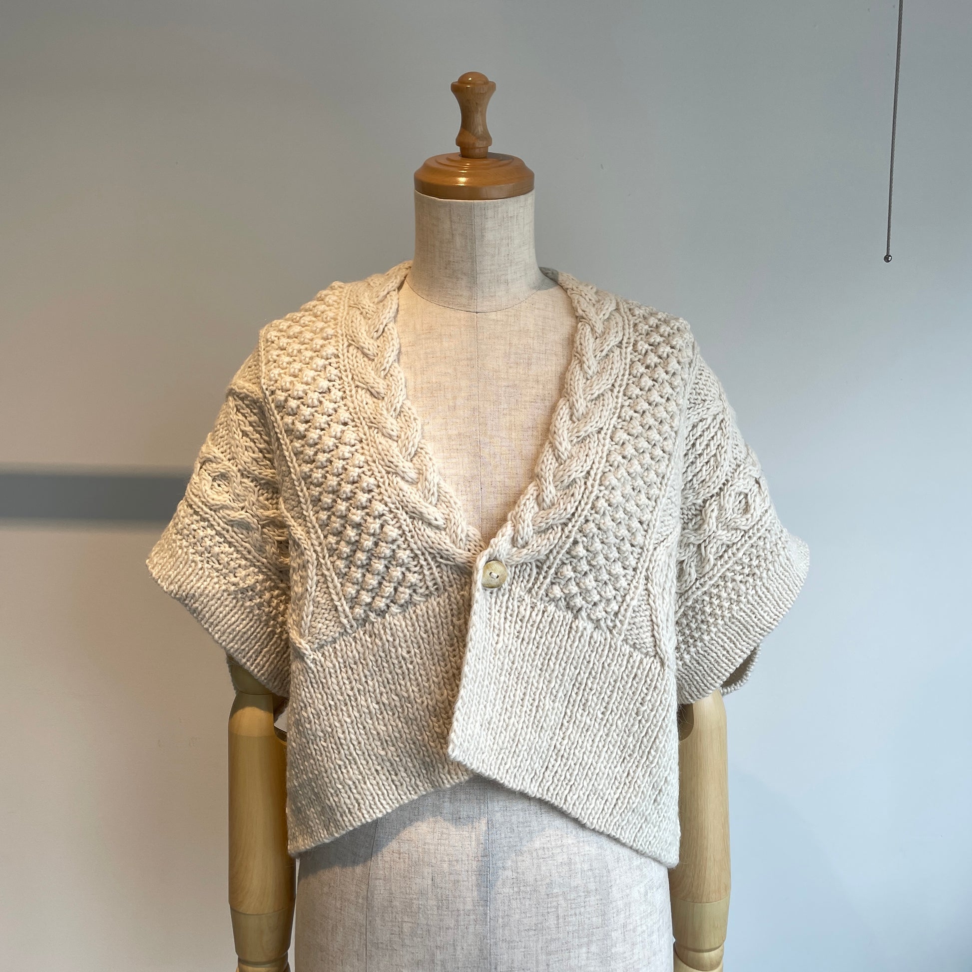 柔らかな肌触りの手紡ぎのアルパカ混糸を使用し、柔らかな肌触りの手紡ぎのアルパカ混糸を使用し、オリジナルのアラン柄で編み上げています。