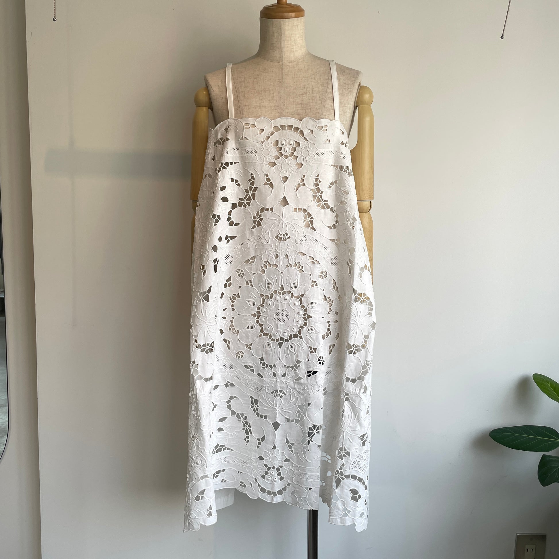 中国頭でヨーロッパ向けに作られていた、デットストックのカットワーク刺繍のテーブルクロスをリメイクしたキャミソールです。