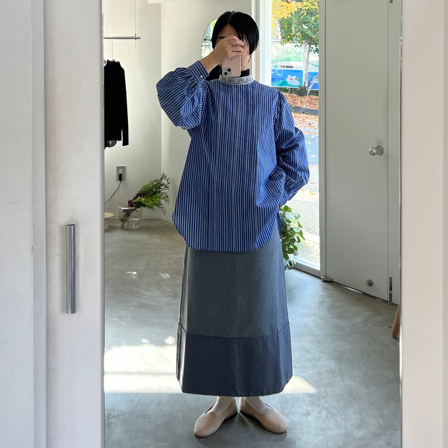 ヴィンテージのような風合いで、長年着用していただくと経年変化を楽しめる1着です。ロールアップした裾のデザインがポイントです。