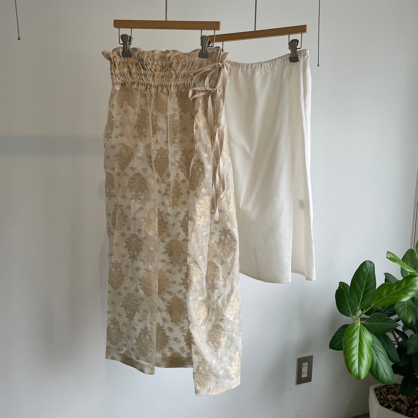 ウエストはぐるりゴムが入り、左脇のリボンで結ぶ仕様になっています。