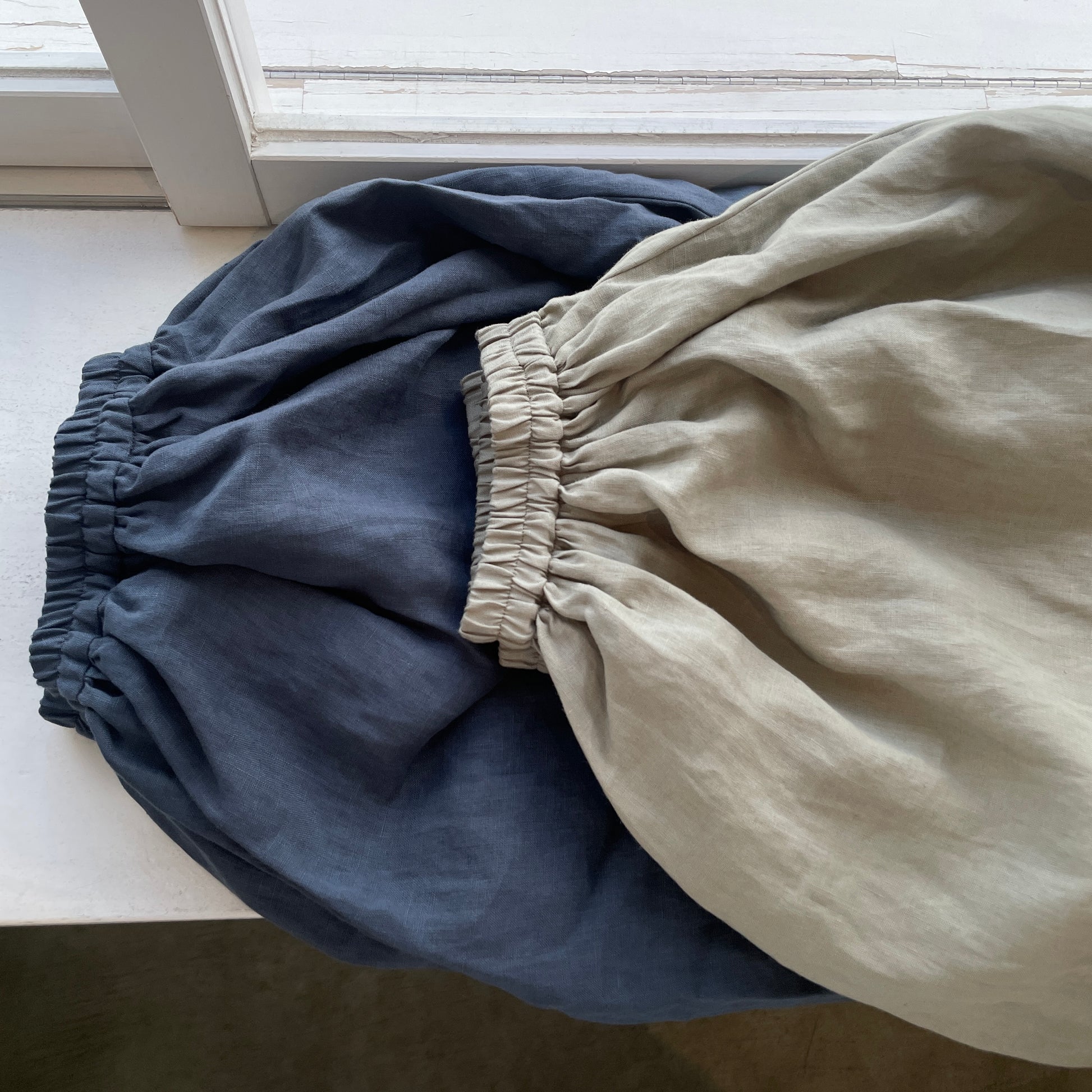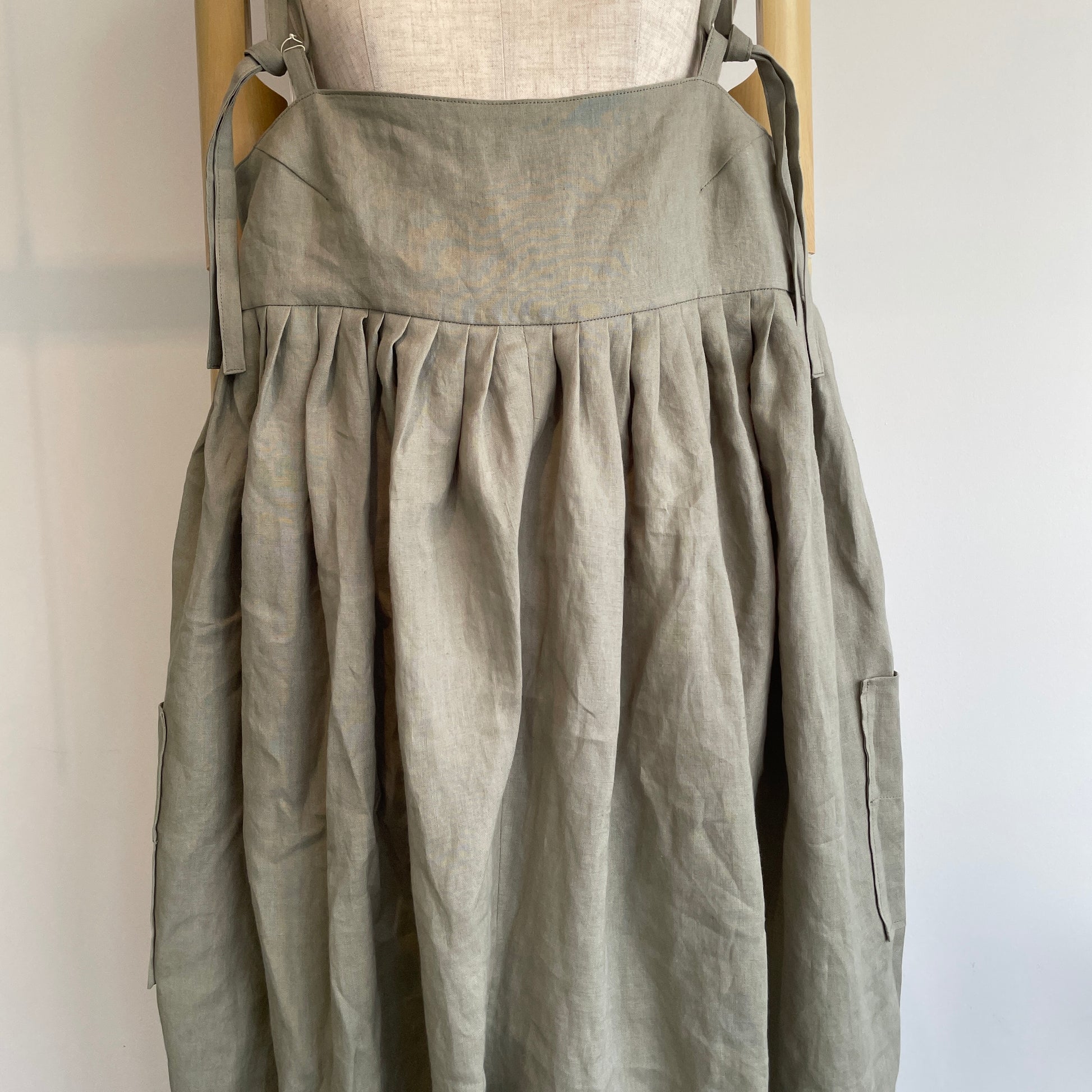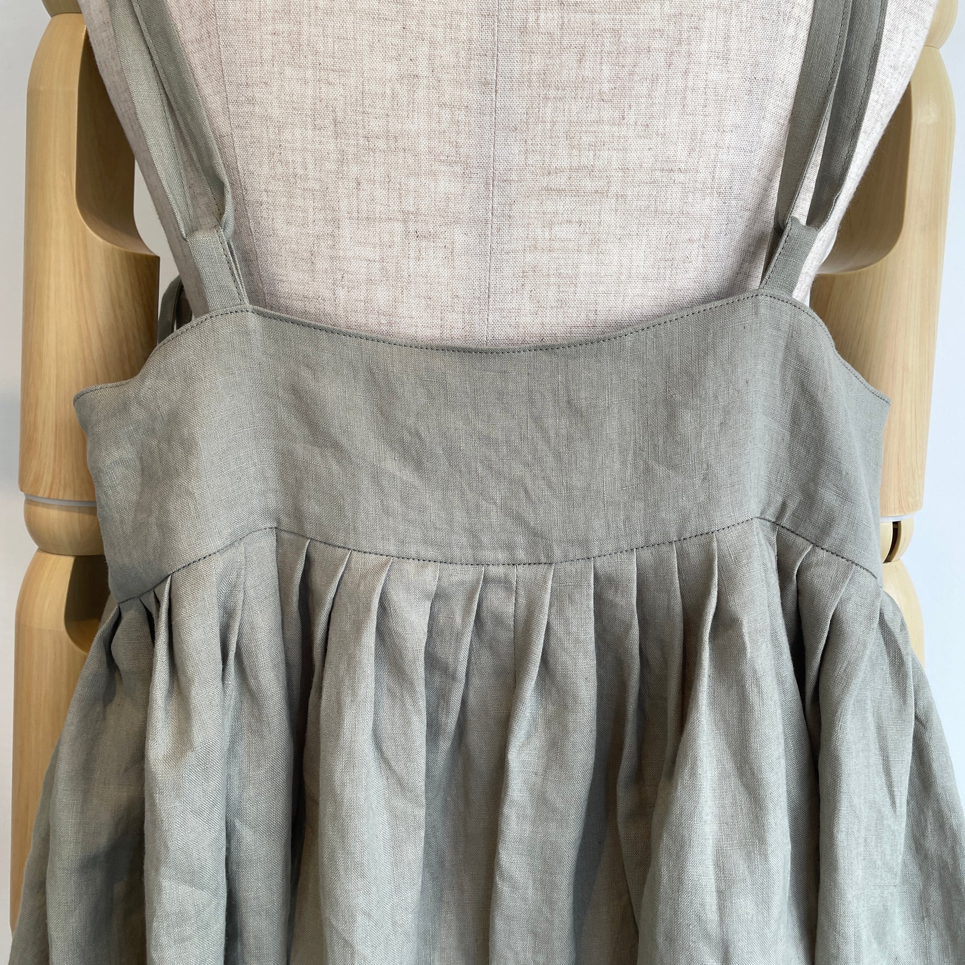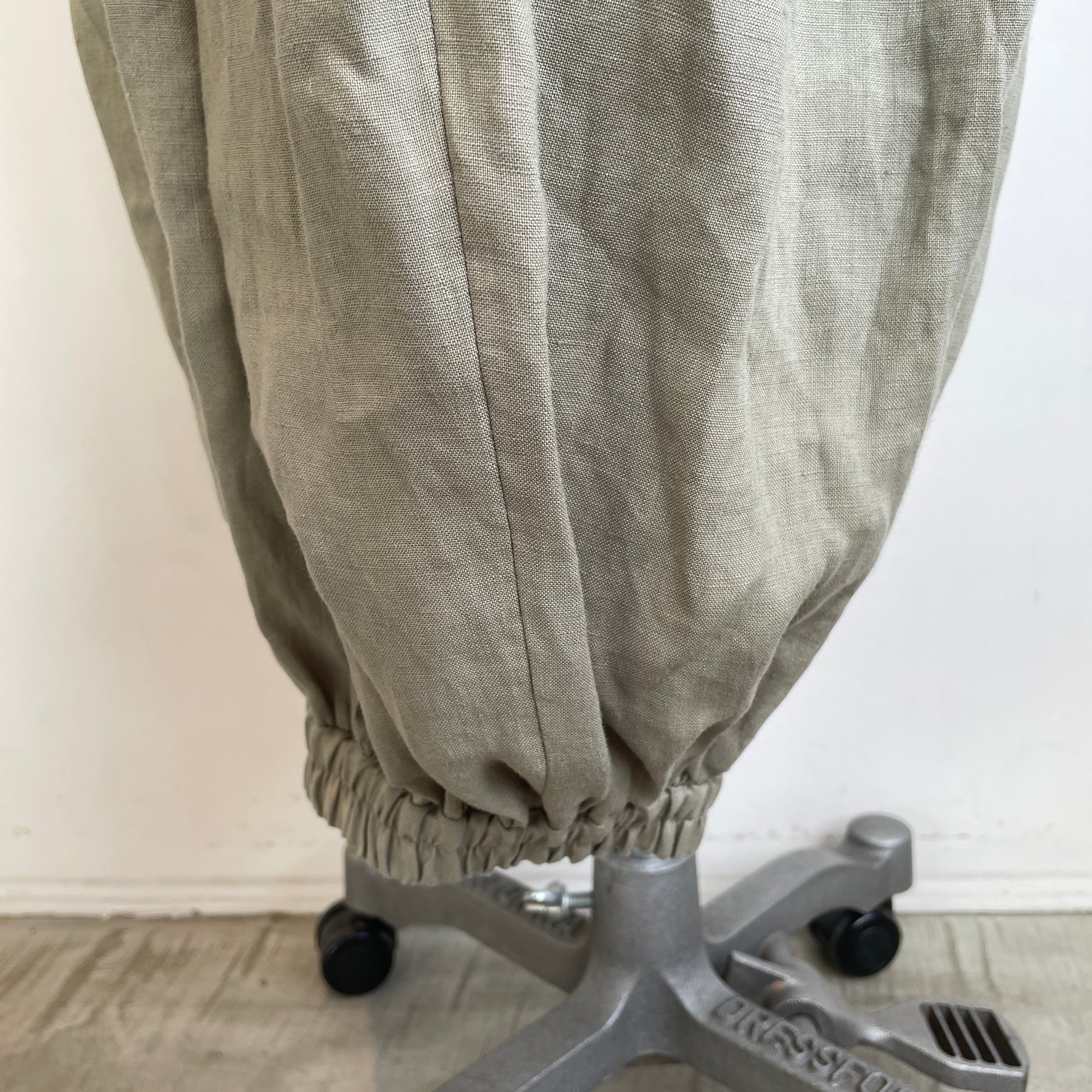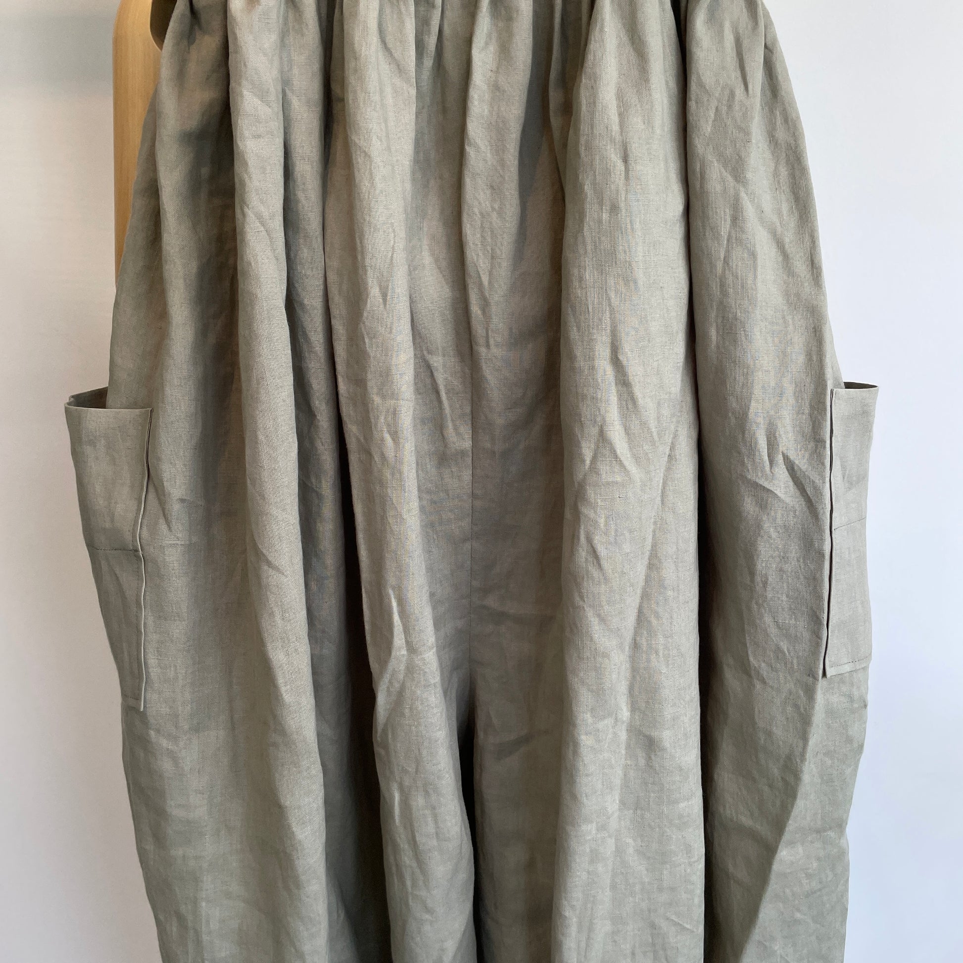タテ糸に細番手のフレンチリネンを使用し織り上げ、最後に叩き洗い加工を施してソフトな風合いに仕上げられた生地を使用しています。