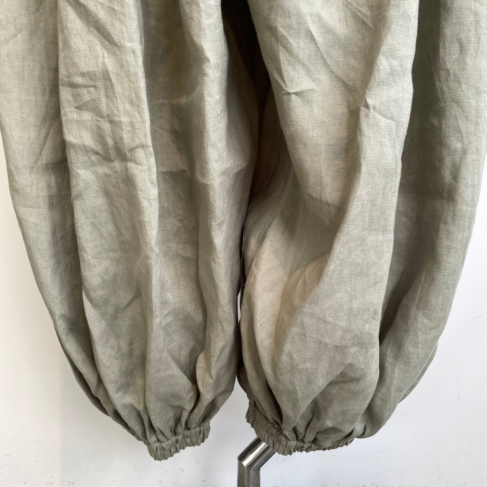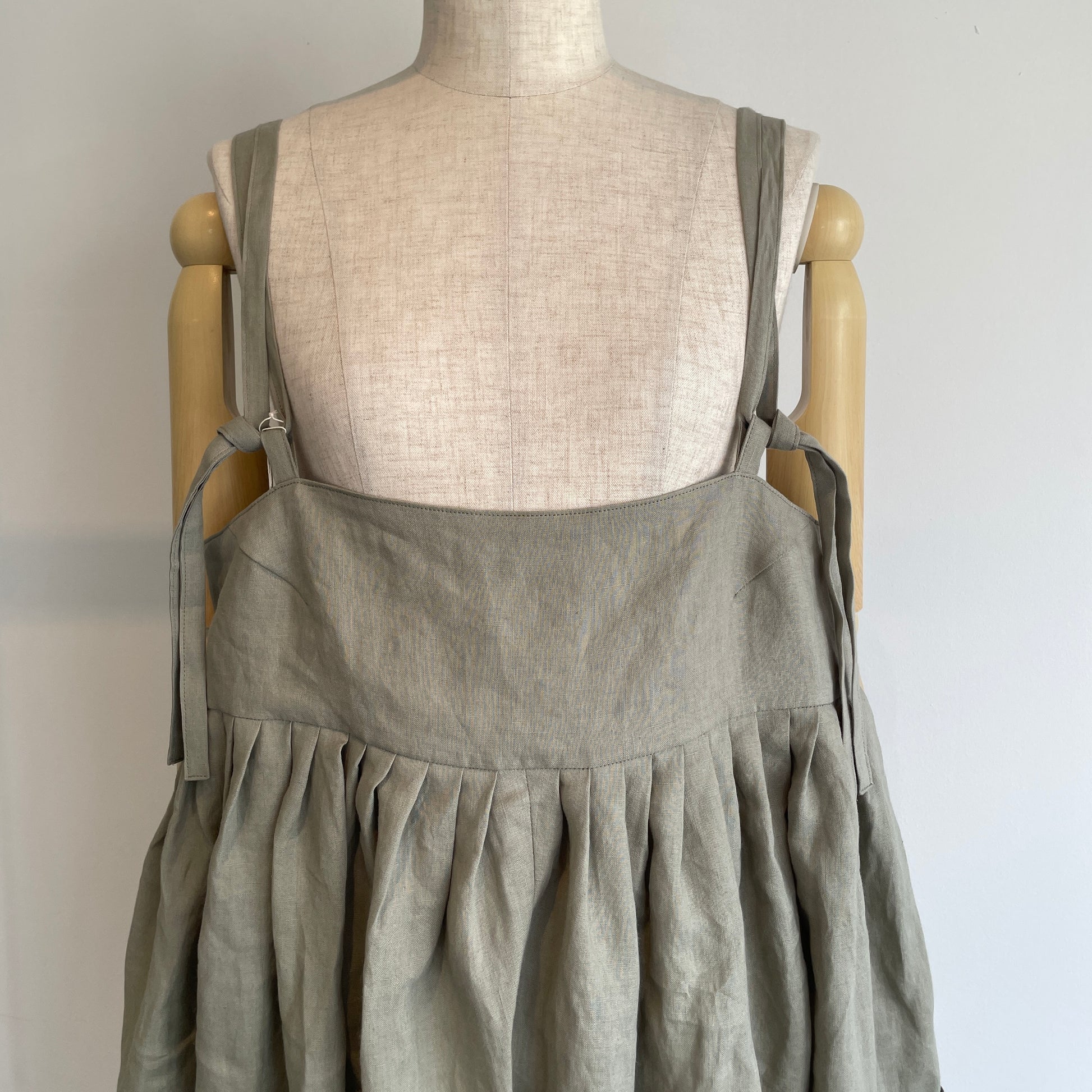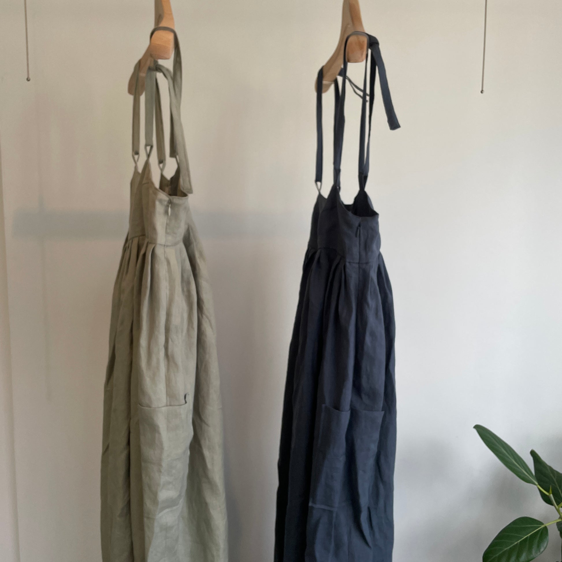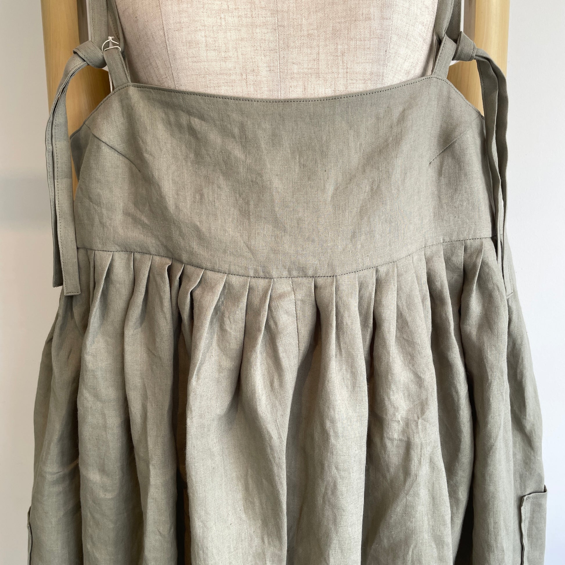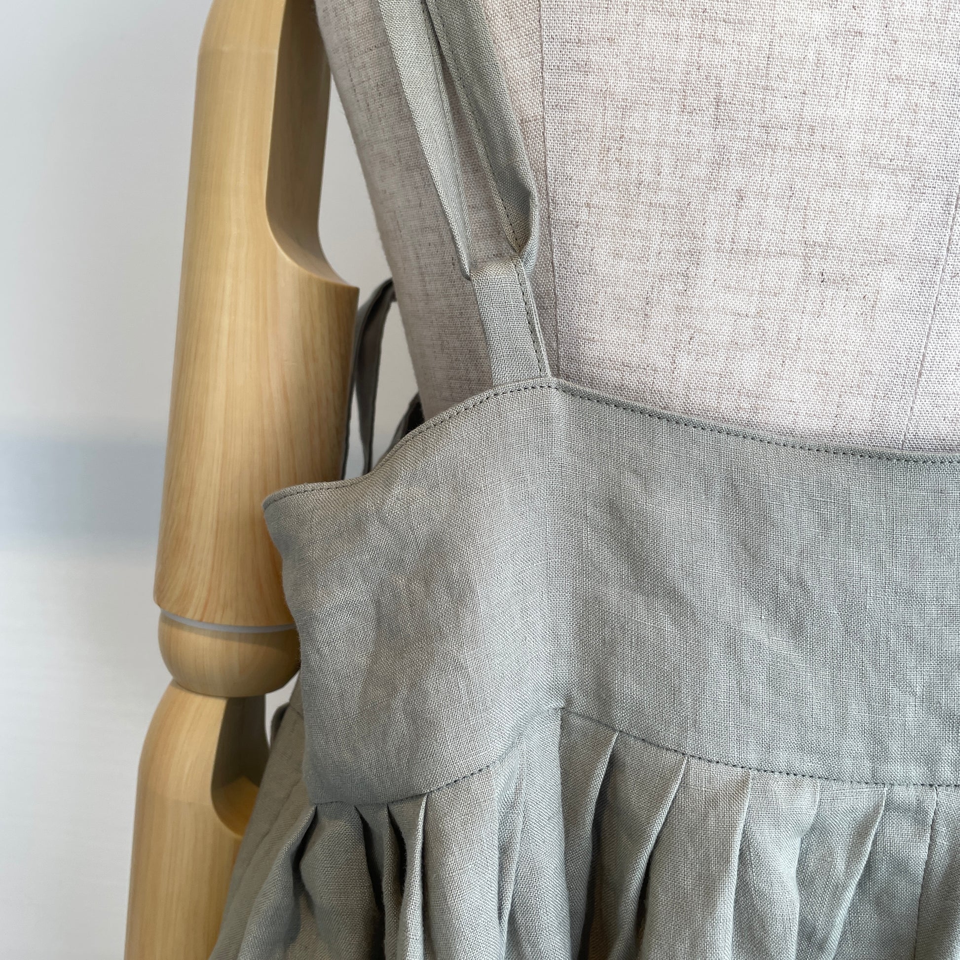 タテ糸に細番手のフレンチリネンを使用し織り上げ、最後に叩き洗い加工を施してソフトな風合いに仕上げられた生地を使用しています。