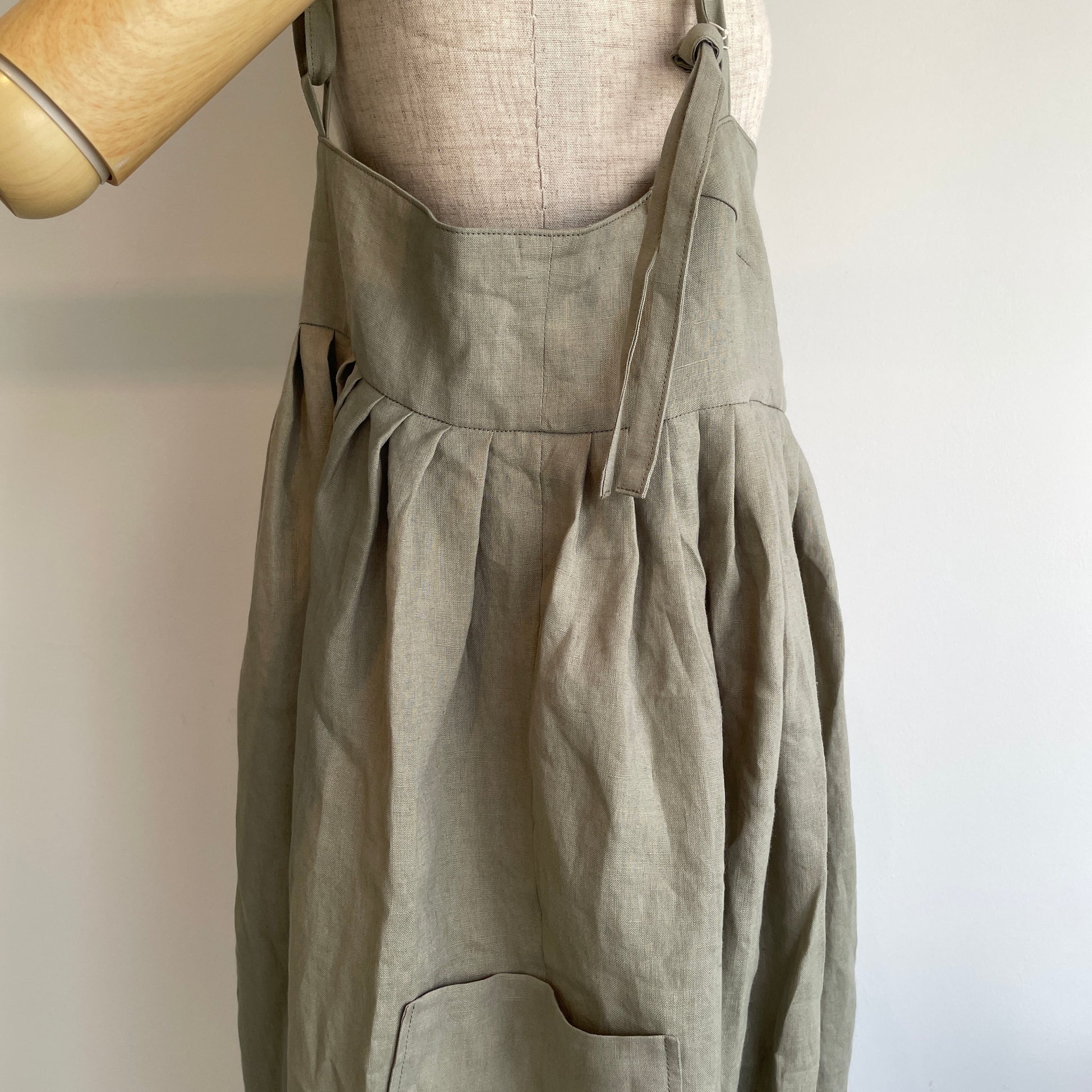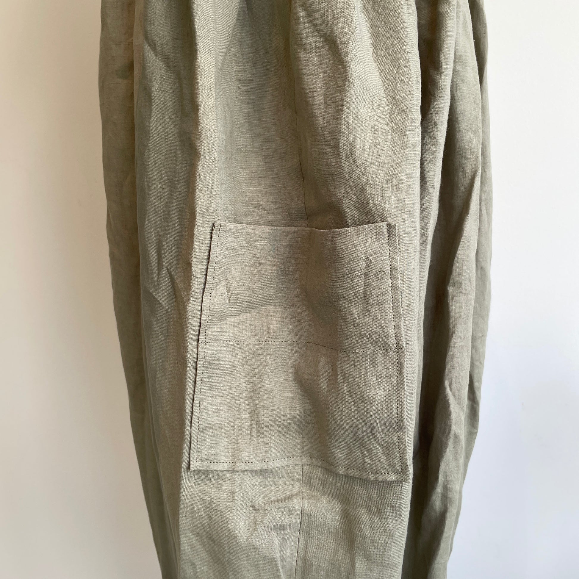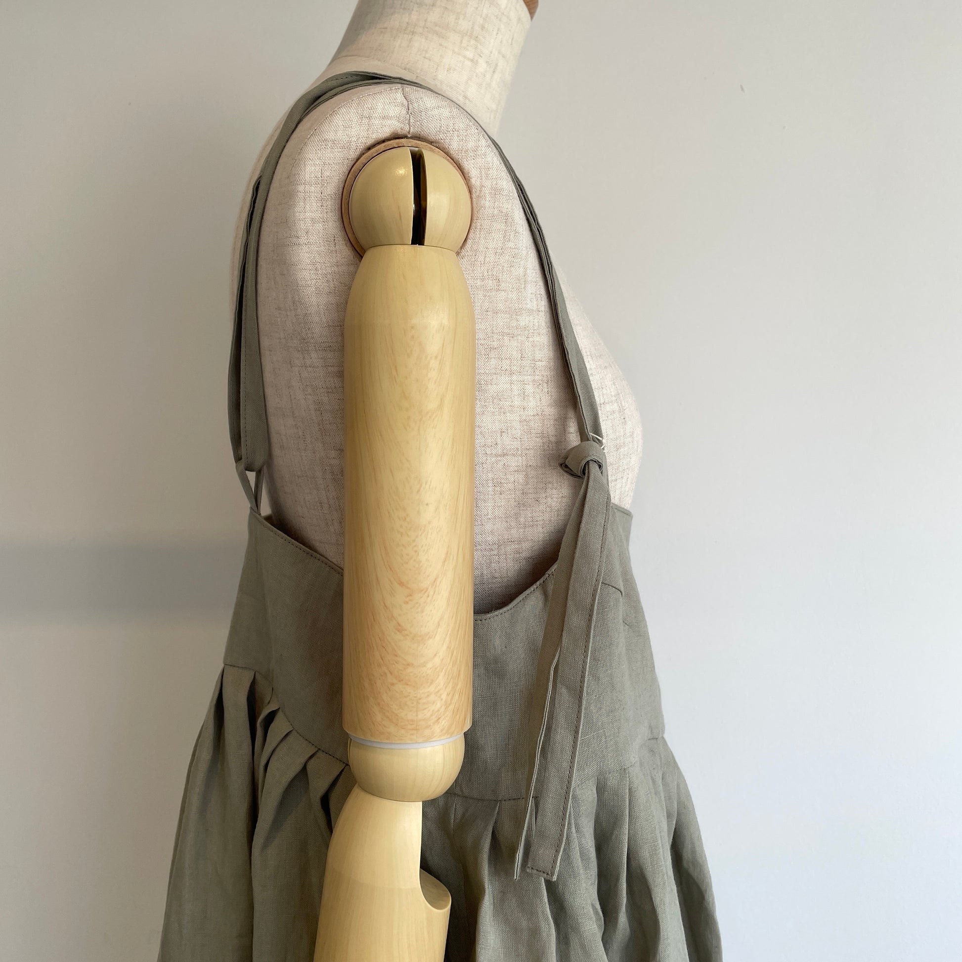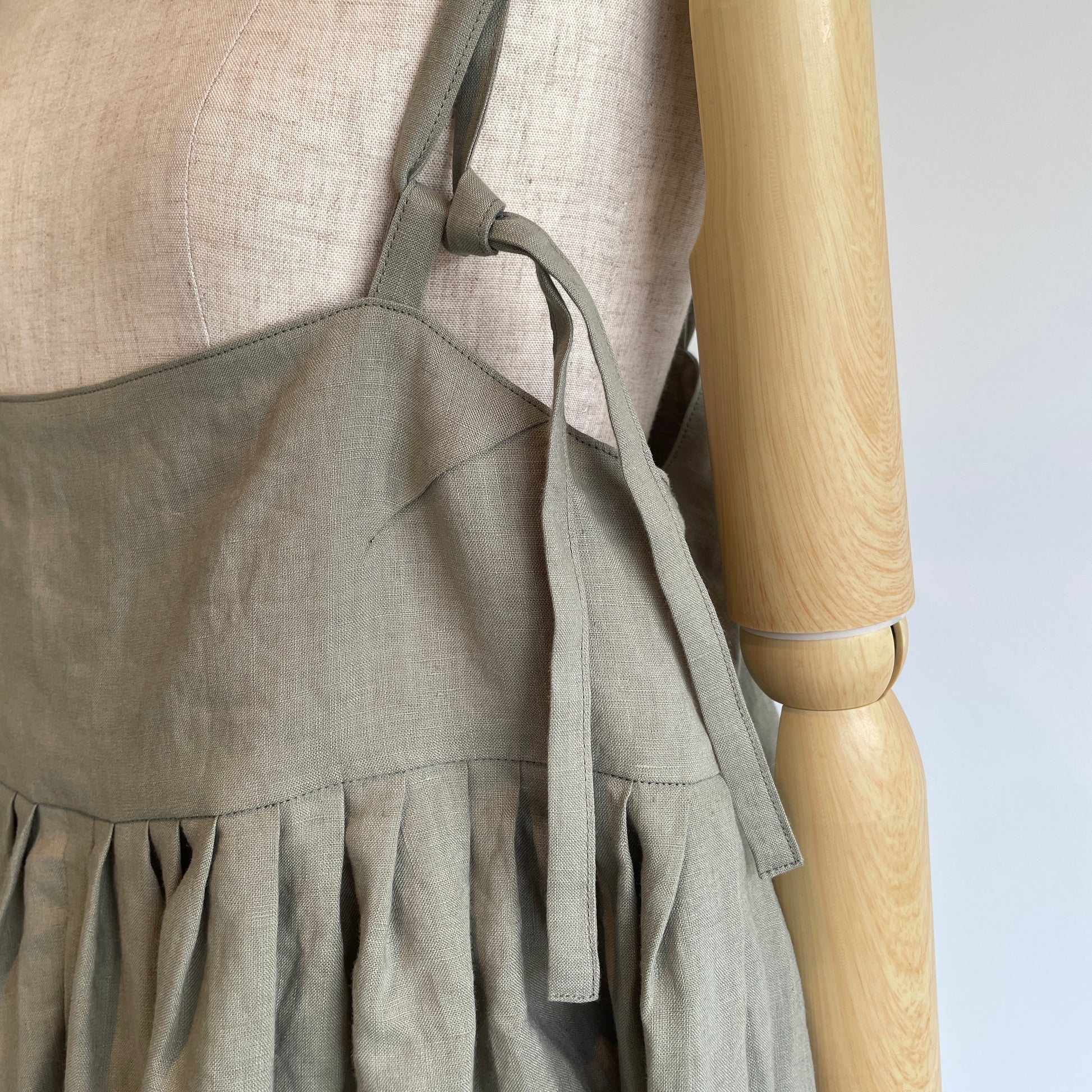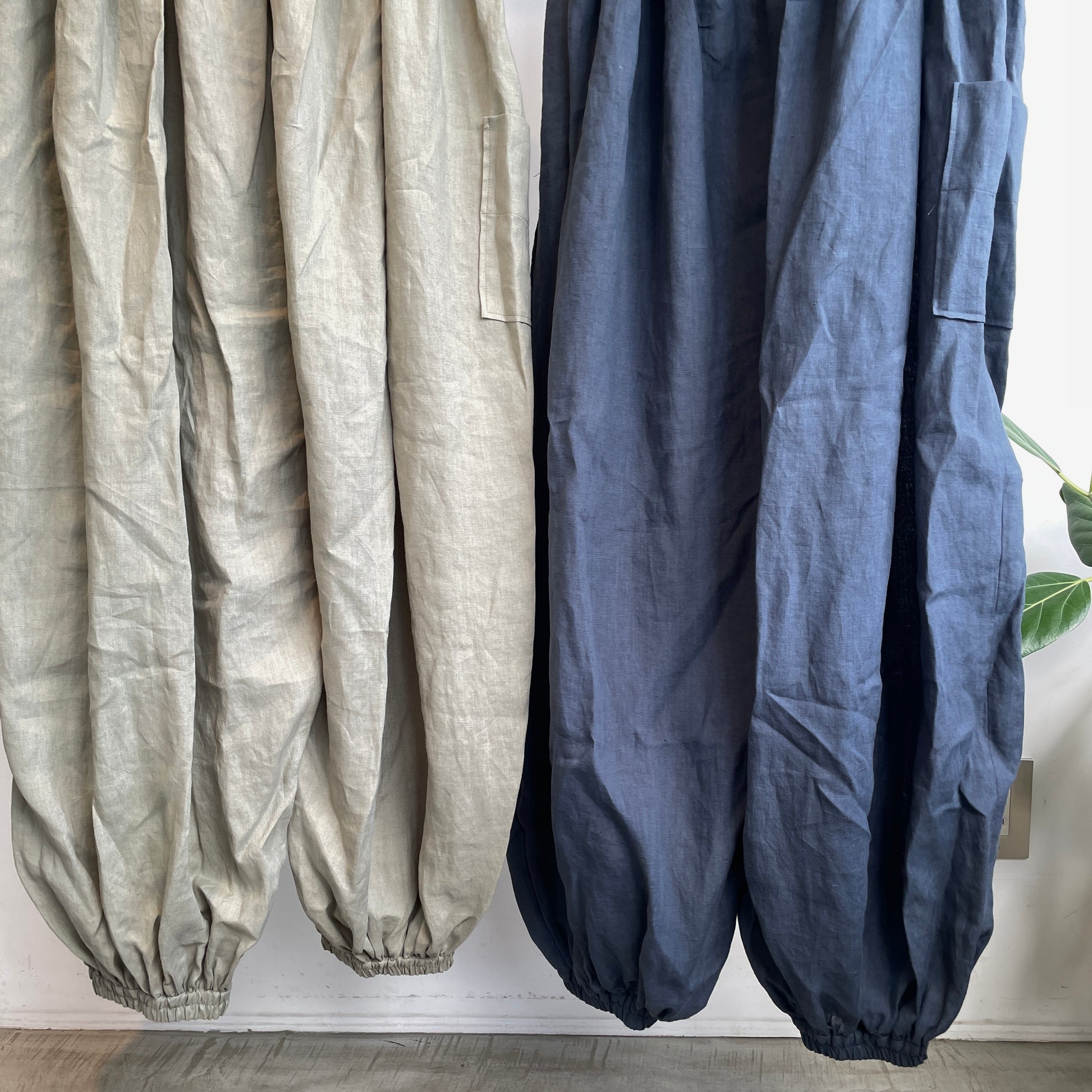タテ糸に細番手のフレンチリネンを使用し織り上げ、最後に叩き洗い加工を施してソフトな風合いに仕上げられた生地を使用しています。
