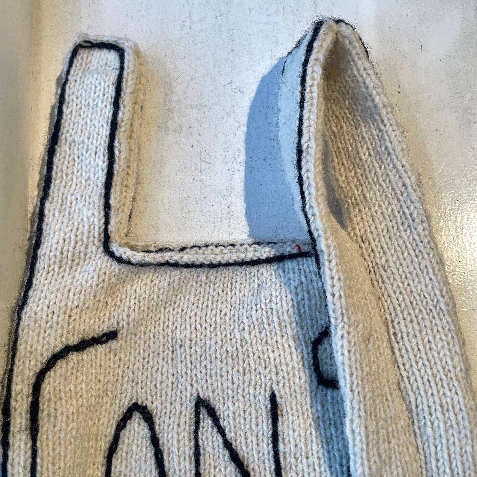 ☆ニット生地の為、伸び補強に持ち手内側がとめてあり、入れ口は少し狭くなります。