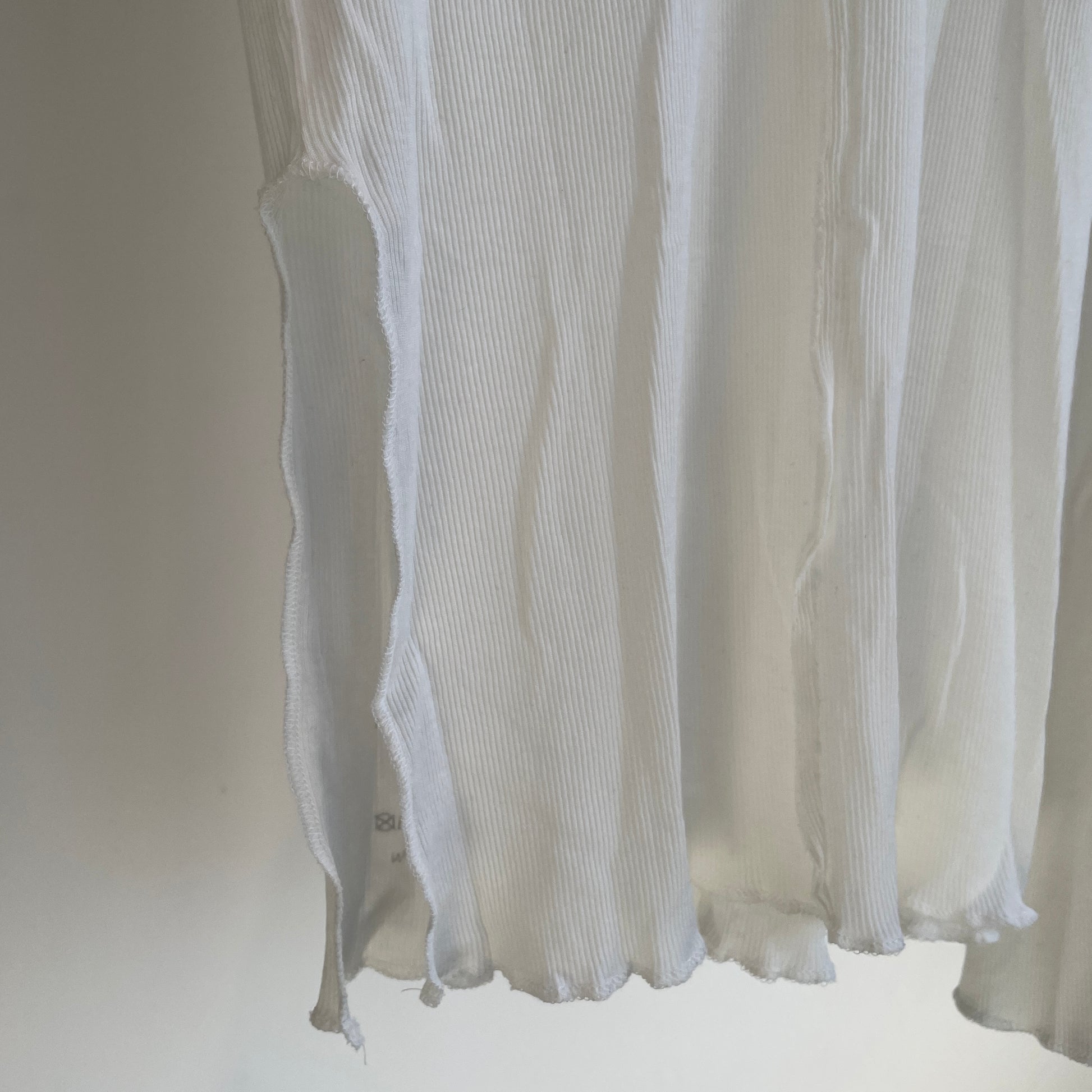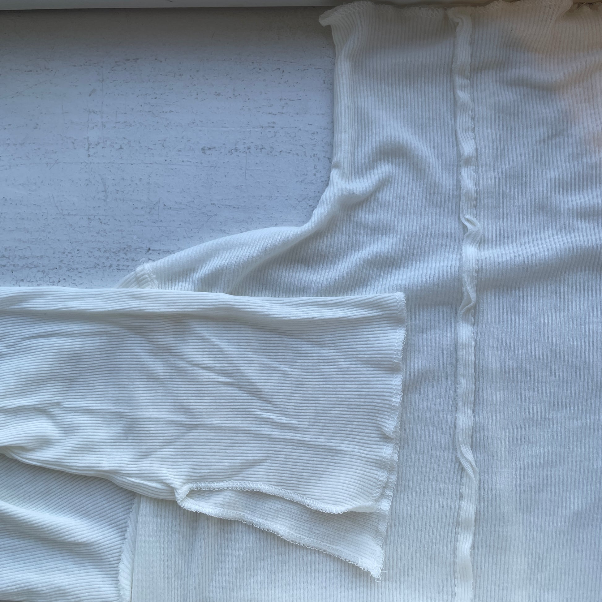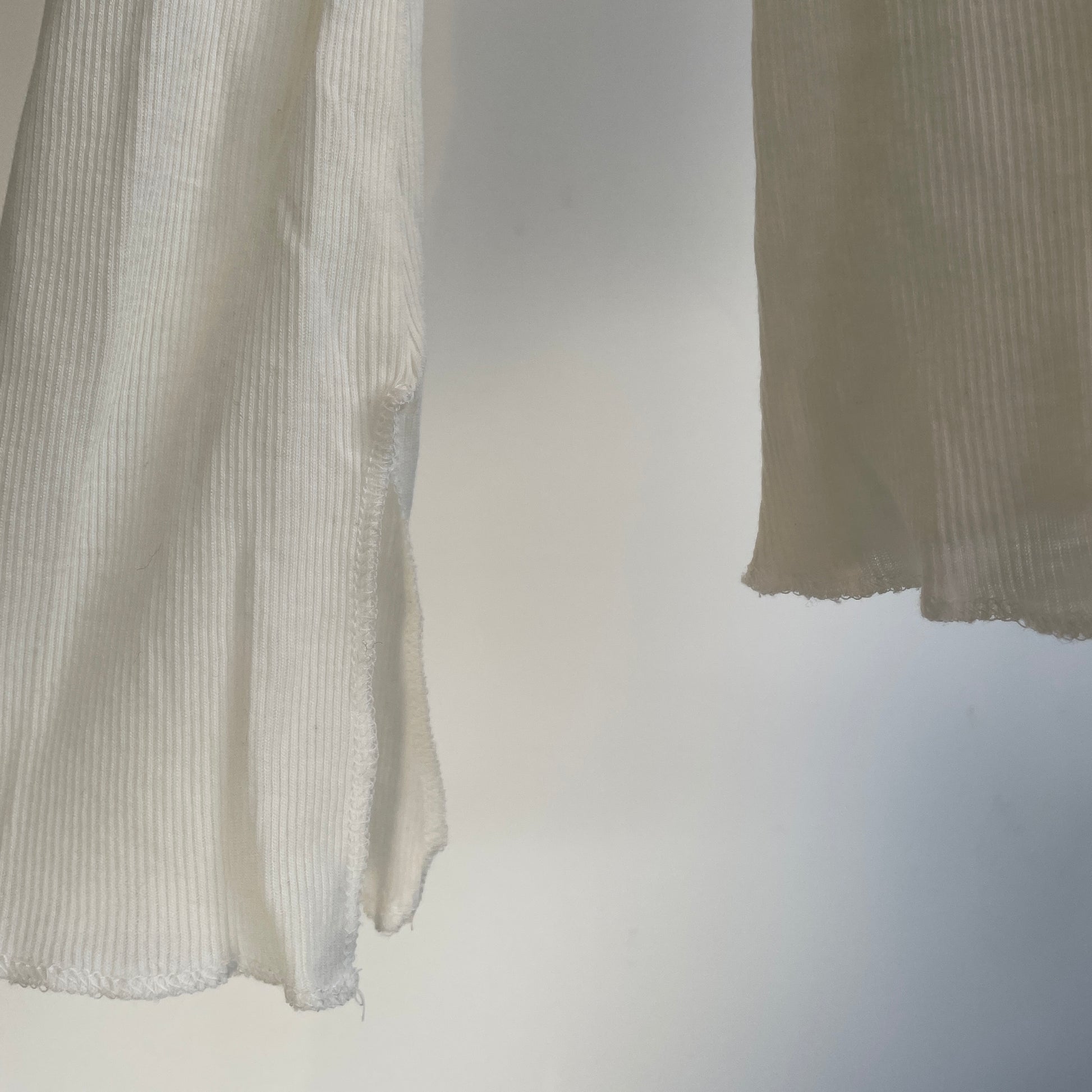 キャミワンピースやベストの下に重ねても軽やか。 1枚で着ても、素材感とフォルムで抜け感のあるスタイリングに。 シーズンレスに活躍する、ベーシックで特別な一着。