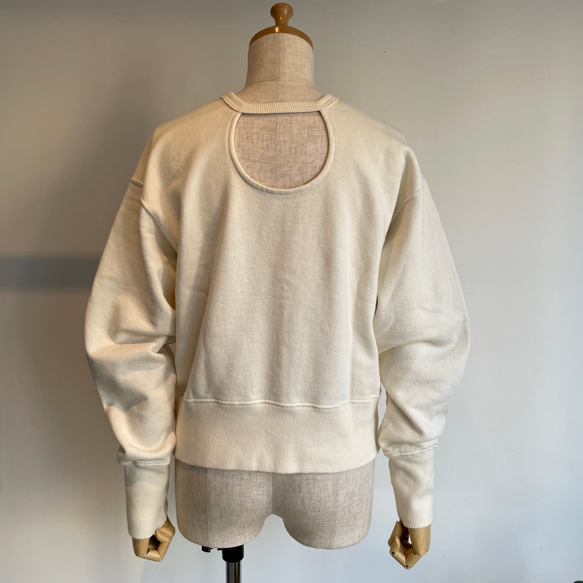 カジュアルでいて上品。着る人の雰囲気をやさしく引き立てるスウェット。そんな、MAMらしさのあるトップスです。