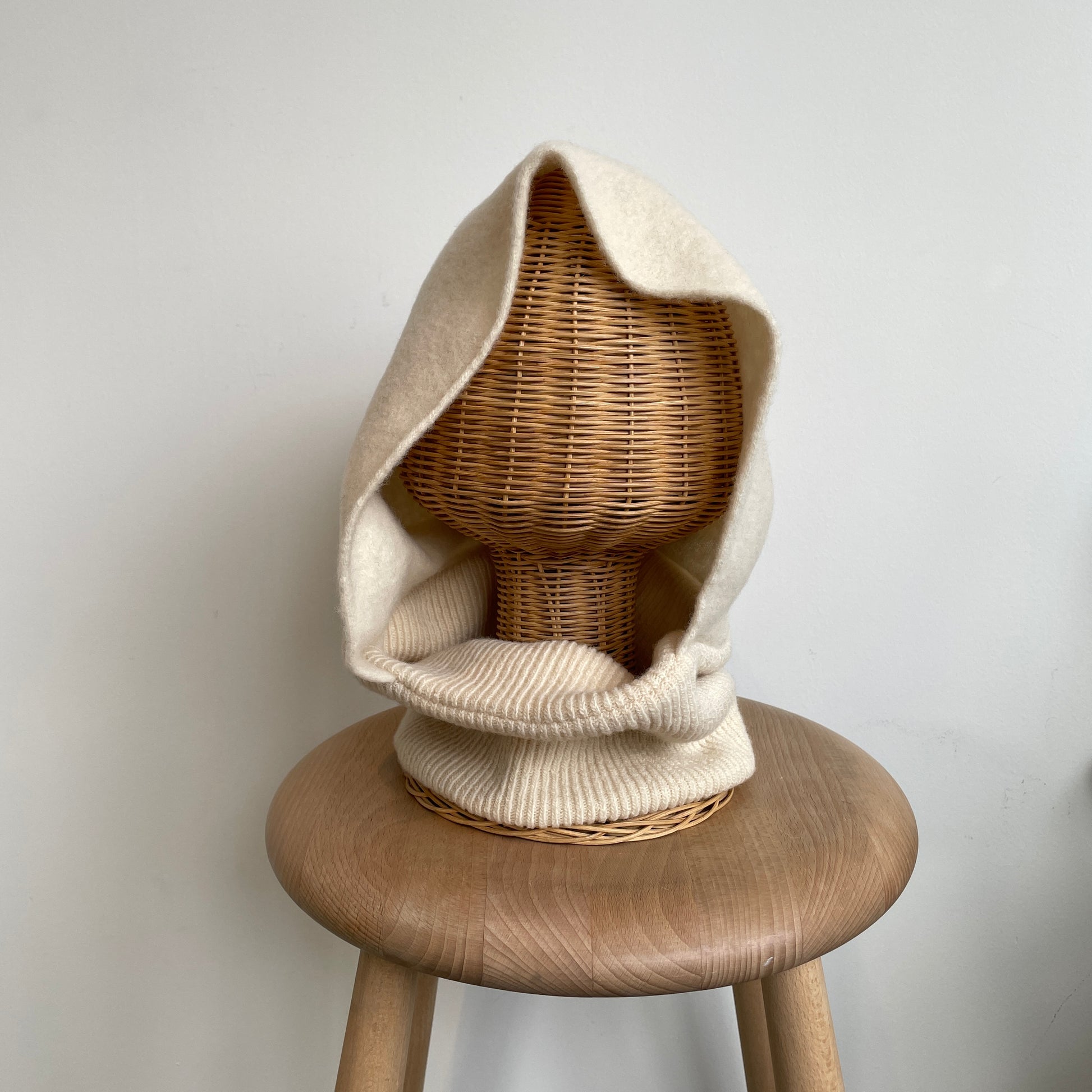 フード部分は軽く縮をかけソフトなフェルト状になっているので薄くても風を