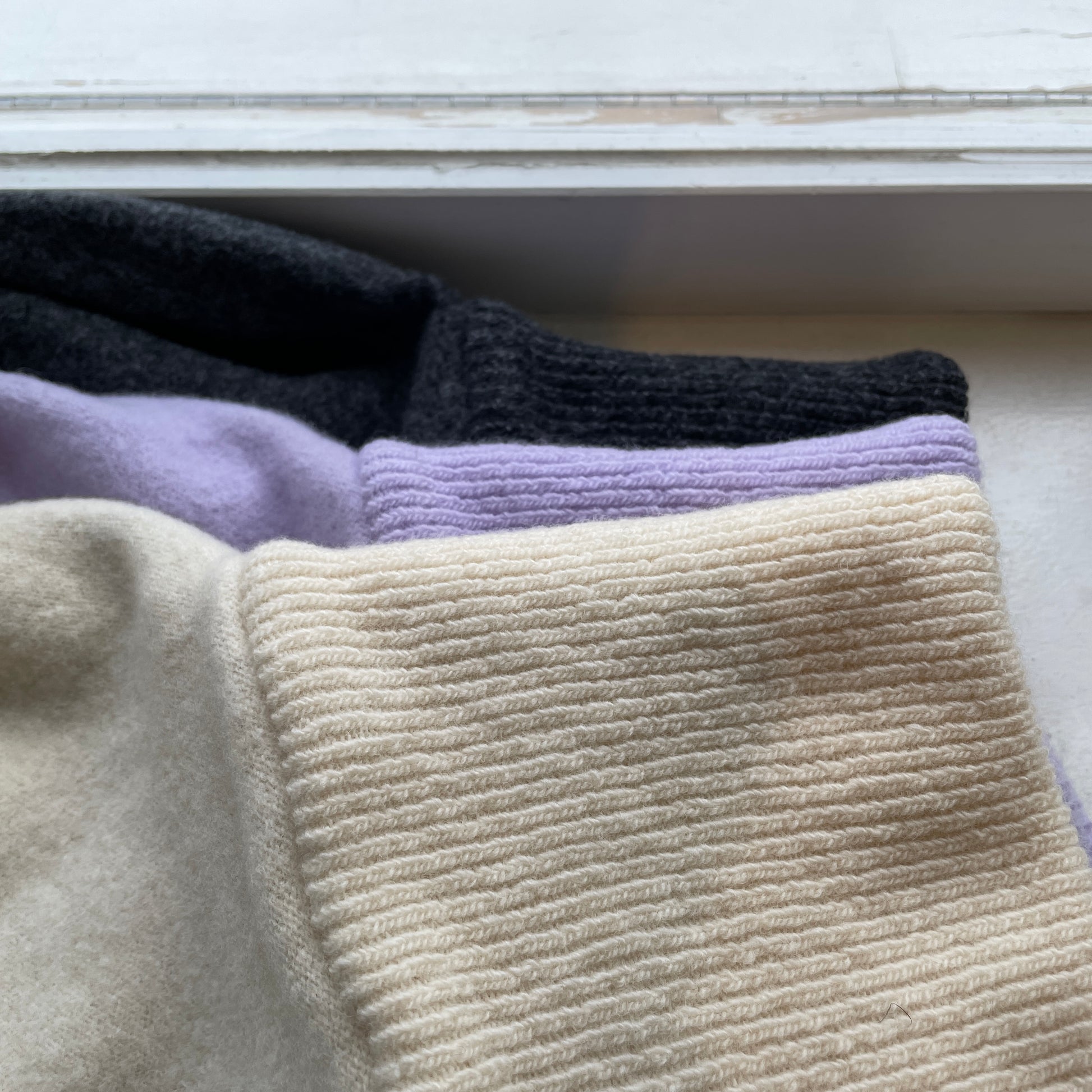 ネック部分はリブ編みの2重仕立てでコンパクトながら首周りもしっかり防寒してくれます。