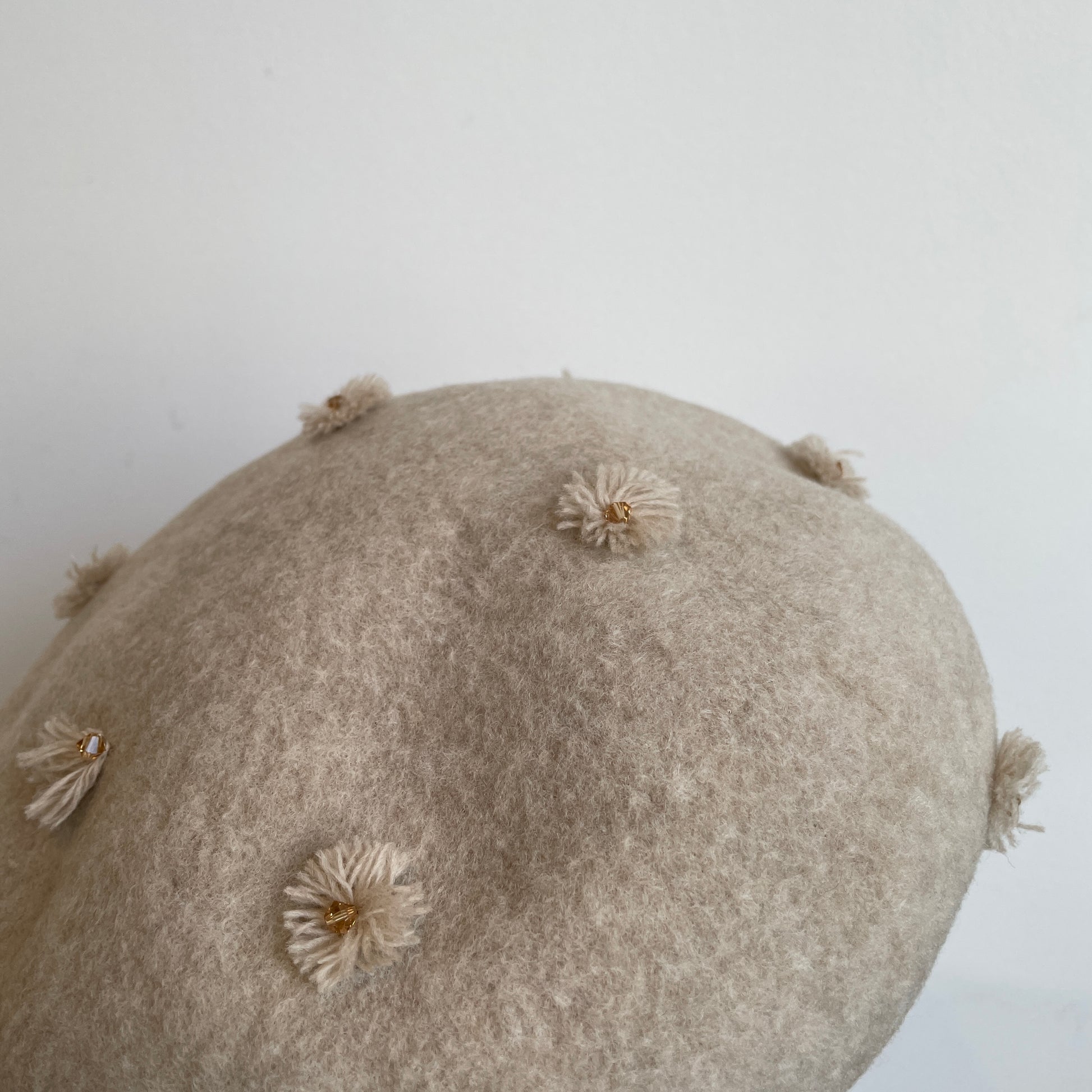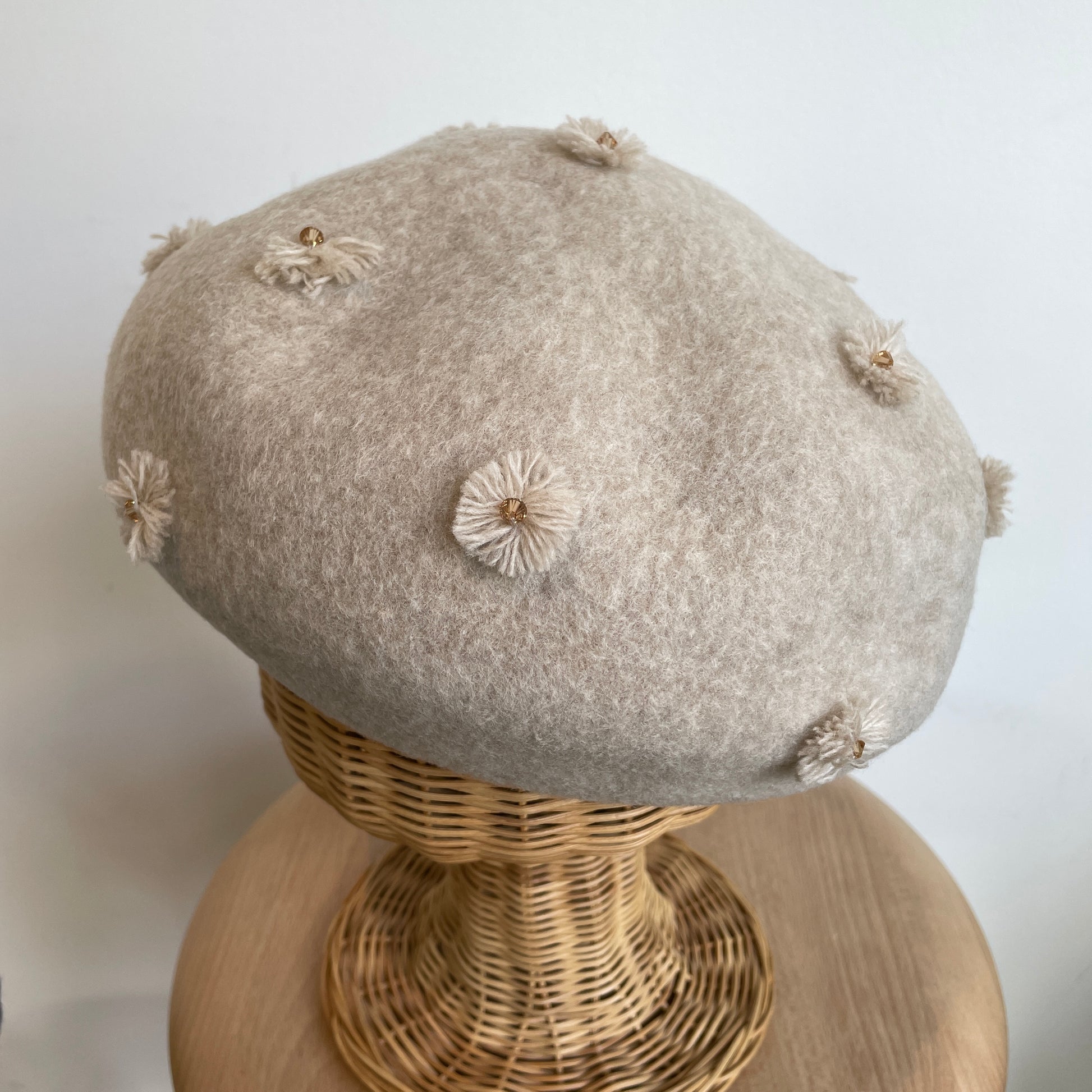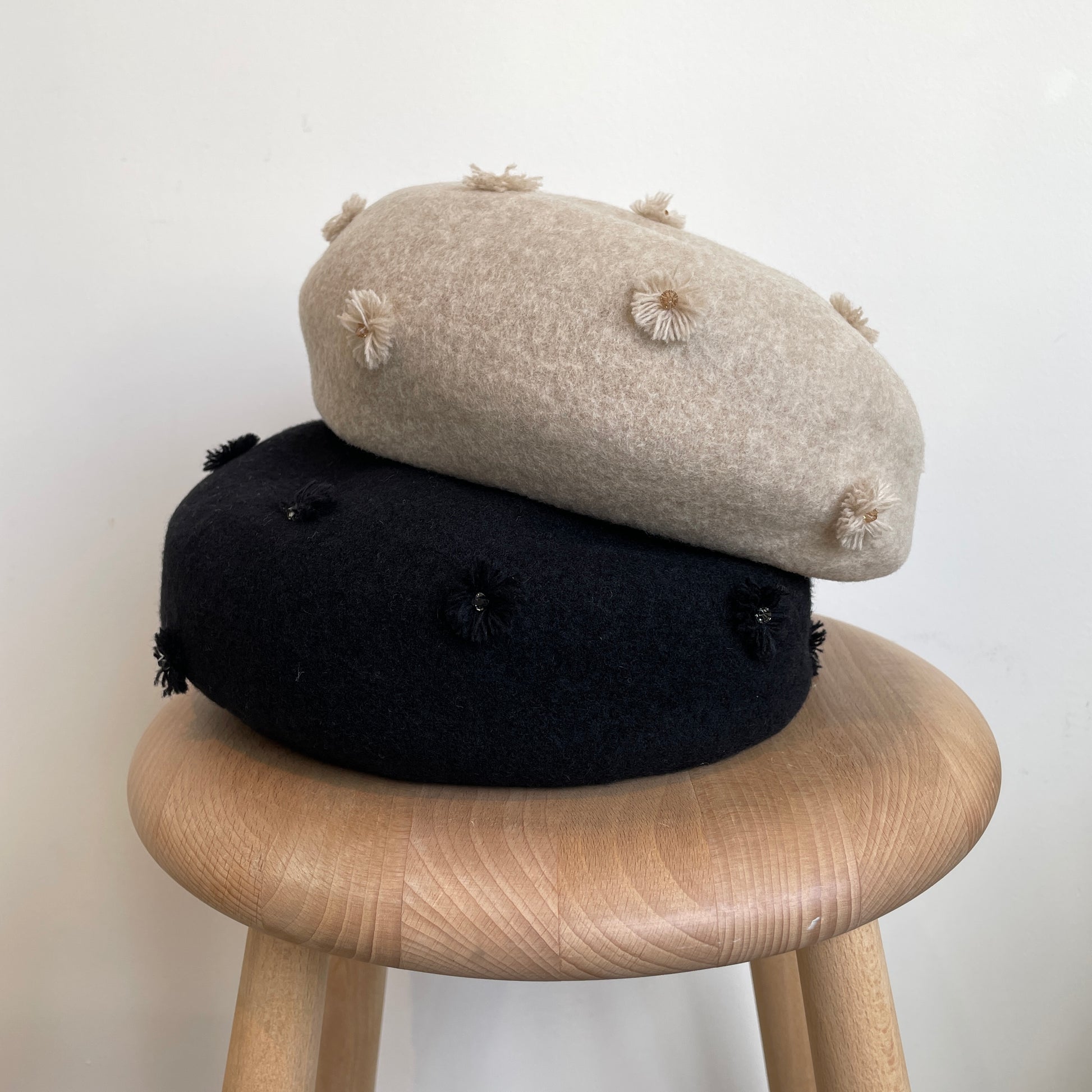 共糸の小さな花モチーフを全体に散らし、花心にはスワロフスキーを使用しており上品に輝きます。