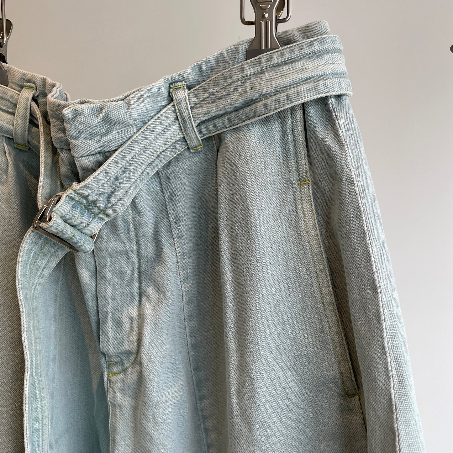 10ozのデニム。日本製のデニムを使用。ブリーチ加工を施し、風合いを感じるライトな色合いに仕上げました。