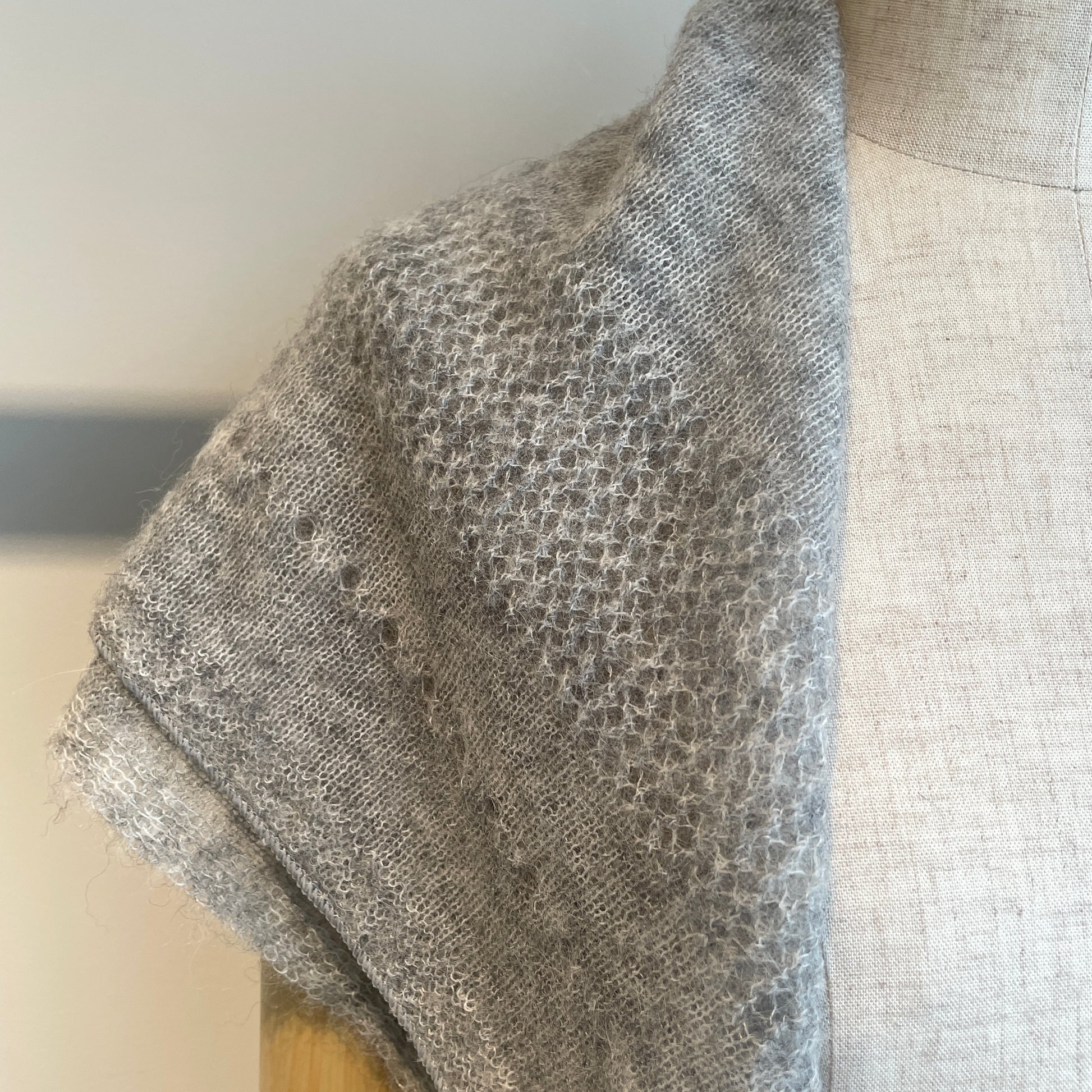 メッシュ状の透かし編みが軽やかな印象