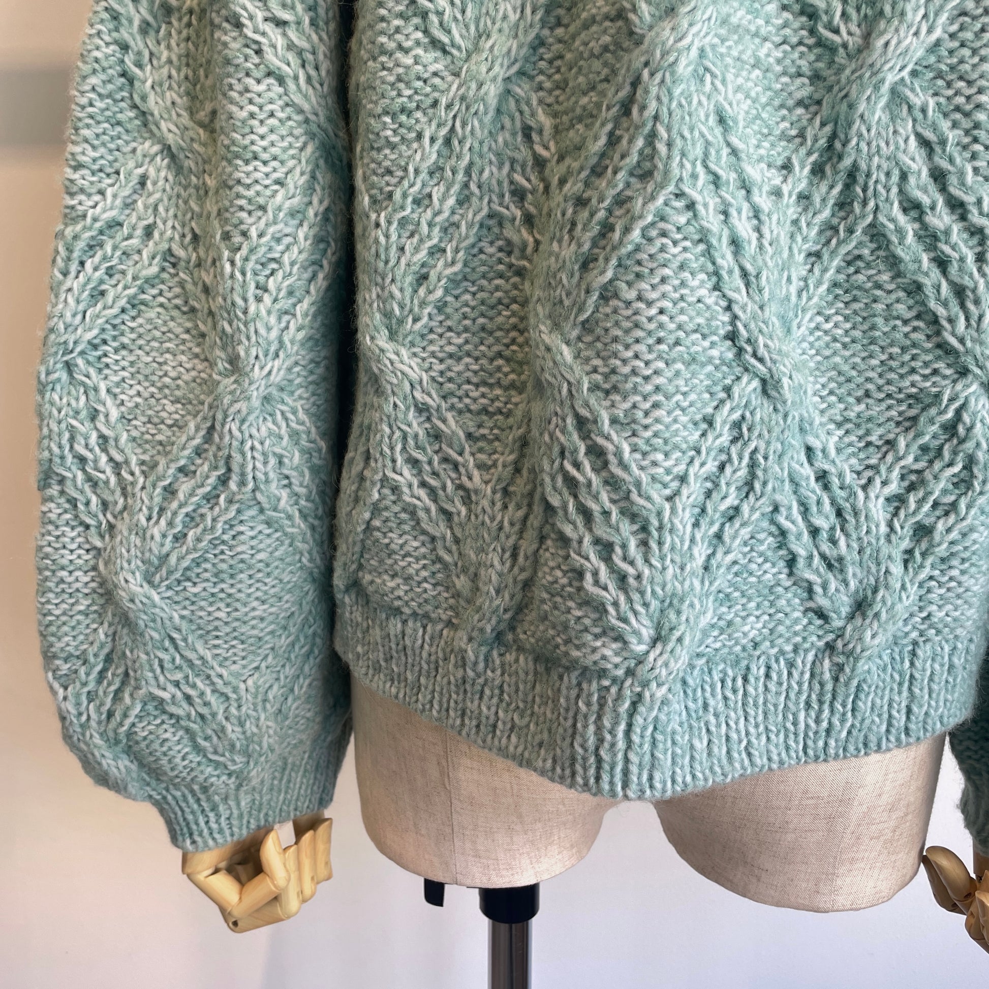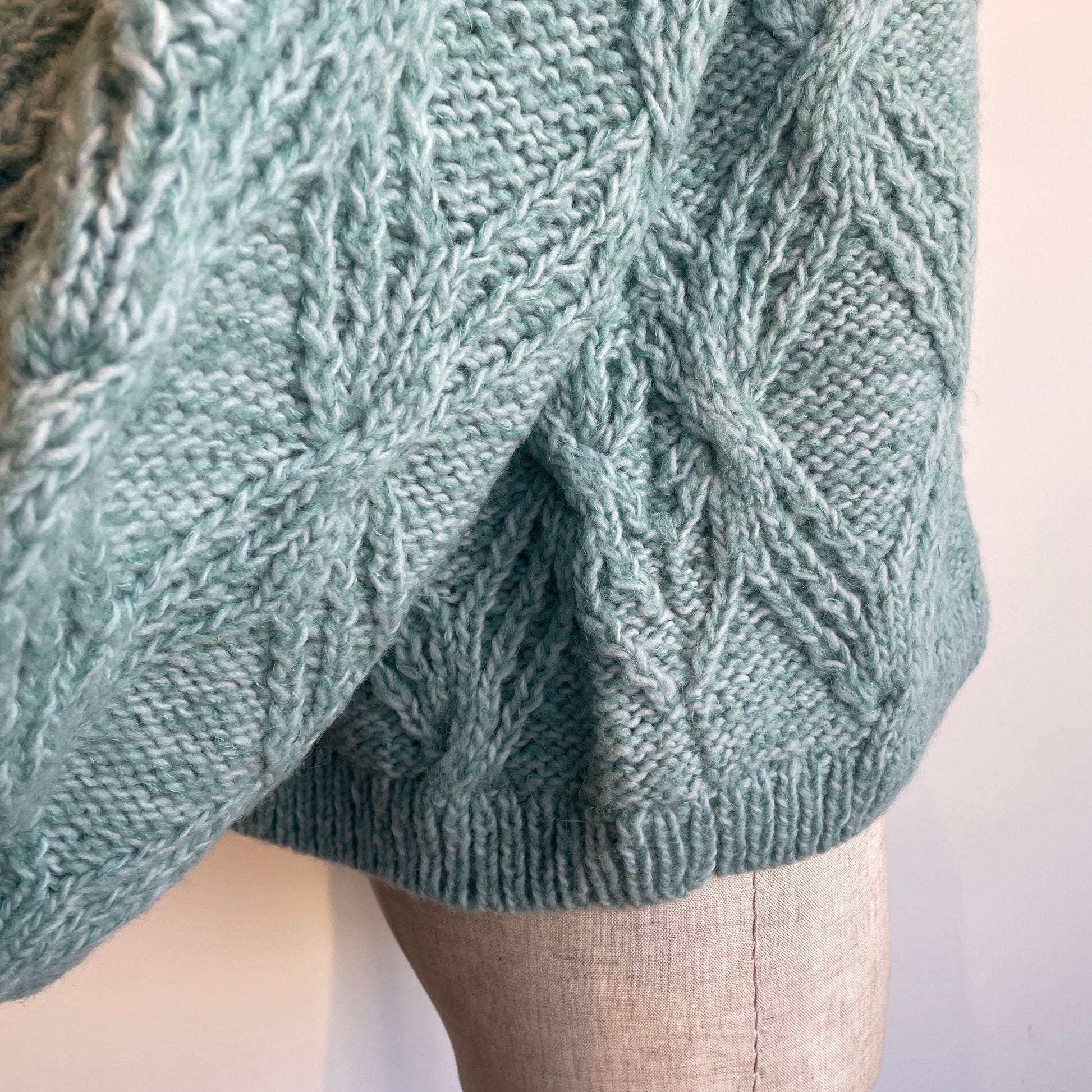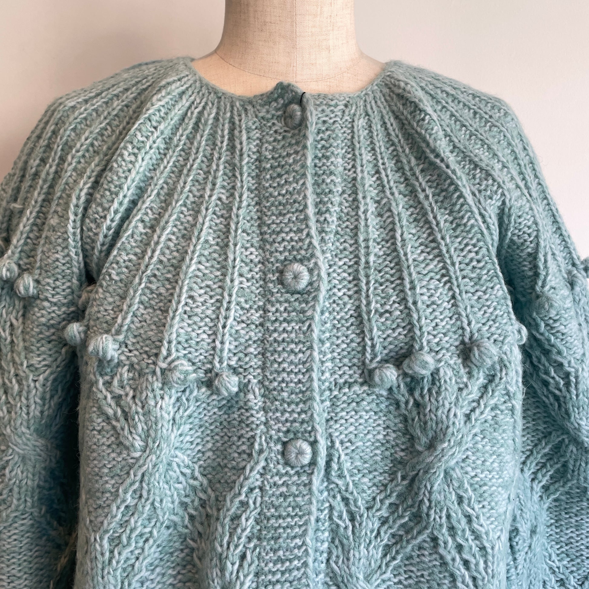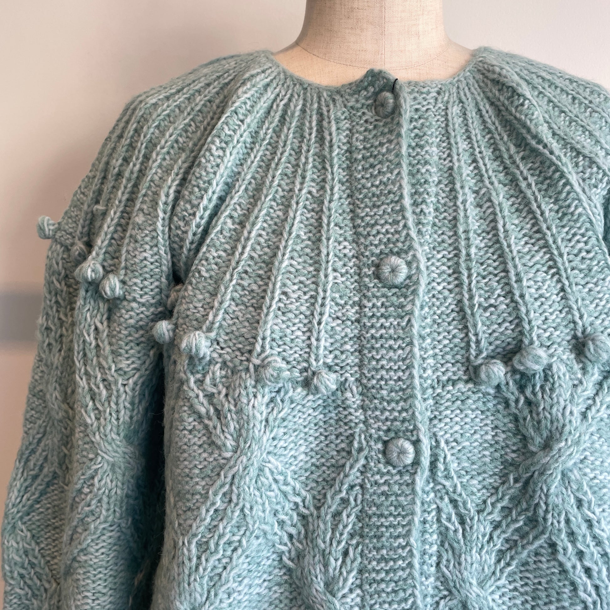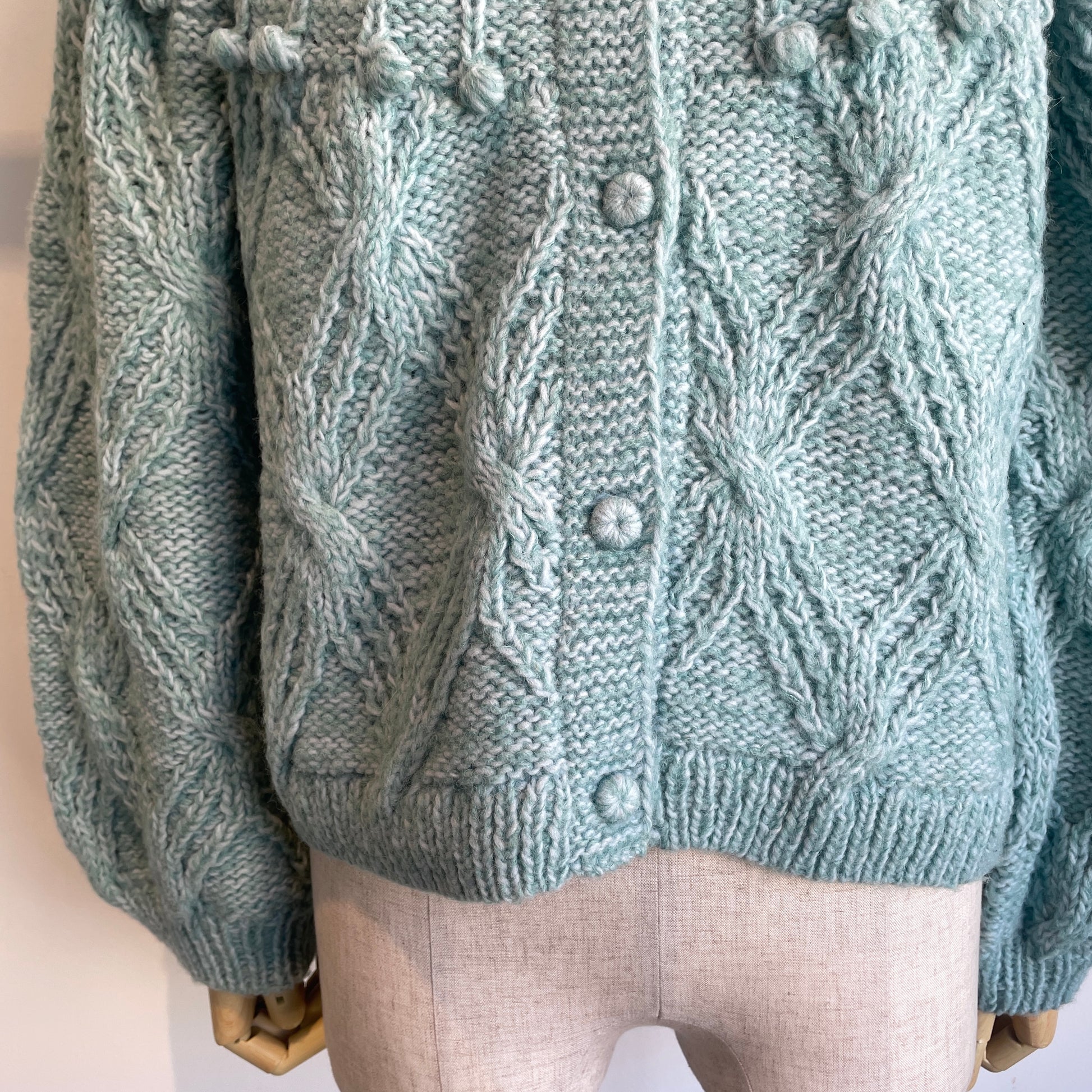 手編みならではのぬくもりと、毛糸の太さに現れる味わい、そして編み目の表情豊かな温かみが魅力です。