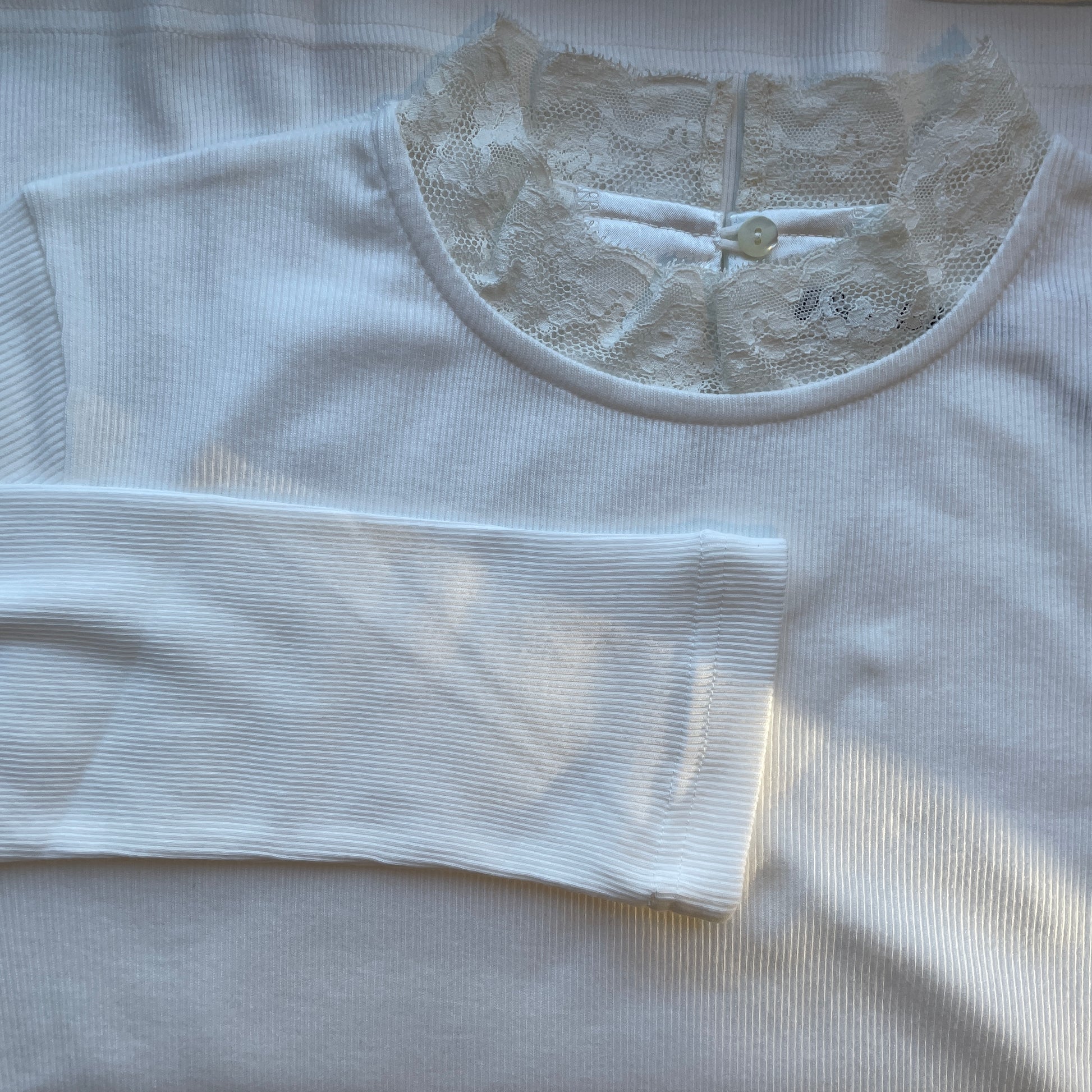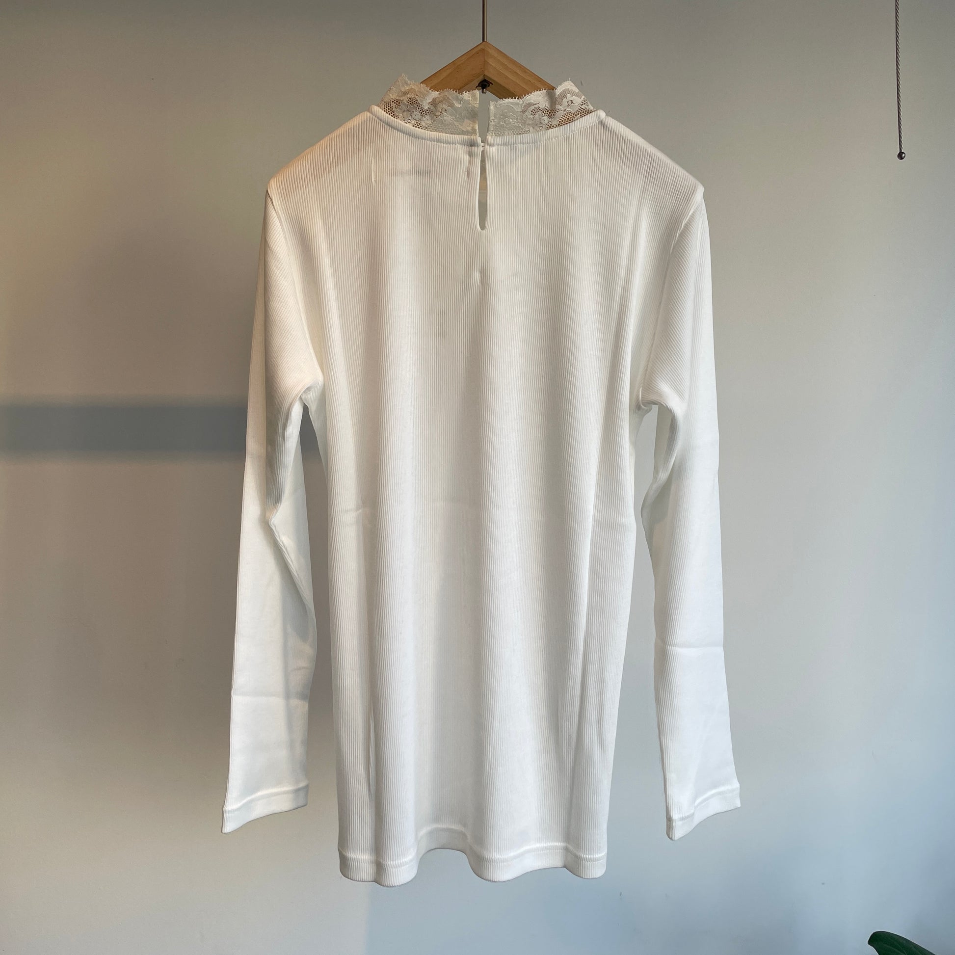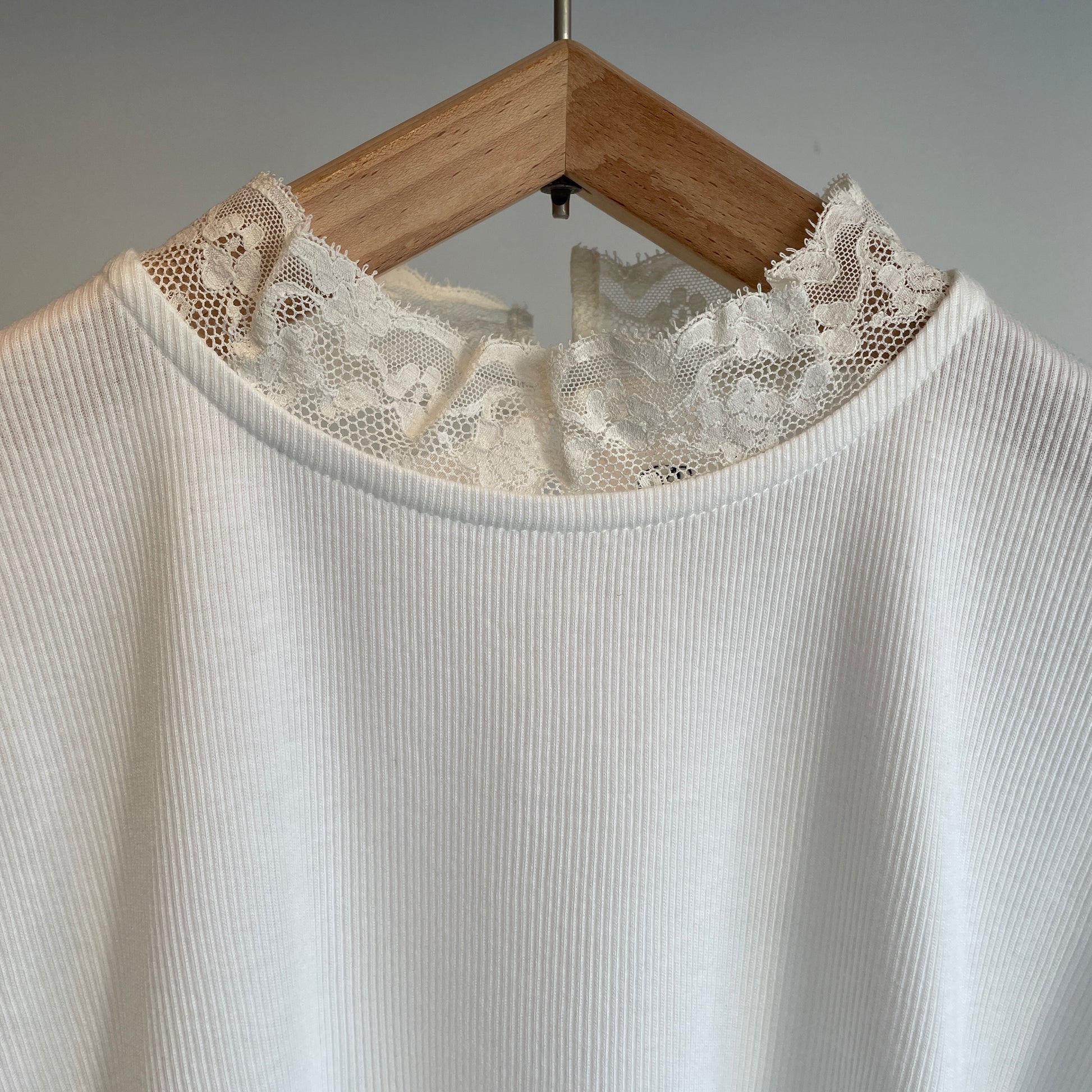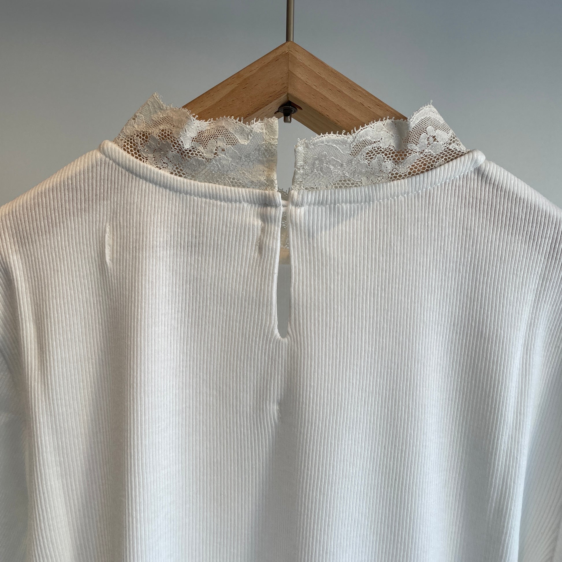 首元にはハイネック風に繊細なレースをあしらいました