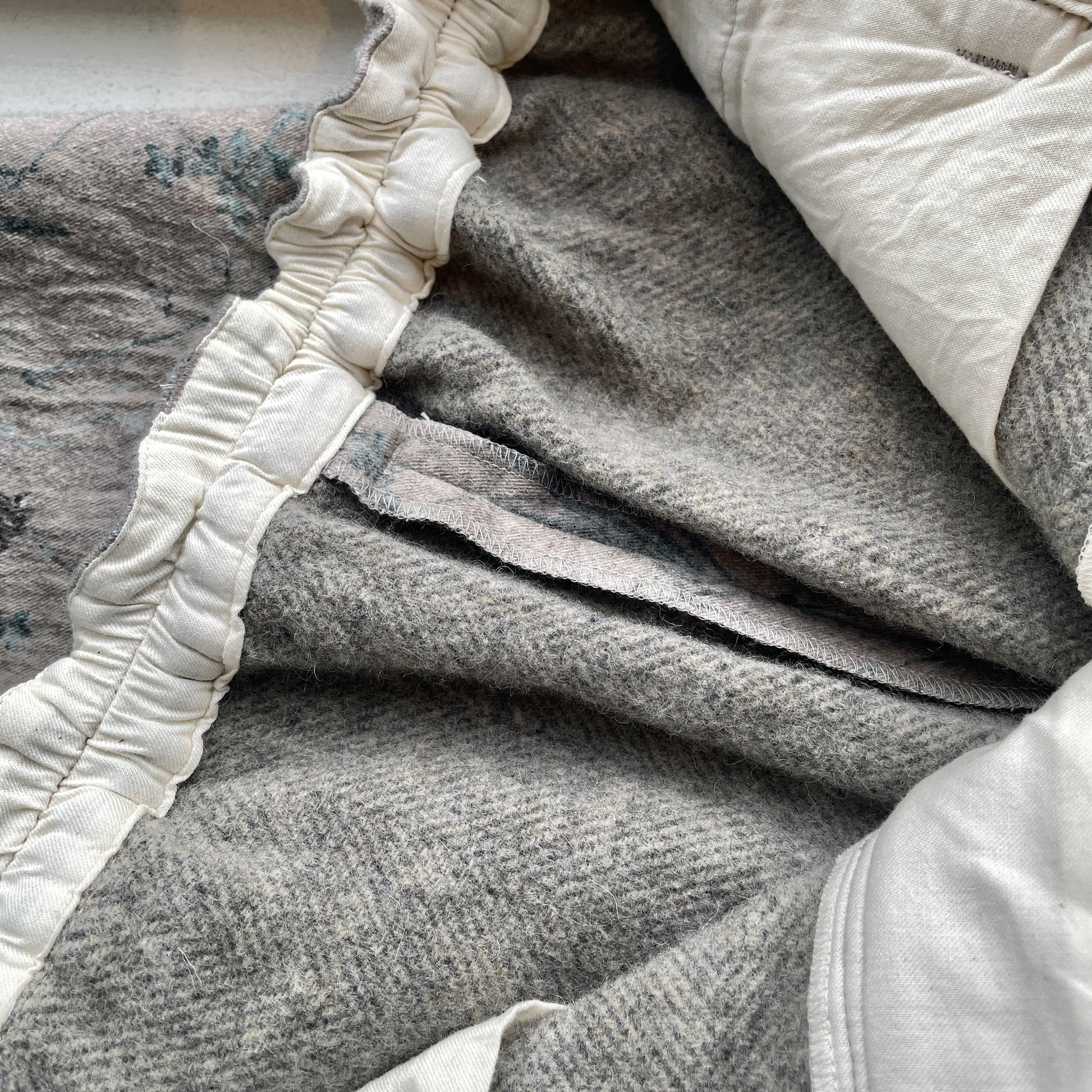・この素材はウールと綿の素材を使っているため、水洗いすると縮みによる型くずれやシワが起きてしまう可能性があります。お洗濯は専門店でお願い致します。