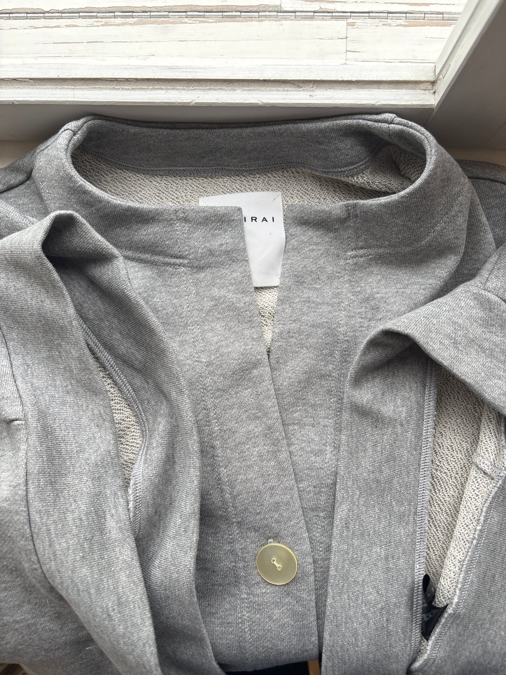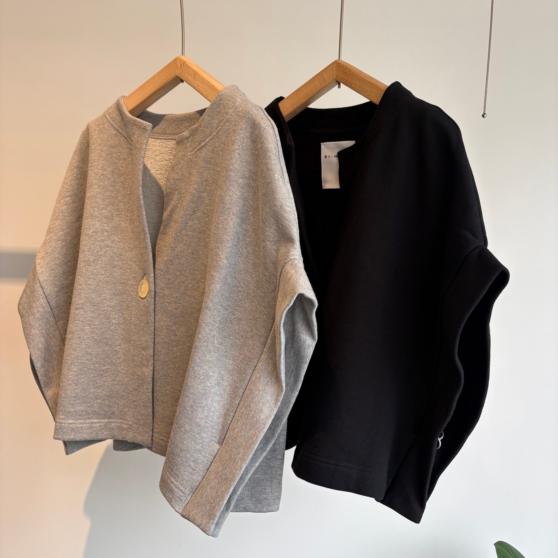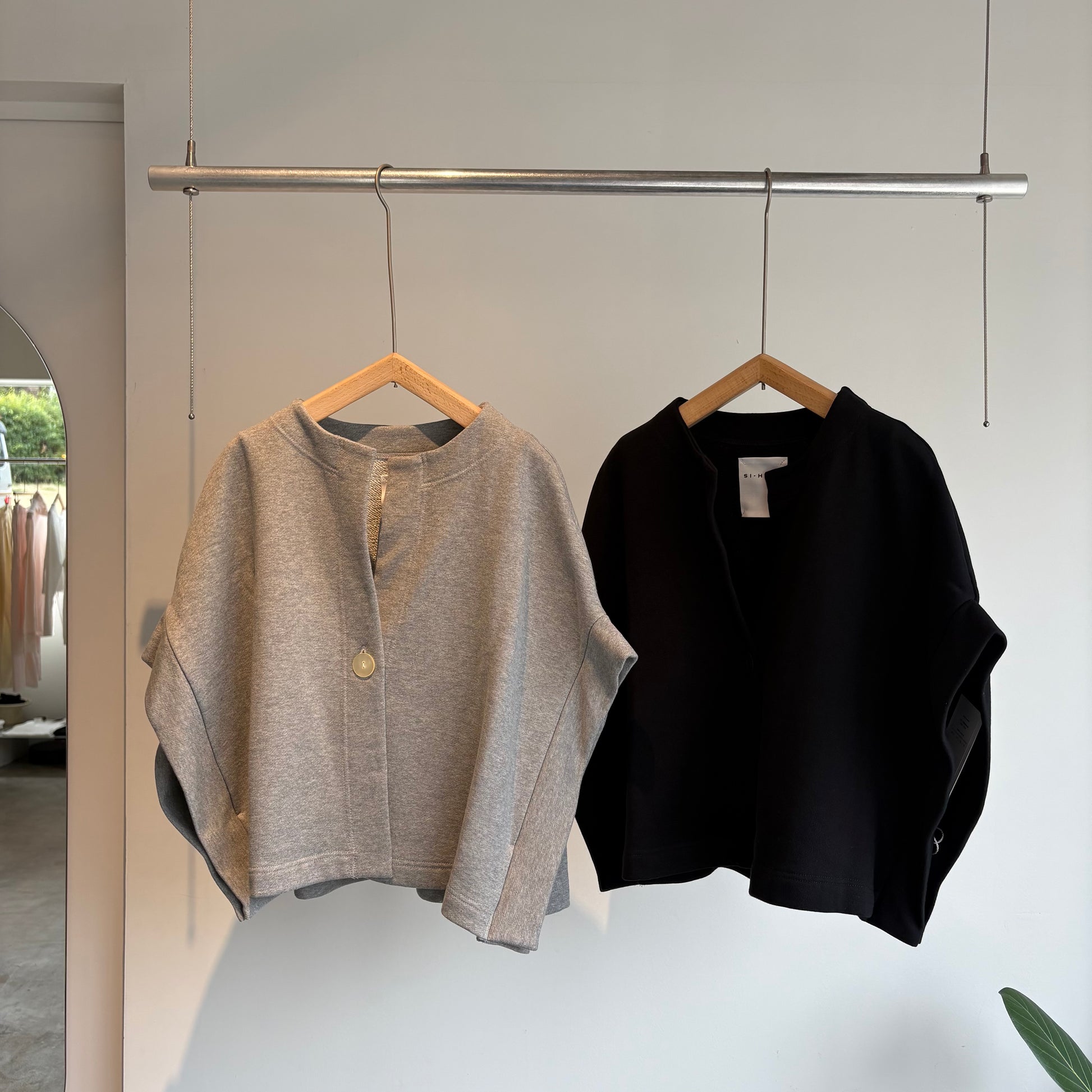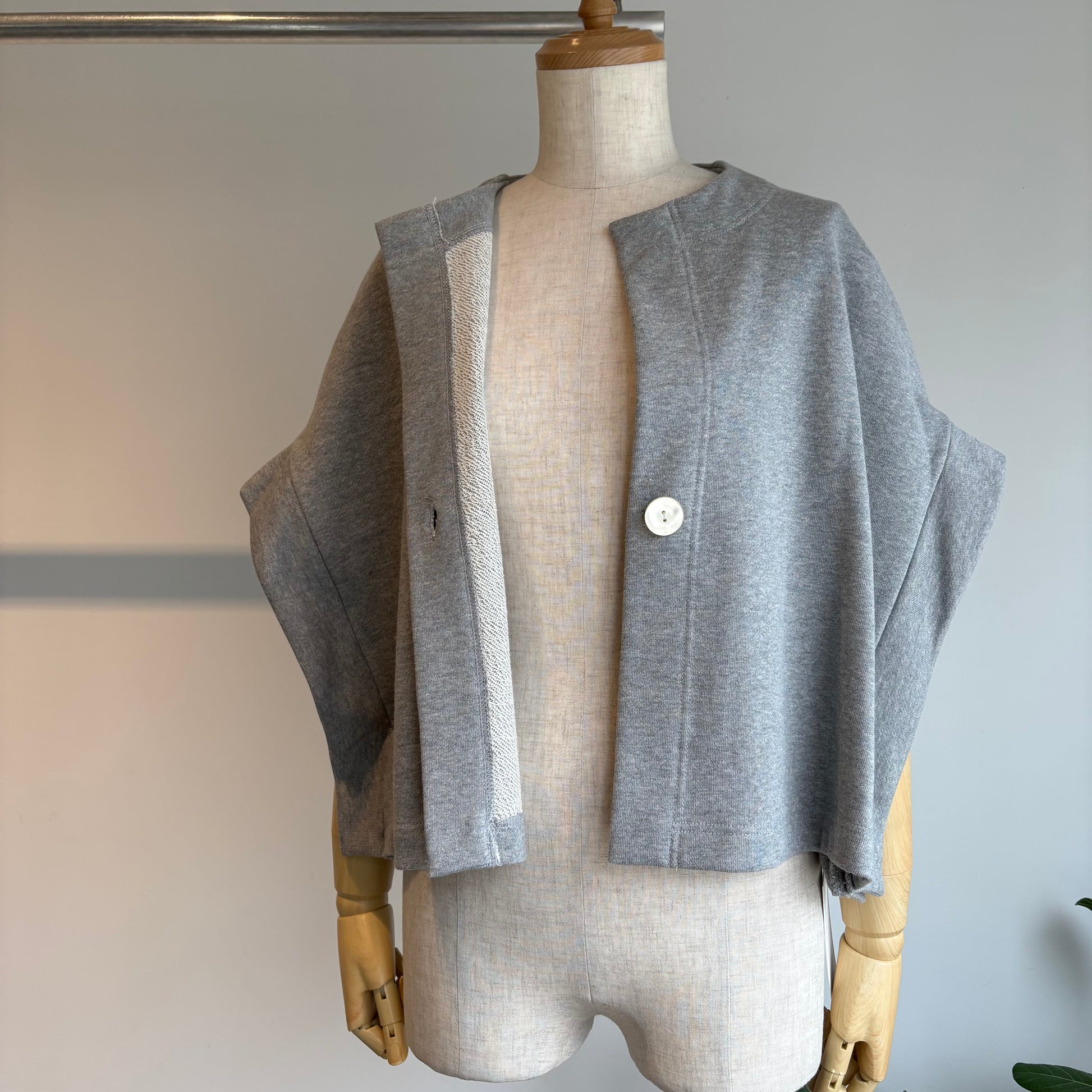 造形的でモダンなデザインのローブカーディガン。