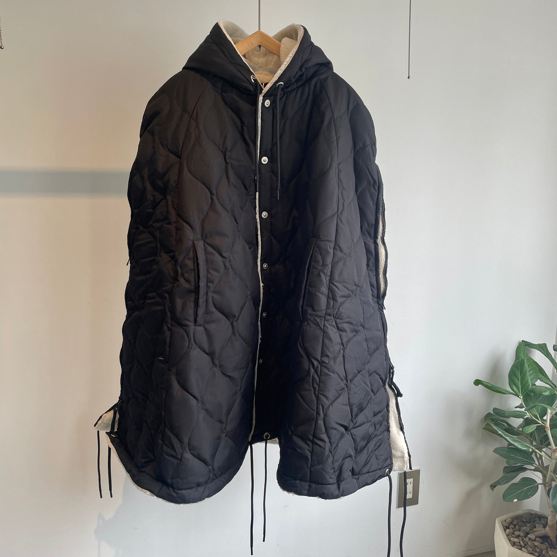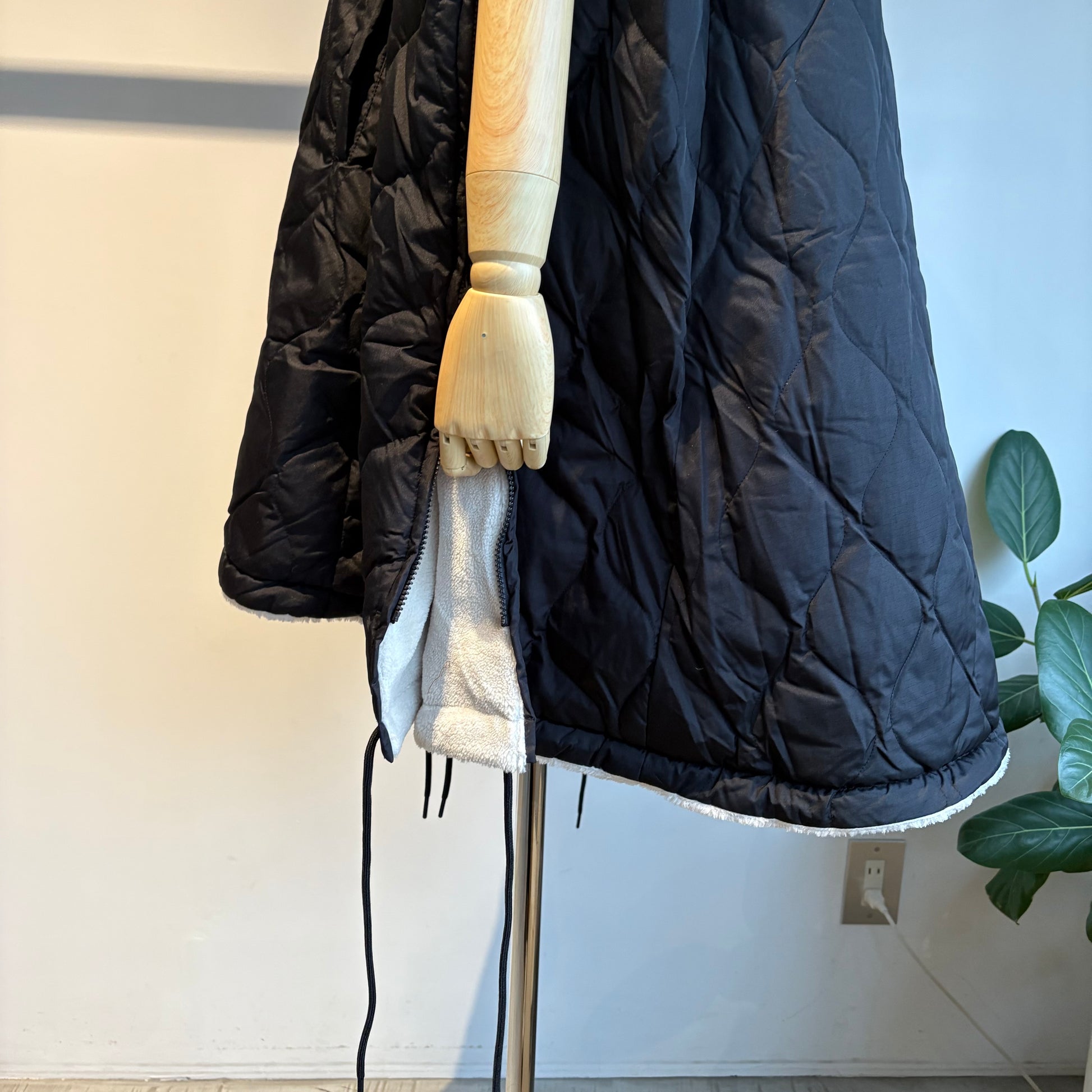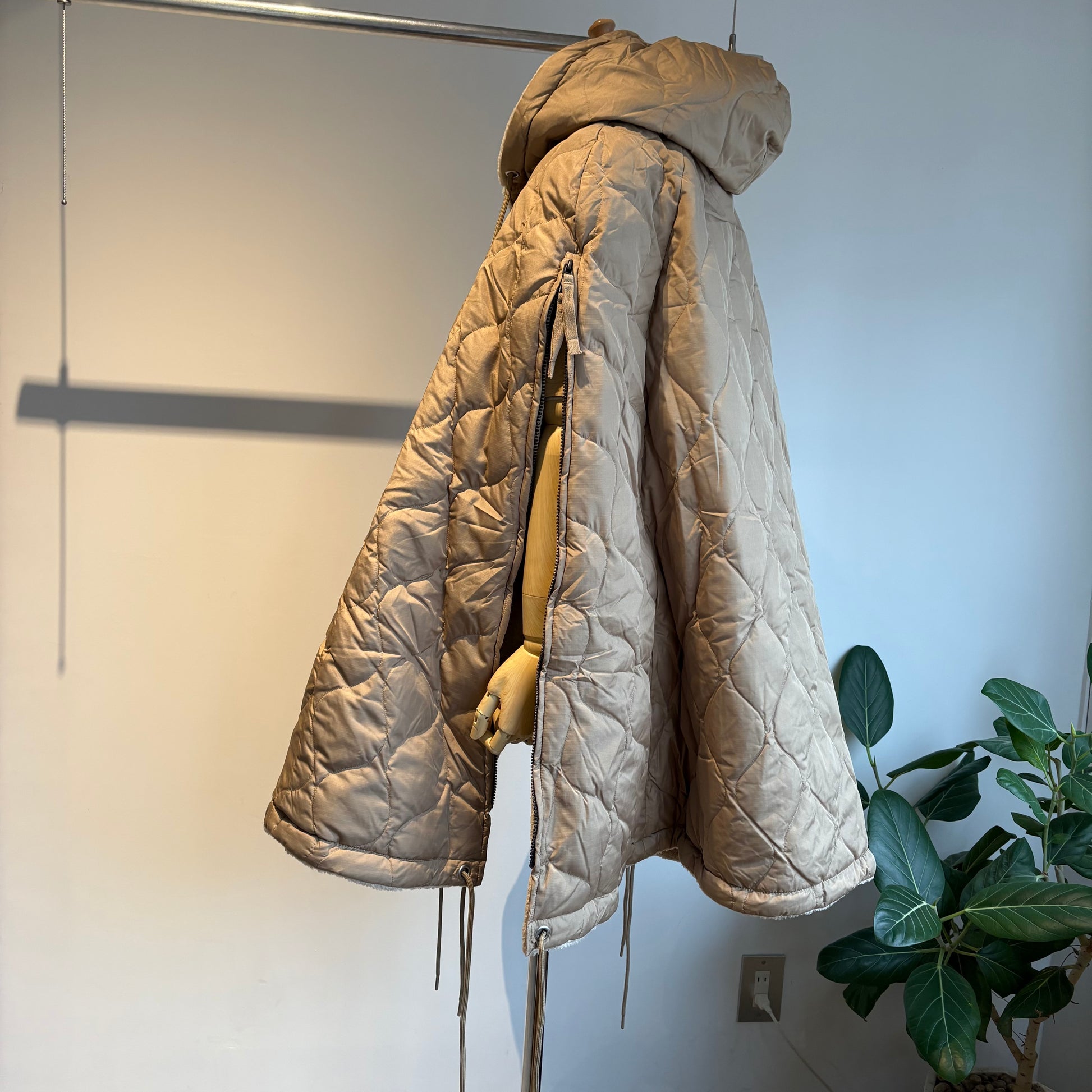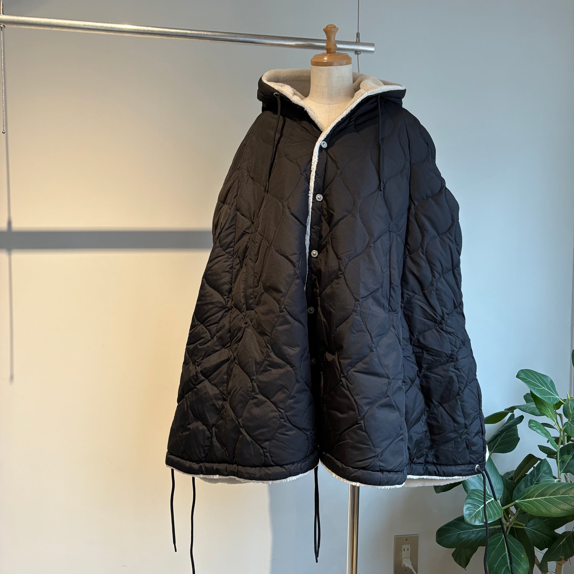 ダウン×ボアの2重構造、ボリューム感が魅力的なミリタリーダウンポンチョです。