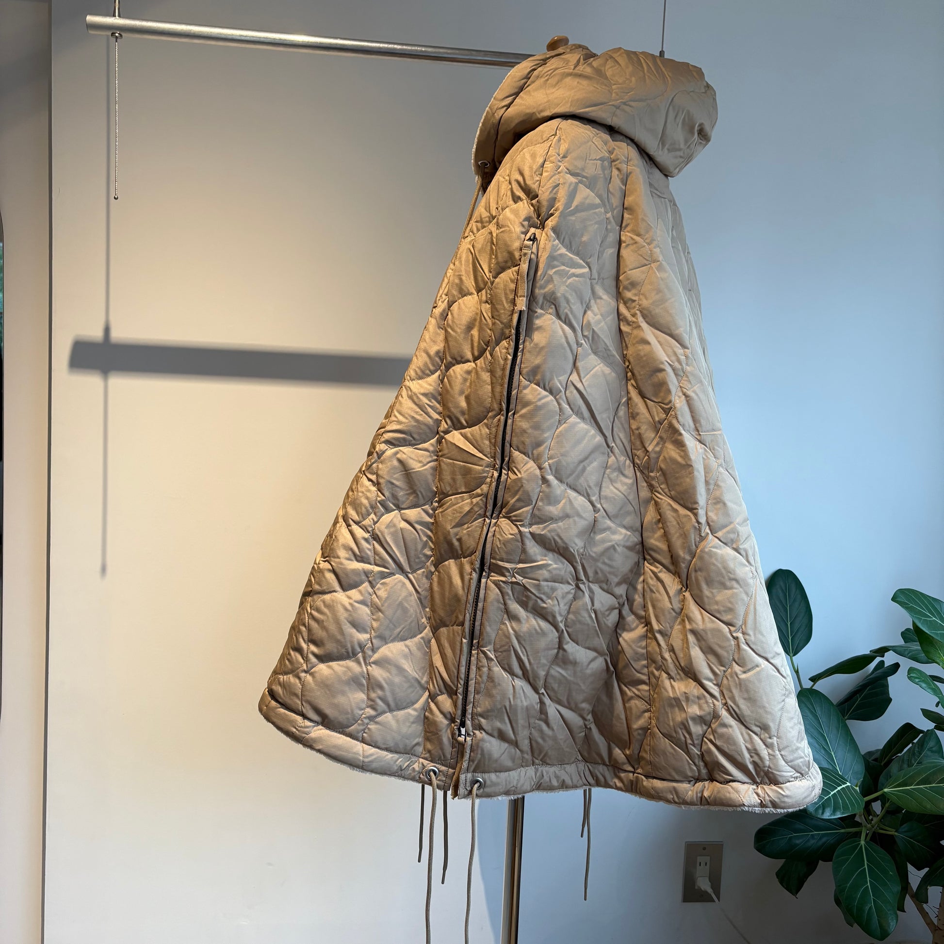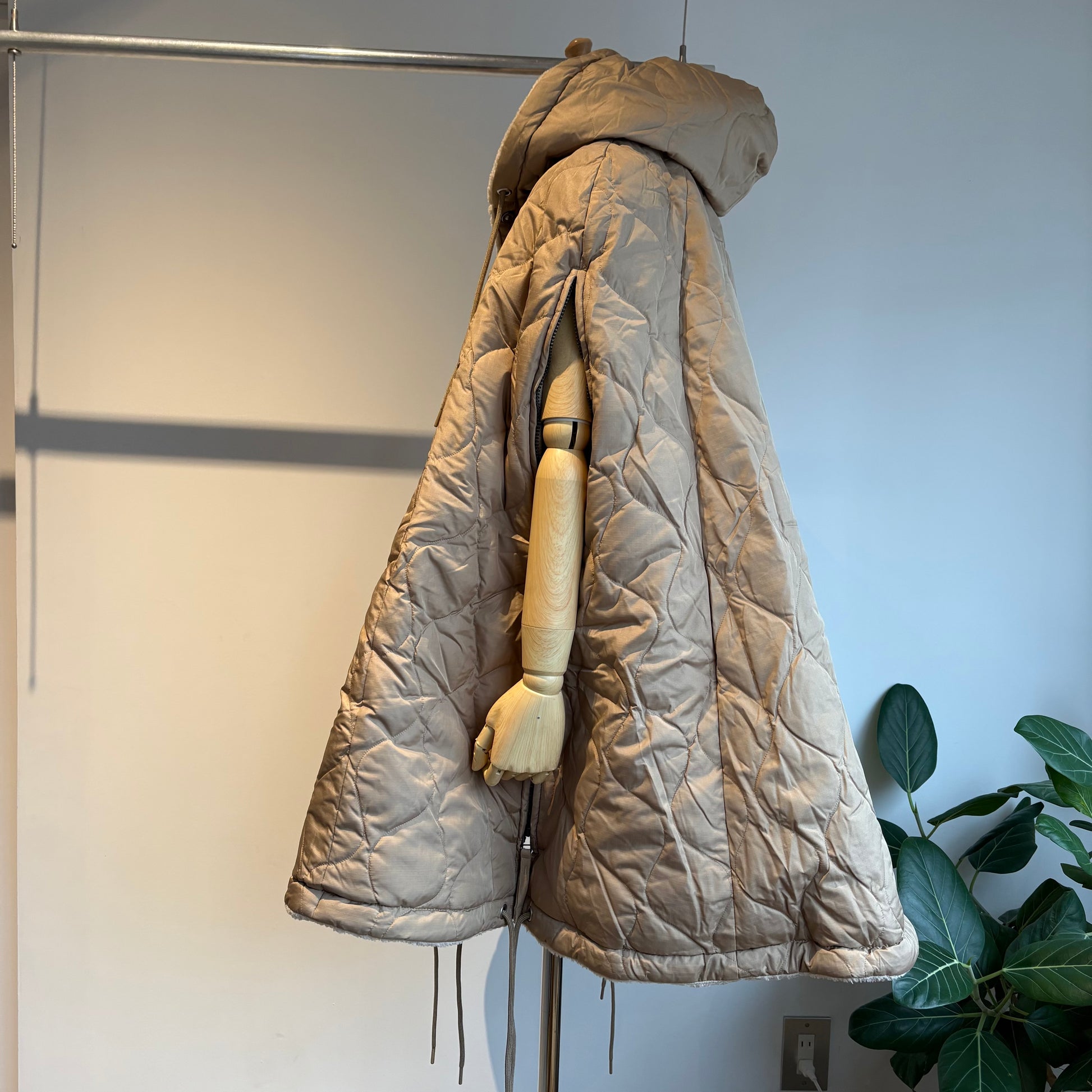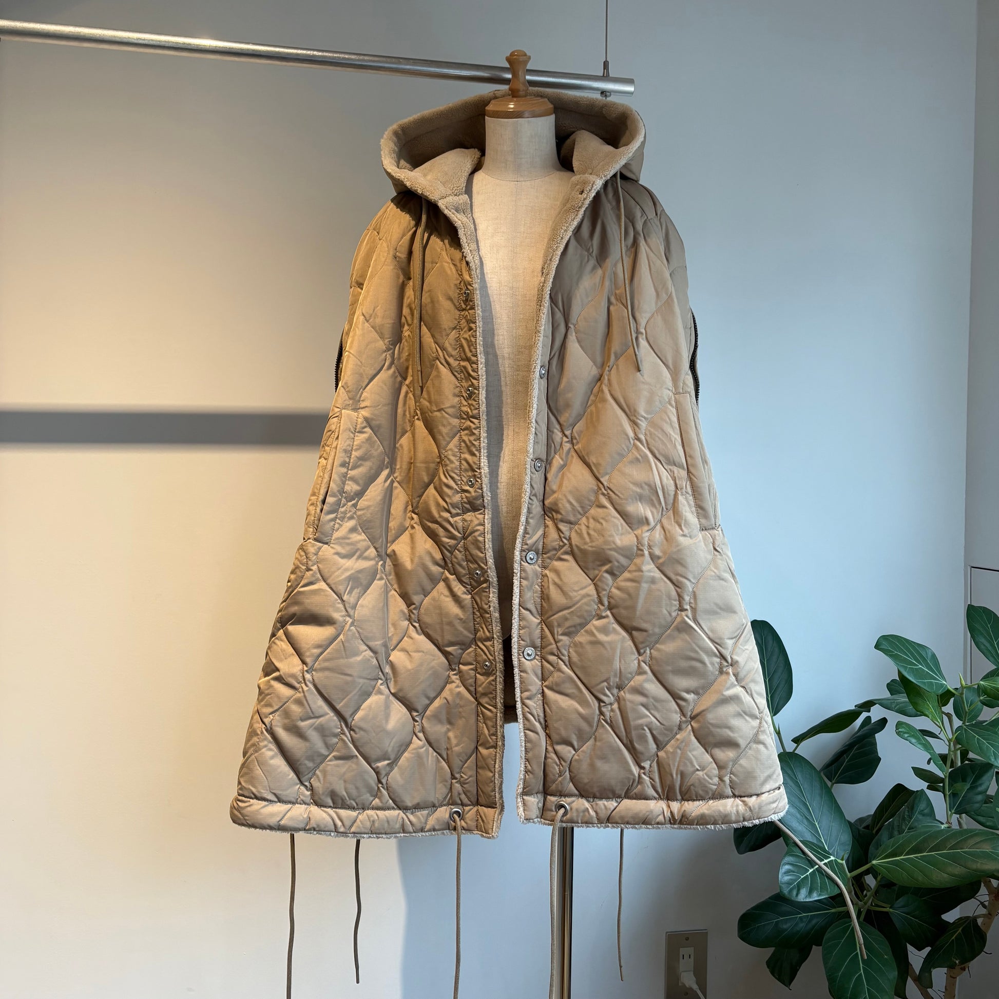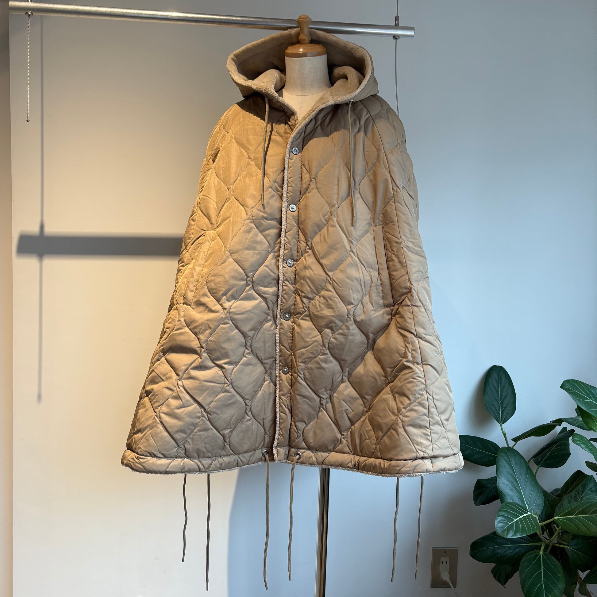 ダウン×ボアの2重構造、ボリューム感が魅力的なミリタリーダウンポンチョです。