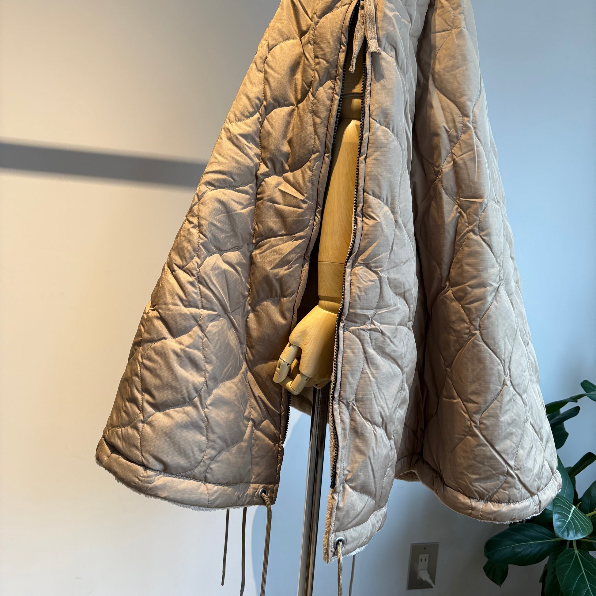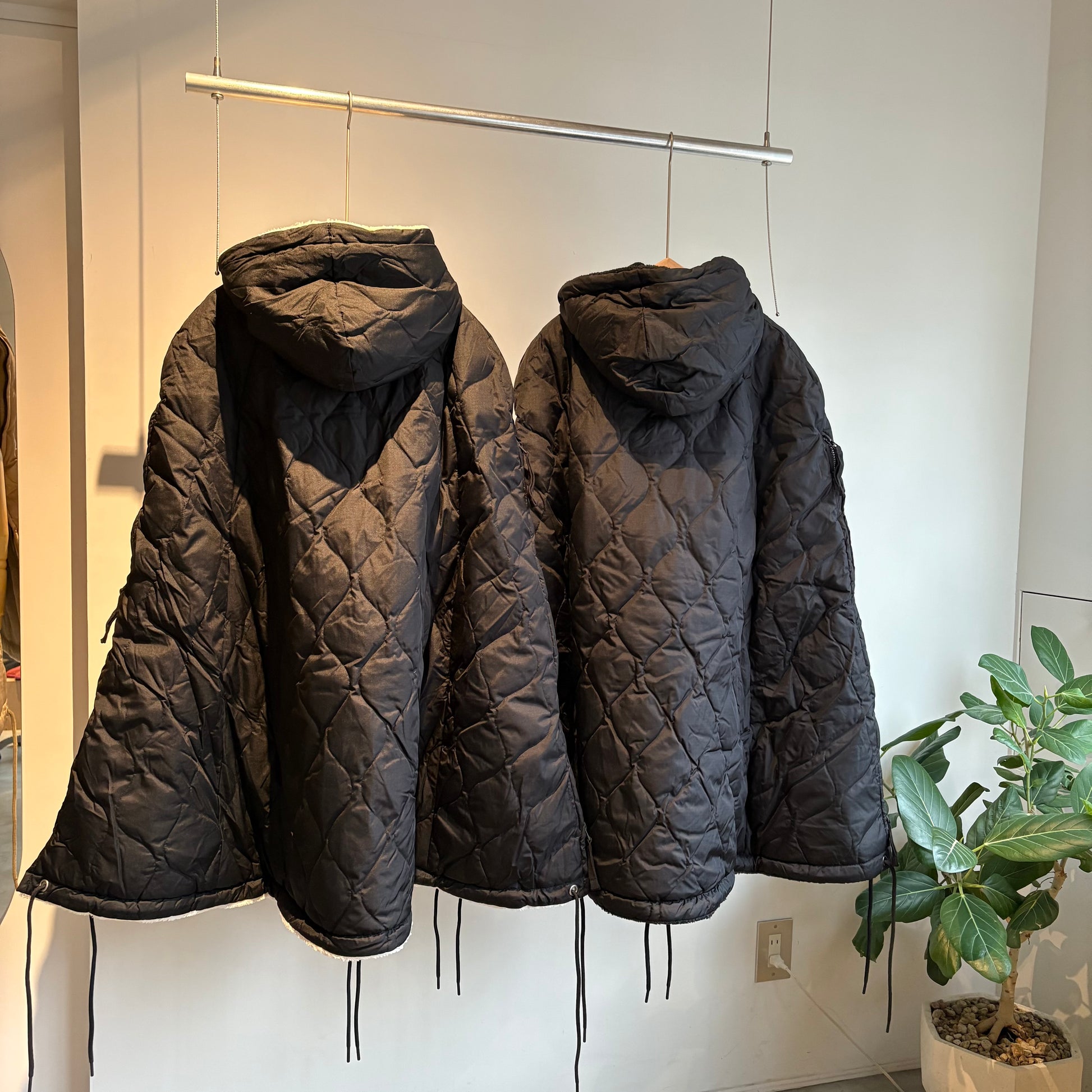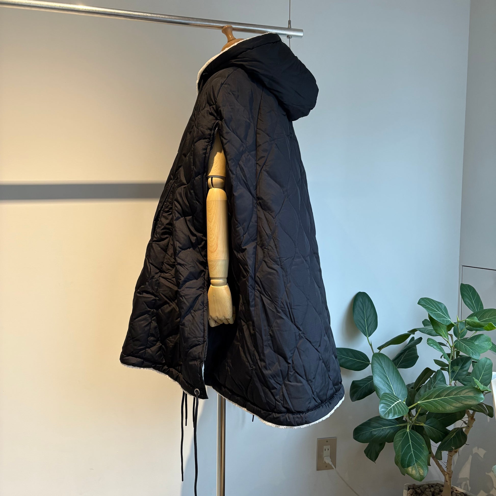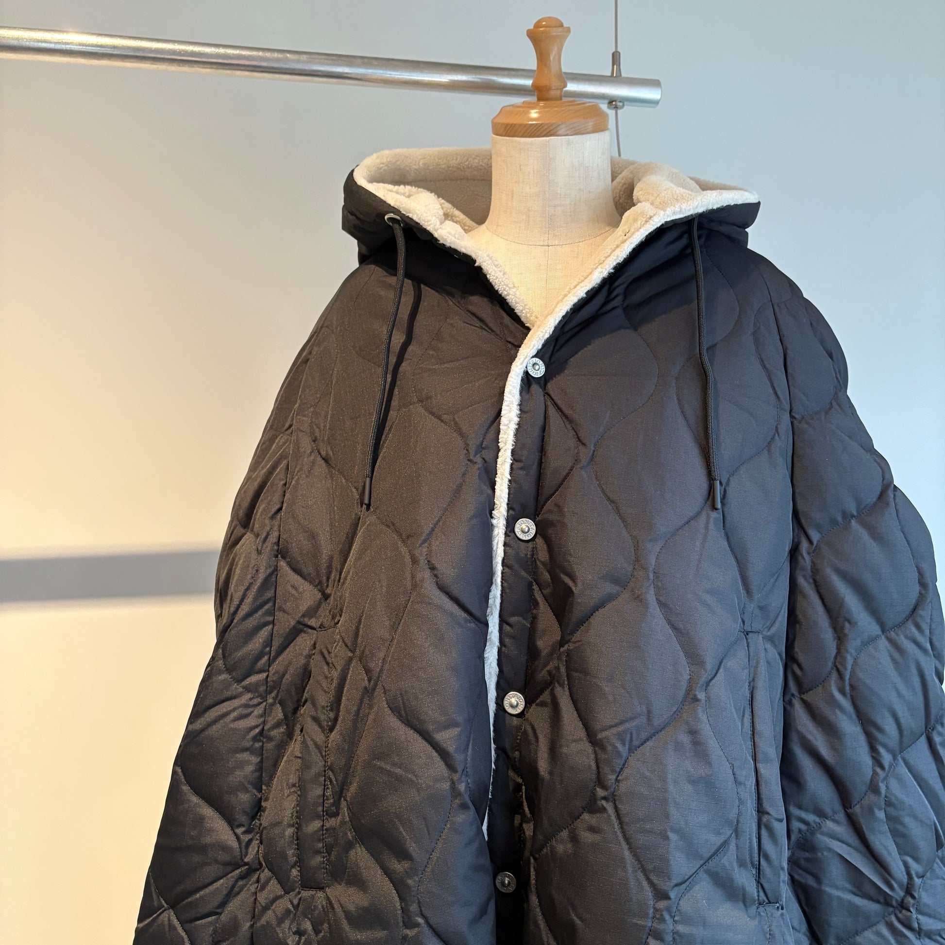 ダウン×ボアの2重構造、ボリューム感が魅力的なミリタリーダウンポンチョです。